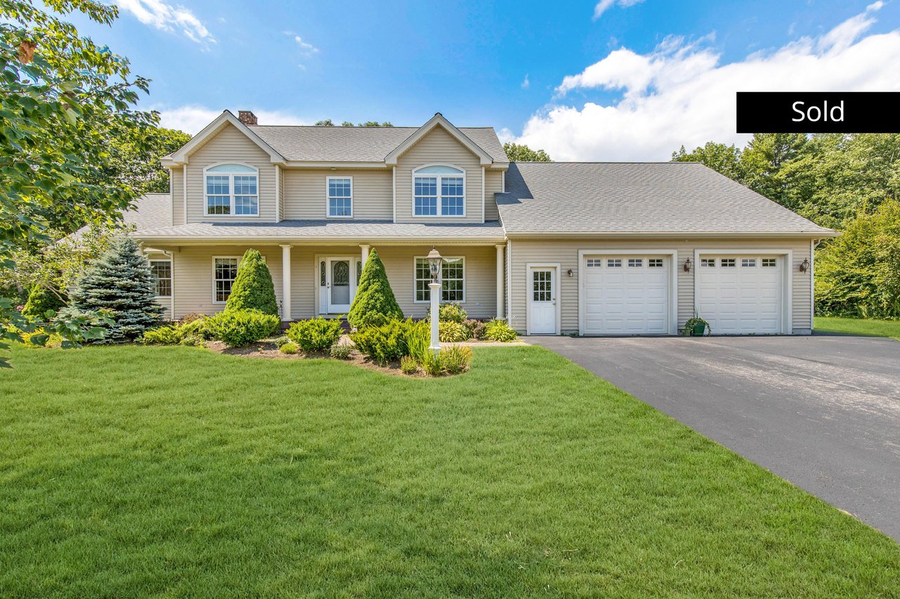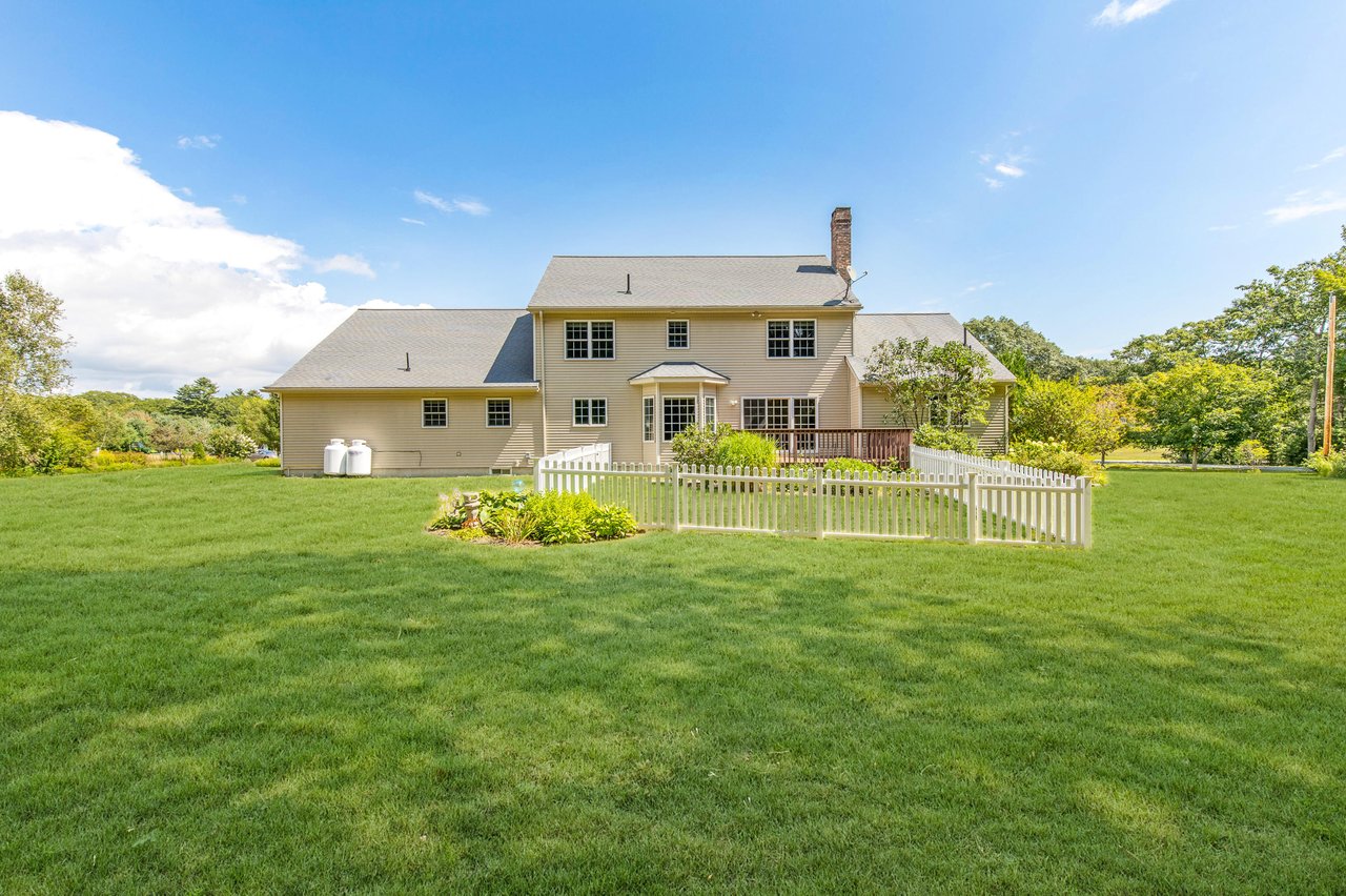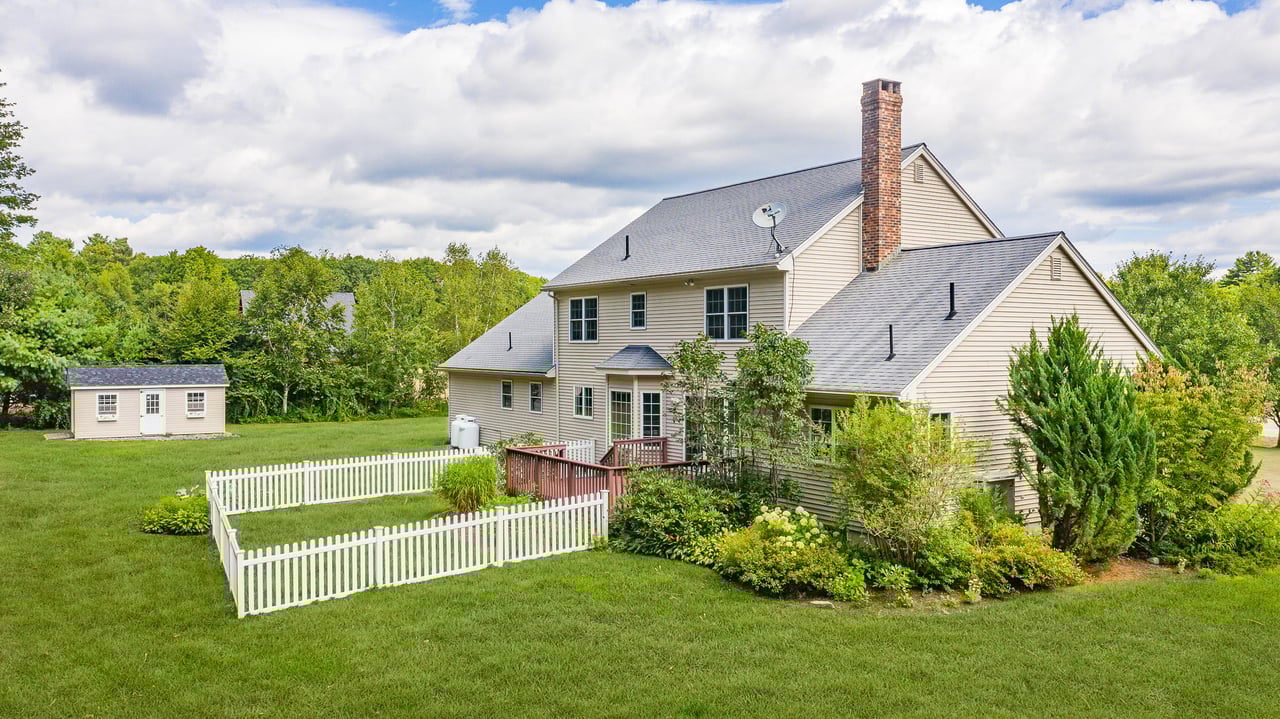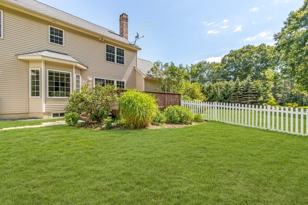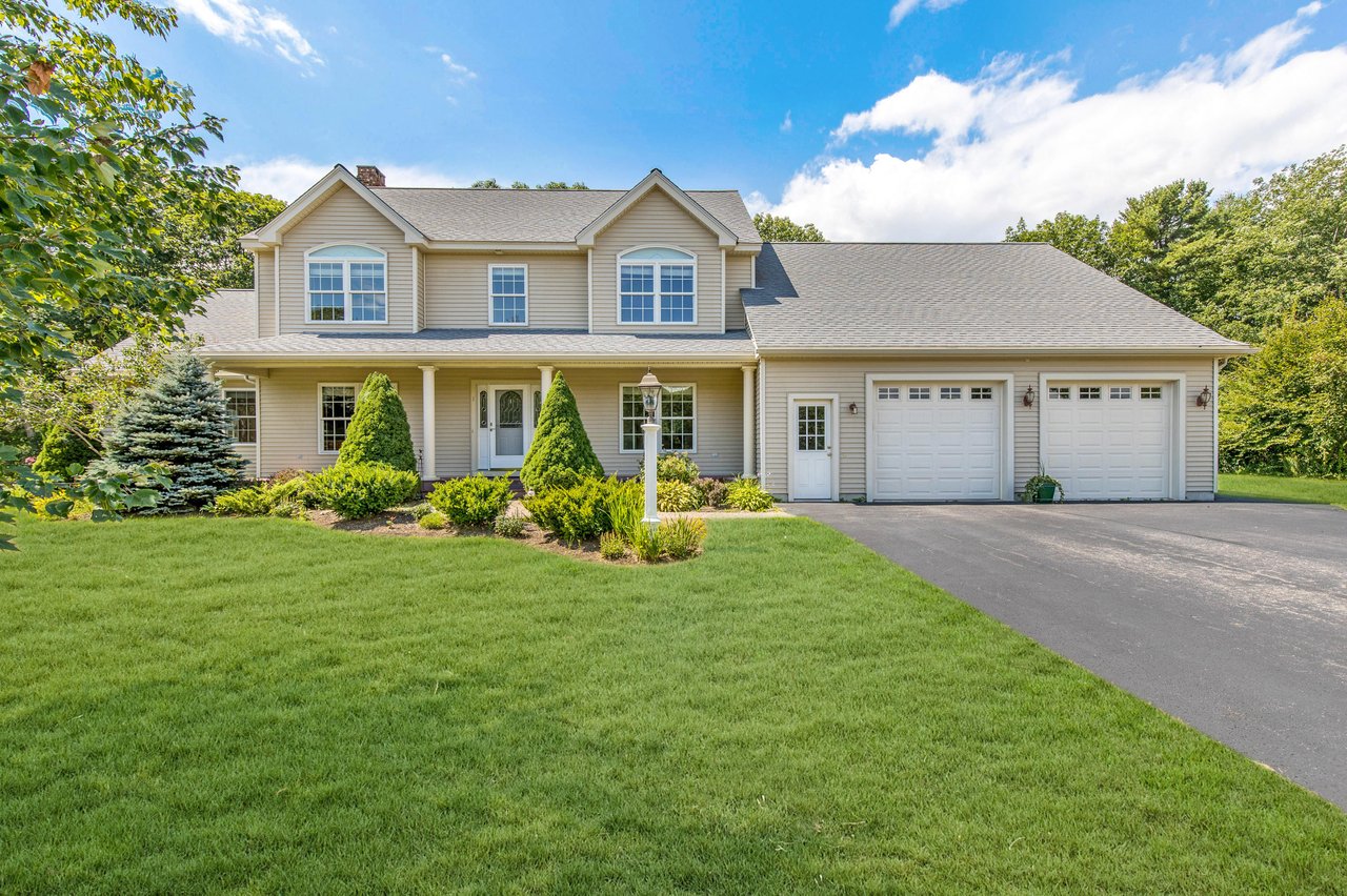 Move right in! This spacious 5 bedroom, 4.5 bath home featuring two primary ensuites, a work-from-home office with built-ins, finished basement, heat pumps, oversized garage with storage above and top of the line air exchange system are but a few of the highlights of this welcoming and immaculate Colonial. The kitchen, with maple cabinets, quartz counters and a center island, opens to a dining area and family room with wood burning fireplace w/ gas insert and sliders to a private back deck. A formal dining room could also be used as living room. Just beyond is a first level primary ensuite with whirlpool tub, separate shower, double vanity, and walk-in closet. Upstairs is a second primary ensuite with massive walk-in closet and 3 additional bedrooms. Situated on a professionally landscaped 1.54 acre lot with matching mini barn, enjoy the ease of living close to Wharton's Point Landing and a few miles to Bowdoin College and Route 295.
