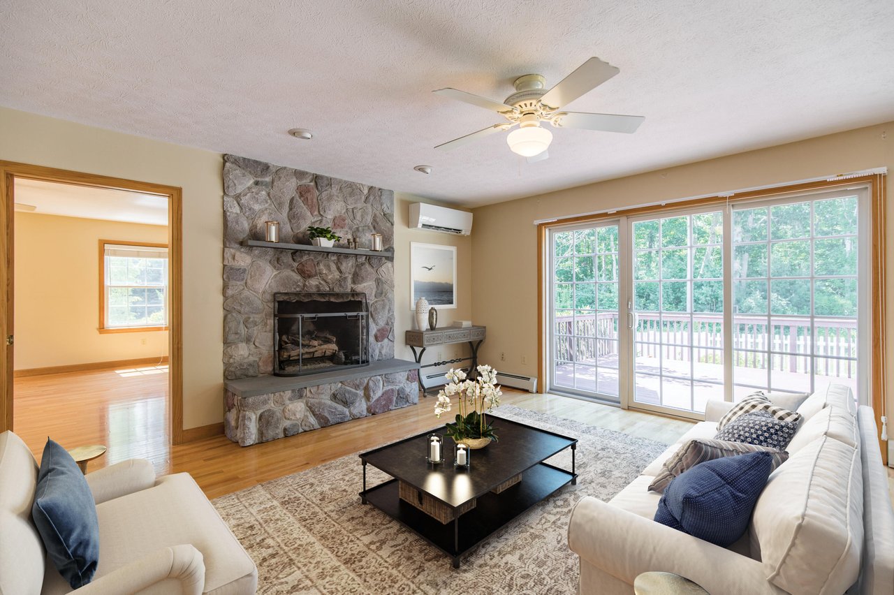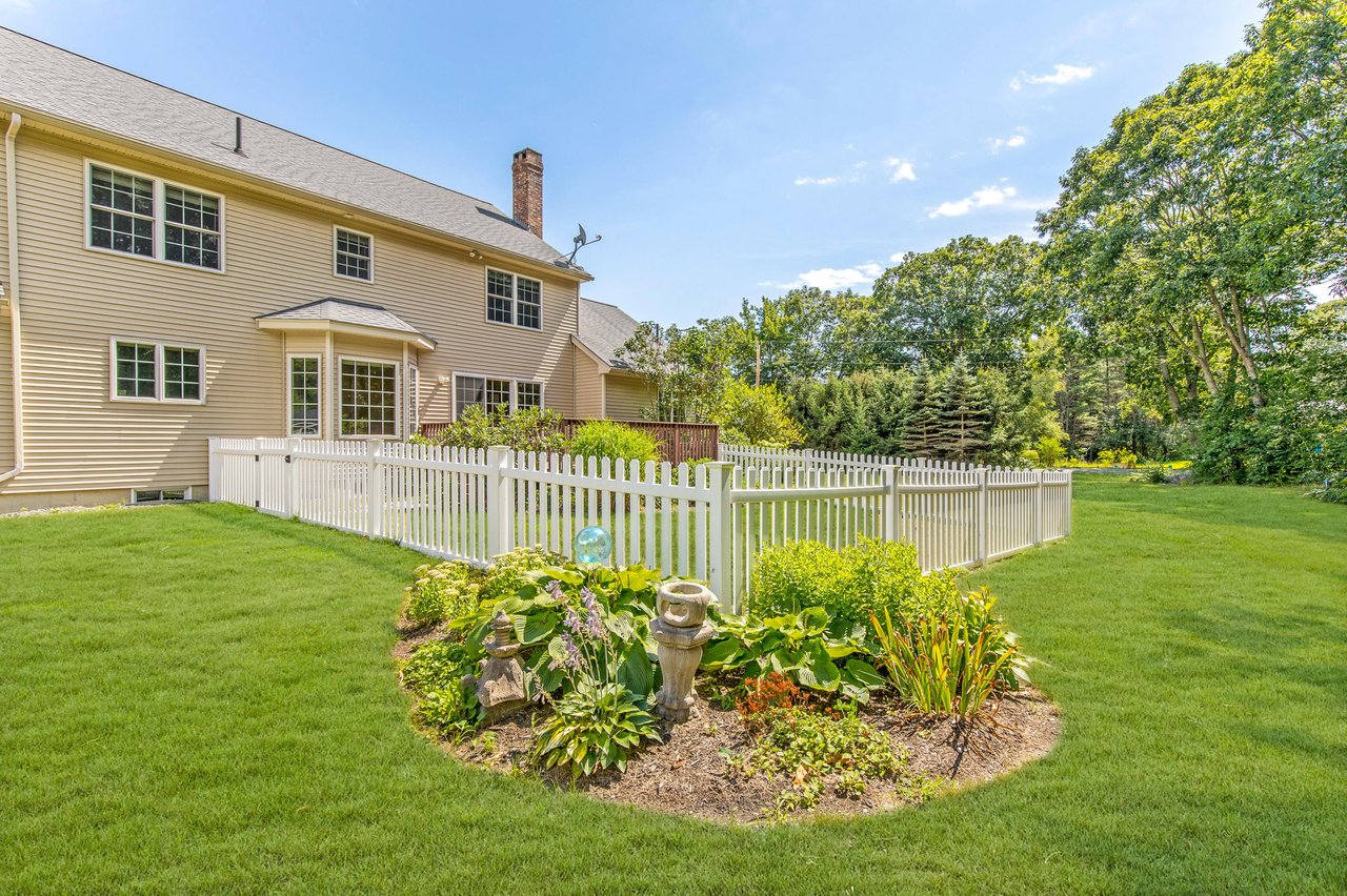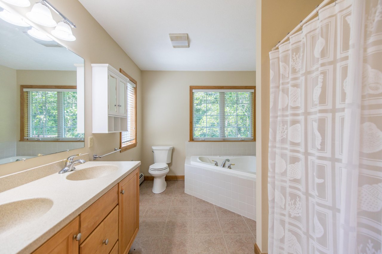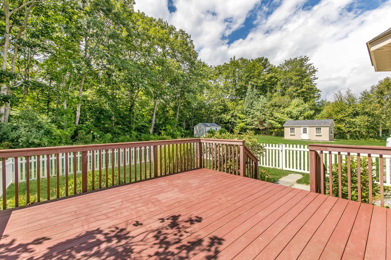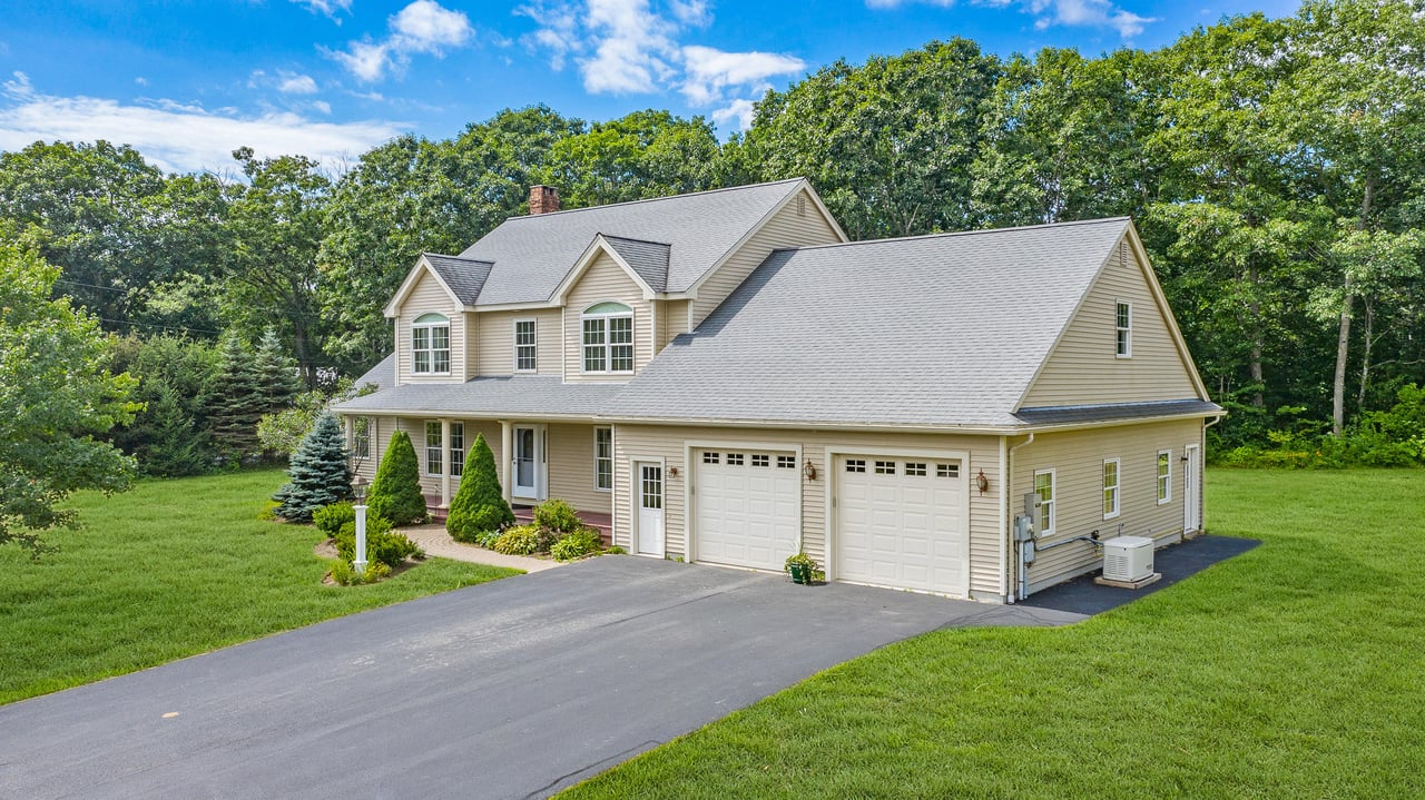 Move right in! This spacious 5 bedroom, 4.5 bath home featuring two primary ensuites, a work-from-home office with built-ins, finished basement, heat pumps, oversized garage with storage above and top of the line air exchange system are but a few of the highlights of this welcoming and immaculate Colonial. The kitchen, with maple cabinets, quartz counters and a center island, opens to a dining area and family room with wood burning fireplace w/ gas insert and sliders to a private back deck. A formal dining room could also be used as living room. Just beyond is a first level primary ensuite with whirlpool tub, separate shower, double vanity, and walk-in closet. Upstairs is a second primary ensuite with massive walk-in closet and 3 additional bedrooms. Situated on a professionally landscaped 1.54 acre lot with matching mini barn, enjoy the ease of living close to Wharton's Point Landing and a few miles to Bowdoin College and Route 295.