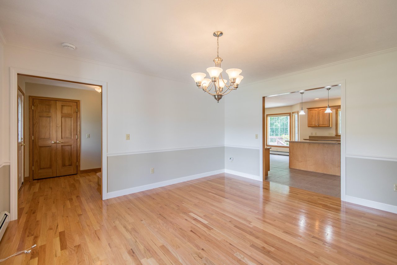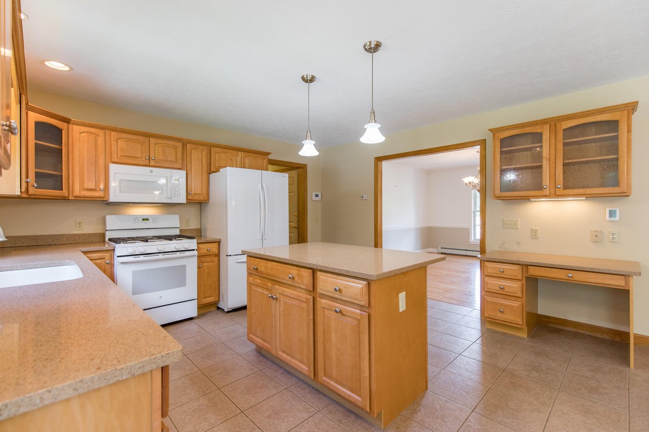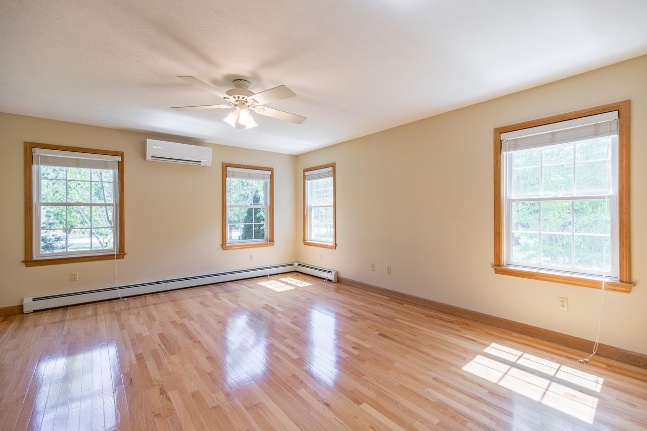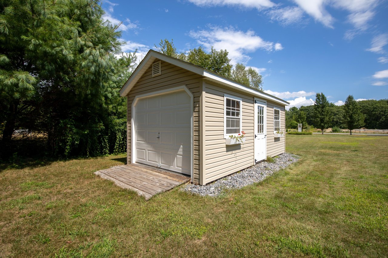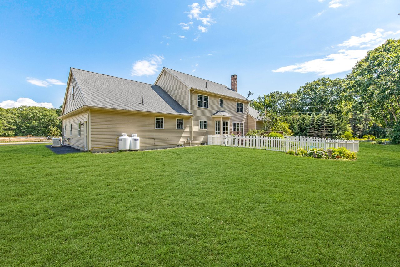 Move right in! This spacious 5 bedroom, 4.5 bath home featuring two primary ensuites, a work-from-home office with built-ins, finished basement, heat pumps, oversized garage with storage above and top of the line air exchange system are but a few of the highlights of this welcoming and immaculate Colonial. The kitchen, with maple cabinets, quartz counters and a center island, opens to a dining area and family room with wood burning fireplace w/ gas insert and sliders to a private back deck. A formal dining room could also be used as living room. Just beyond is a first level primary ensuite with whirlpool tub, separate shower, double vanity, and walk-in closet. Upstairs is a second primary ensuite with massive walk-in closet and 3 additional bedrooms. Situated on a professionally landscaped 1.54 acre lot with matching mini barn, enjoy the ease of living close to Wharton's Point Landing and a few miles to Bowdoin College and Route 295.