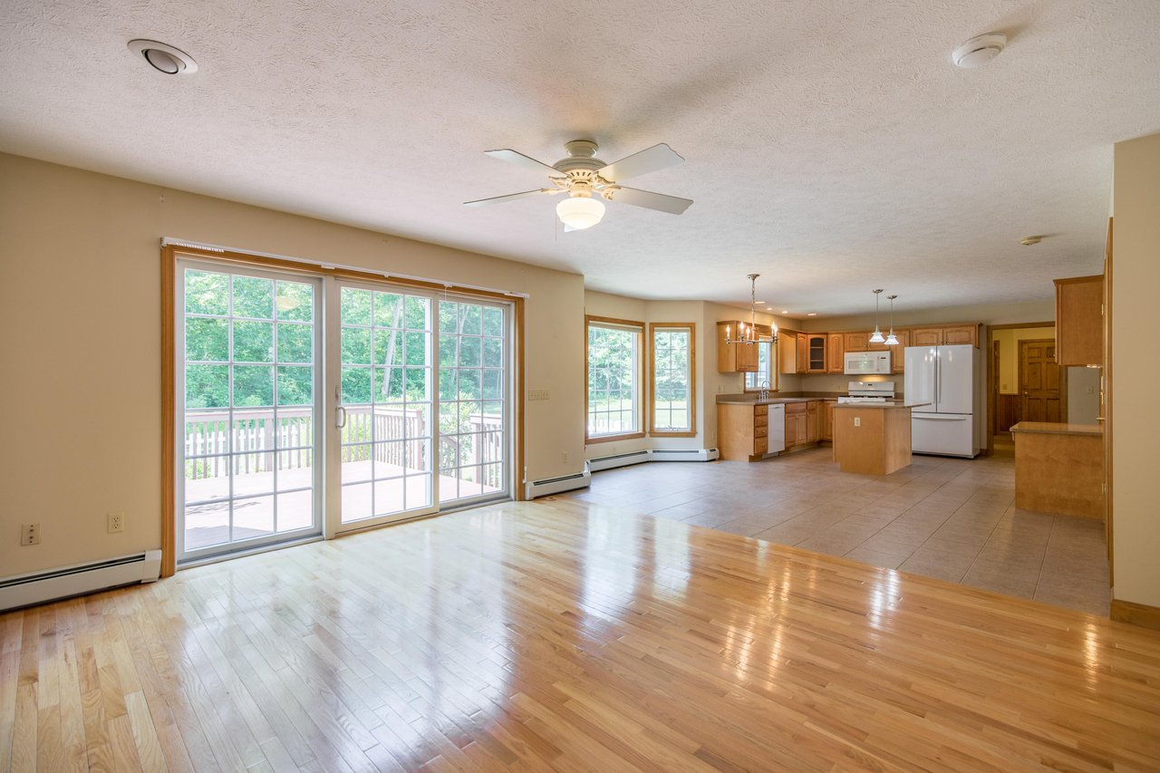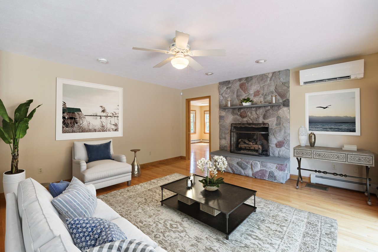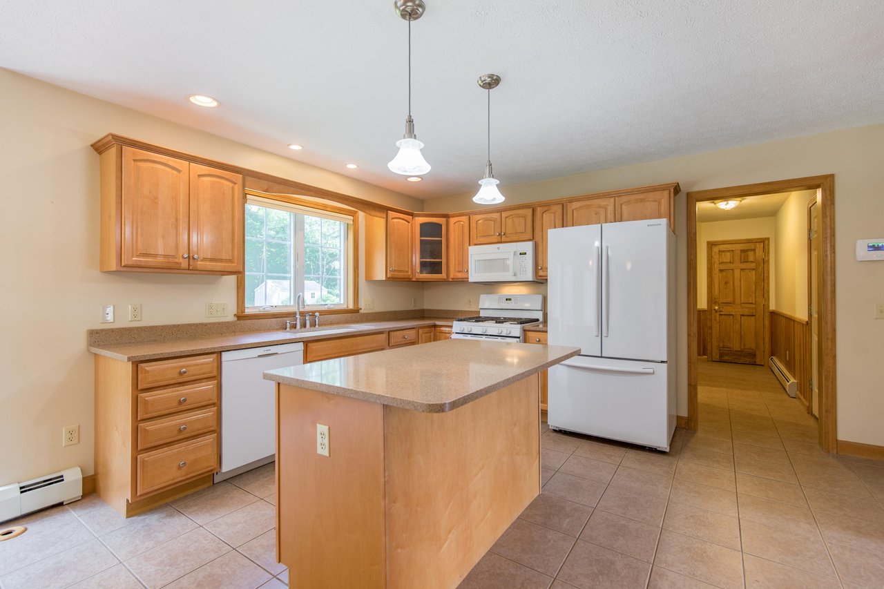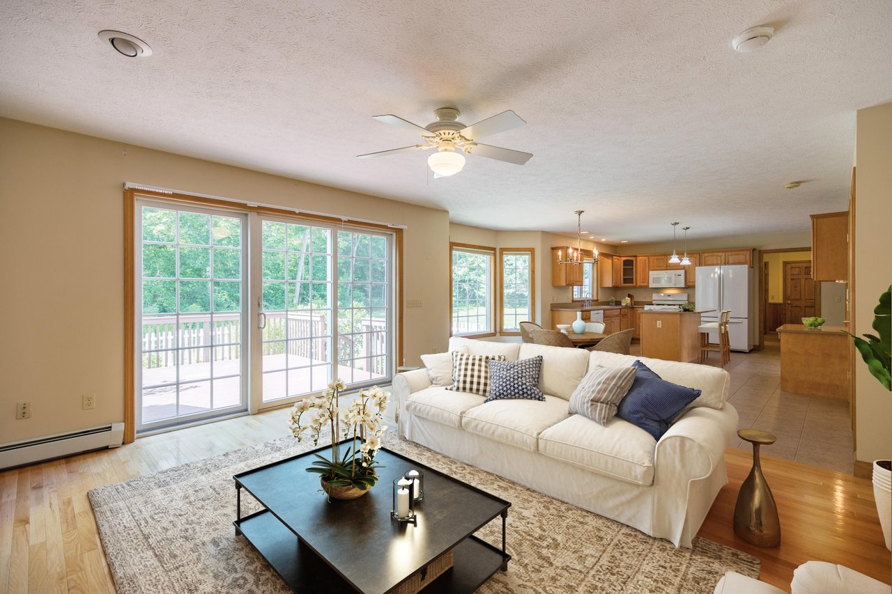 Move right in! This spacious 5 bedroom, 4.5 bath home featuring two primary ensuites, a work-from-home office with built-ins, finished basement, heat pumps, oversized garage with storage above and top of the line air exchange system are but a few of the highlights of this welcoming and immaculate Colonial. The kitchen, with maple cabinets, quartz counters and a center island, opens to a dining area and family room with wood burning fireplace w/ gas insert and sliders to a private back deck. A formal dining room could also be used as living room. Just beyond is a first level primary ensuite with whirlpool tub, separate shower, double vanity, and walk-in closet. Upstairs is a second primary ensuite with massive walk-in closet and 3 additional bedrooms. Situated on a professionally landscaped 1.54 acre lot with matching mini barn, enjoy the ease of living close to Wharton's Point Landing and a few miles to Bowdoin College and Route 295.