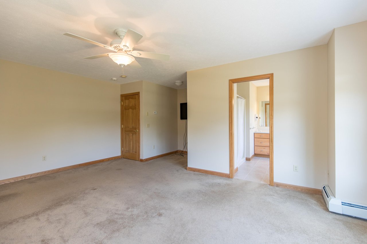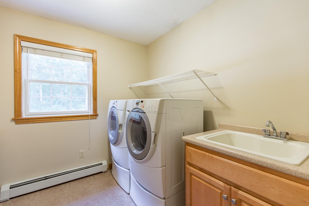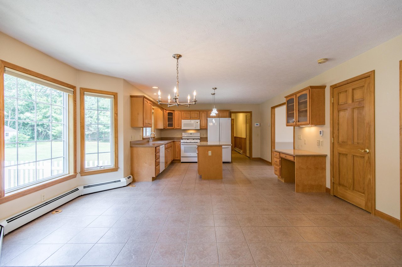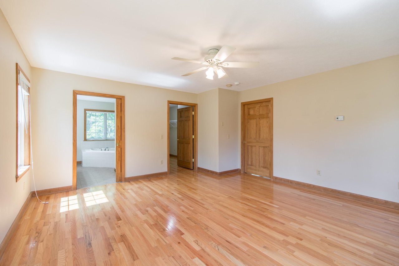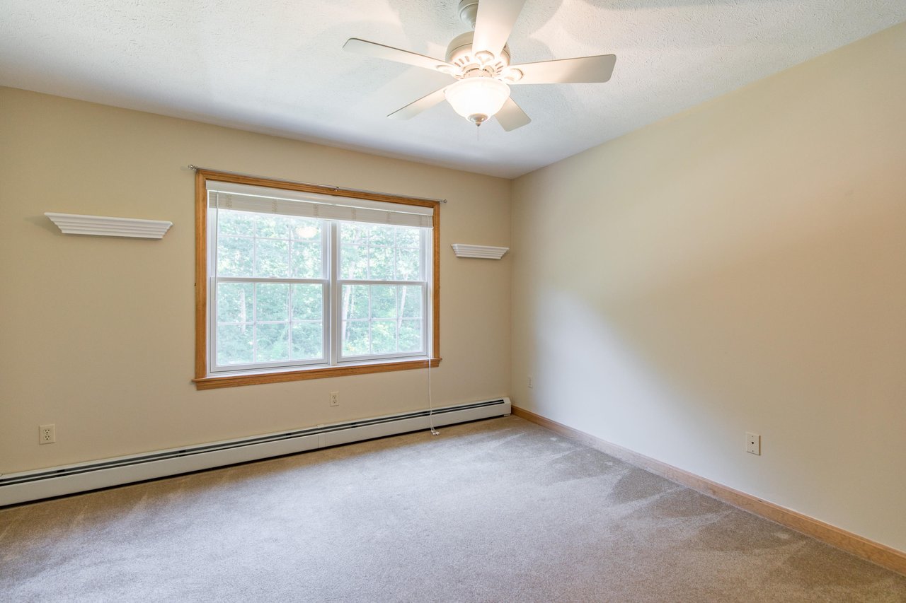 Move right in! This spacious 5 bedroom, 4.5 bath home featuring two primary ensuites, a work-from-home office with built-ins, finished basement, heat pumps, oversized garage with storage above and top of the line air exchange system are but a few of the highlights of this welcoming and immaculate Colonial. The kitchen, with maple cabinets, quartz counters and a center island, opens to a dining area and family room with wood burning fireplace w/ gas insert and sliders to a private back deck. A formal dining room could also be used as living room. Just beyond is a first level primary ensuite with whirlpool tub, separate shower, double vanity, and walk-in closet. Upstairs is a second primary ensuite with massive walk-in closet and 3 additional bedrooms. Situated on a professionally landscaped 1.54 acre lot with matching mini barn, enjoy the ease of living close to Wharton's Point Landing and a few miles to Bowdoin College and Route 295.