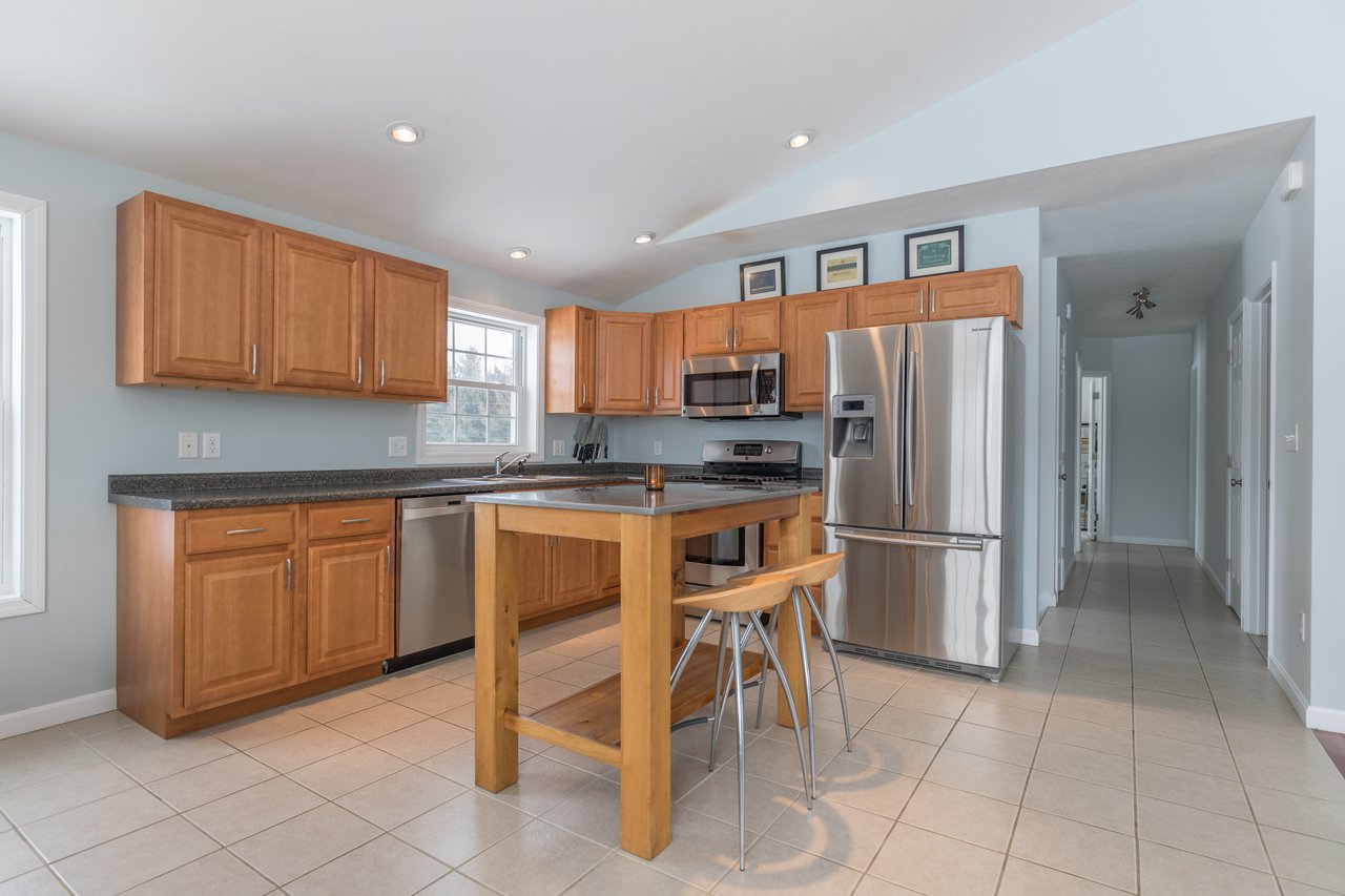 Outdoor enthusiasts delight! Built in 2011 and set on 6 acres of land, this 3 bed, 2 bath home offers a large garage/ workshop; capable of accommodating 4 cars! With 1344 sqft, the home layout boasts a comfortable living space with a kitchen that opens to the living and dining room. The sliders off kitchen lead to a deck overlooking the large, private lot while the master bedroom en-suite features a walk-in shower and dual vanity. This lovely Saco property includes an approved additional buildable lot, in-town convenience with a great rural feel! Minutes to Rt. 1, Maine Turnpike and local beaches.