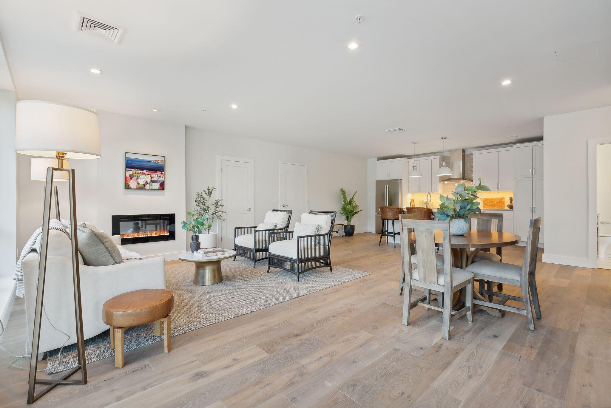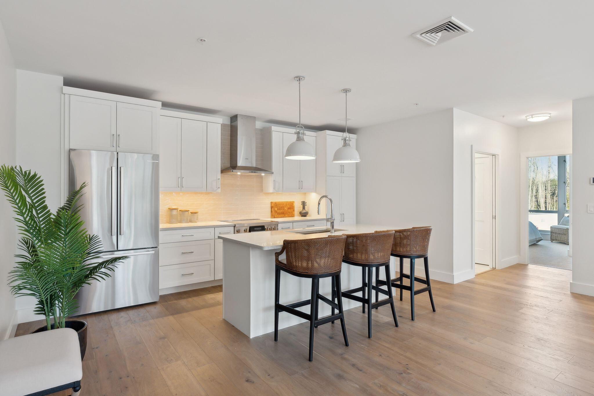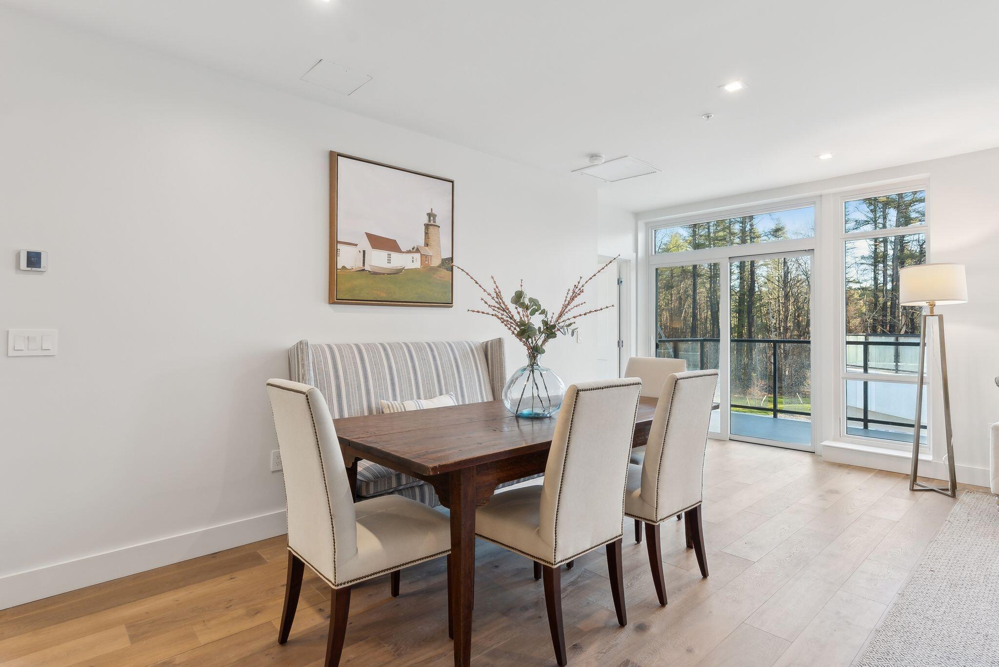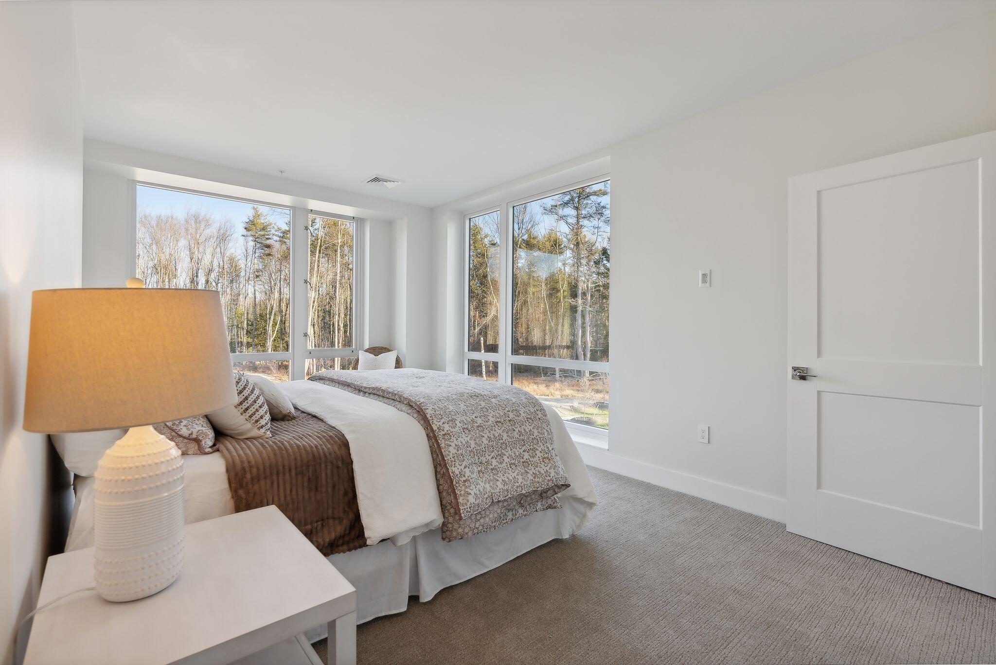 Welcome to The Wyeth, where casual luxury connects with the natural beauty of Maine to transform the way you live. Unit #206 is a private corner unit with an oversized balcony. The interior is appointed with high end finishes, like 9-foot ceilings, a Bosch appliance package, and lovely quartz and tile work throughout the kitchen and baths. Outside, you'll enjoy peaceful, wooded views from the private deck. Beyond your private sanctuary, shared spaces come alive with possibility. Work up a sweat in the gym, then relax around crackling firepits on the expansive common roof terrace. A community club room is the perfect place to gather with guests or neighbors. Or, immerse yourself in the many vibrant dining and shopping options, just steps away. Located in the heart of Falmouth, the residences at The Wyeth offer convenience and accessibility. Covered underground parking with elevator access to all levels of the building is included. Surrounded by parks, nature preserves, trail systems, and waterfront access, Falmouth is the ideal community for outdoor enthusiasts. The Wyeth's central location to Portland, the Jetport, and highways puts you moments away from adventure in all directions. Within seconds you can be headed north to ski country, south to beaches, Kennebunkport, into Boston for the evening, or to the airport and destinations anywhere in the world. Occupancy December 2024. Now touring! More units available.