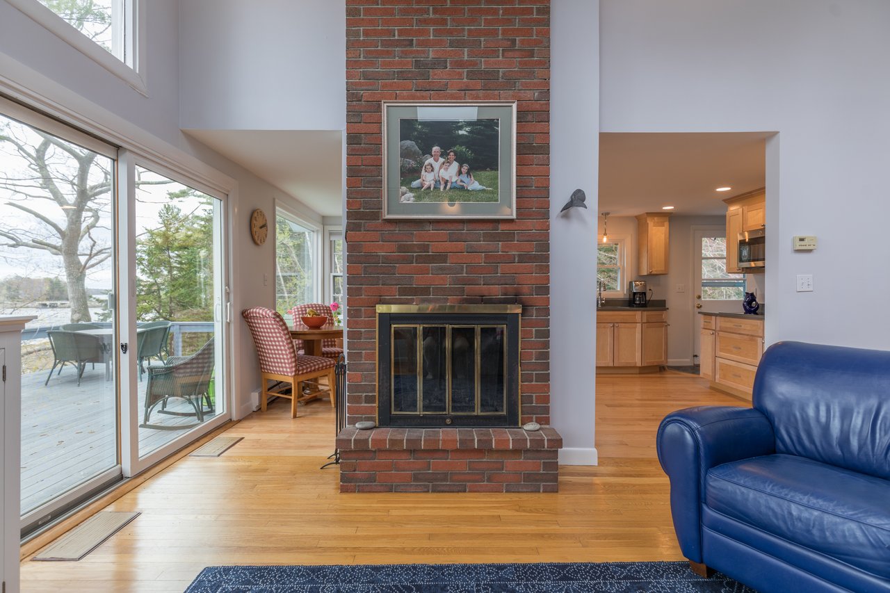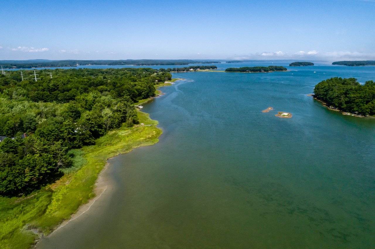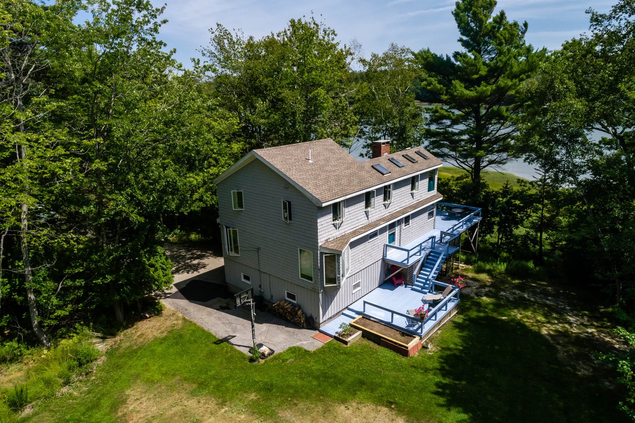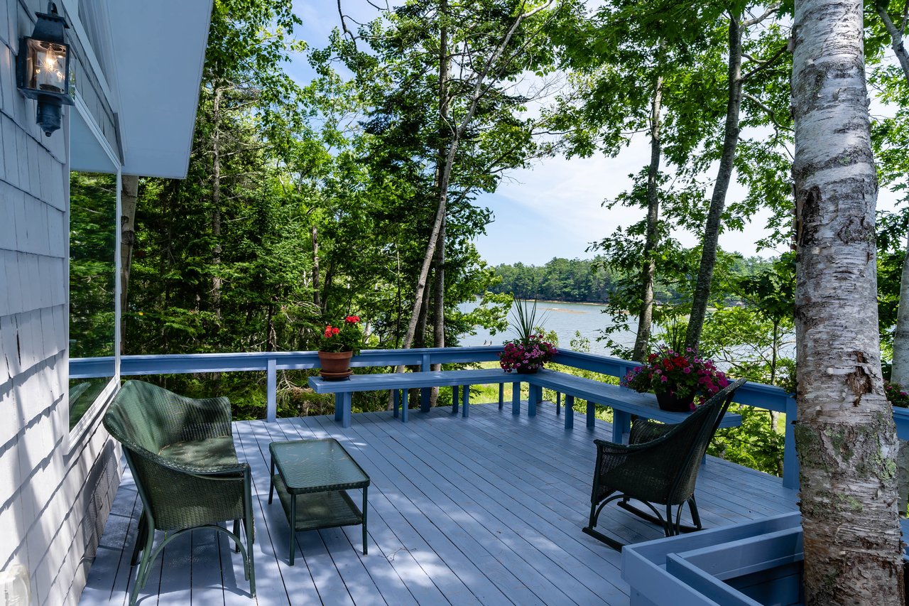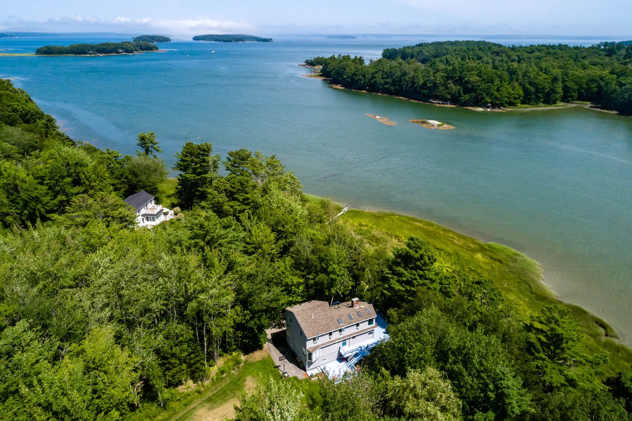 Nestled in a cove on 3 acres, this stunning waterfront home boasts 277 feet of water frontage with views of Casco Bay from nearly every room! The home offers a bright open layout featuring a spacious living room and dining area with a 2 story brick fireplace, skylights and sliders out to the deck. The kitchen was just updated in 2018 with SS appliances, quartz counters, and beautiful maple cabinetry. Indulge in the large master suite with a den area featuring a spa-like bath and double closets. 2 additional bedrooms, a mudroom, and 1.5 car garage compliment this home. An extraordinary outdoor oasis is highlighted by an expansive wrap-around deck, lower level deck, gracious yard, and private dock. Located just 10 minutes from downtown Yarmouth Village and 20 minutes to Portland.