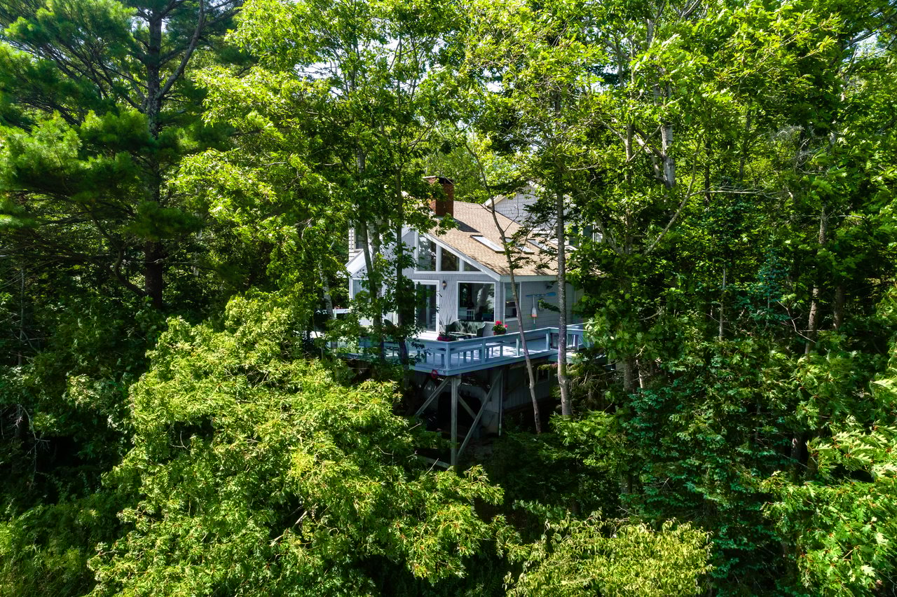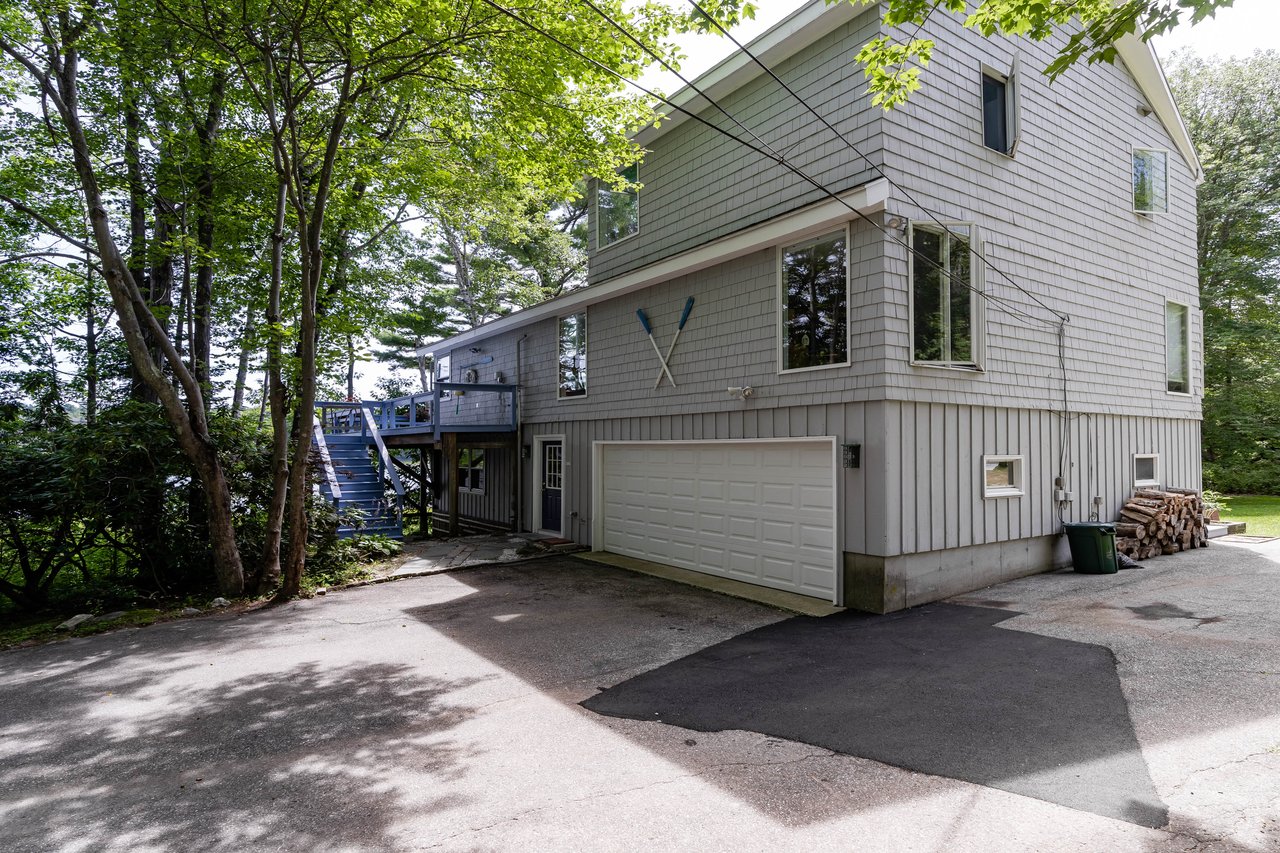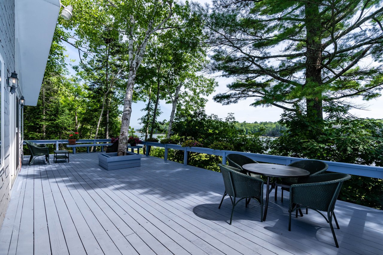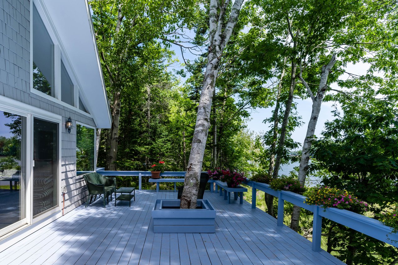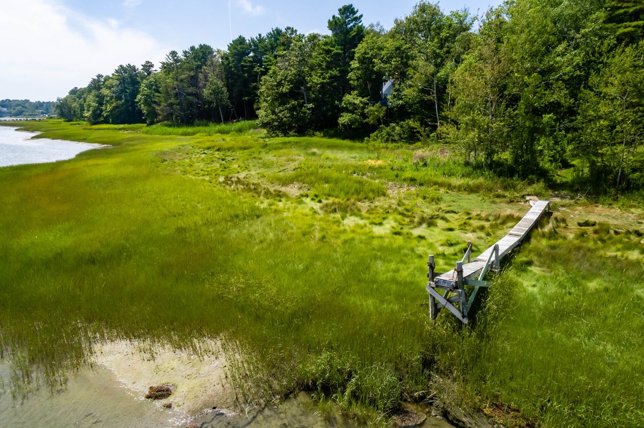 Nestled in a cove on 3 acres, this stunning waterfront home boasts 277 feet of water frontage with views of Casco Bay from nearly every room! The home offers a bright open layout featuring a spacious living room and dining area with a 2 story brick fireplace, skylights and sliders out to the deck. The kitchen was just updated in 2018 with SS appliances, quartz counters, and beautiful maple cabinetry. Indulge in the large master suite with a den area featuring a spa-like bath and double closets. 2 additional bedrooms, a mudroom, and 1.5 car garage compliment this home. An extraordinary outdoor oasis is highlighted by an expansive wrap-around deck, lower level deck, gracious yard, and private dock. Located just 10 minutes from downtown Yarmouth Village and 20 minutes to Portland.