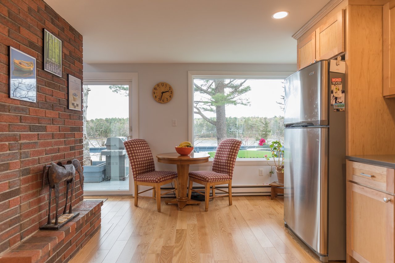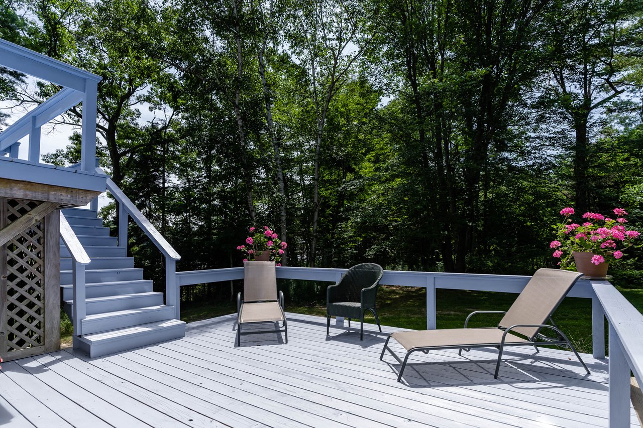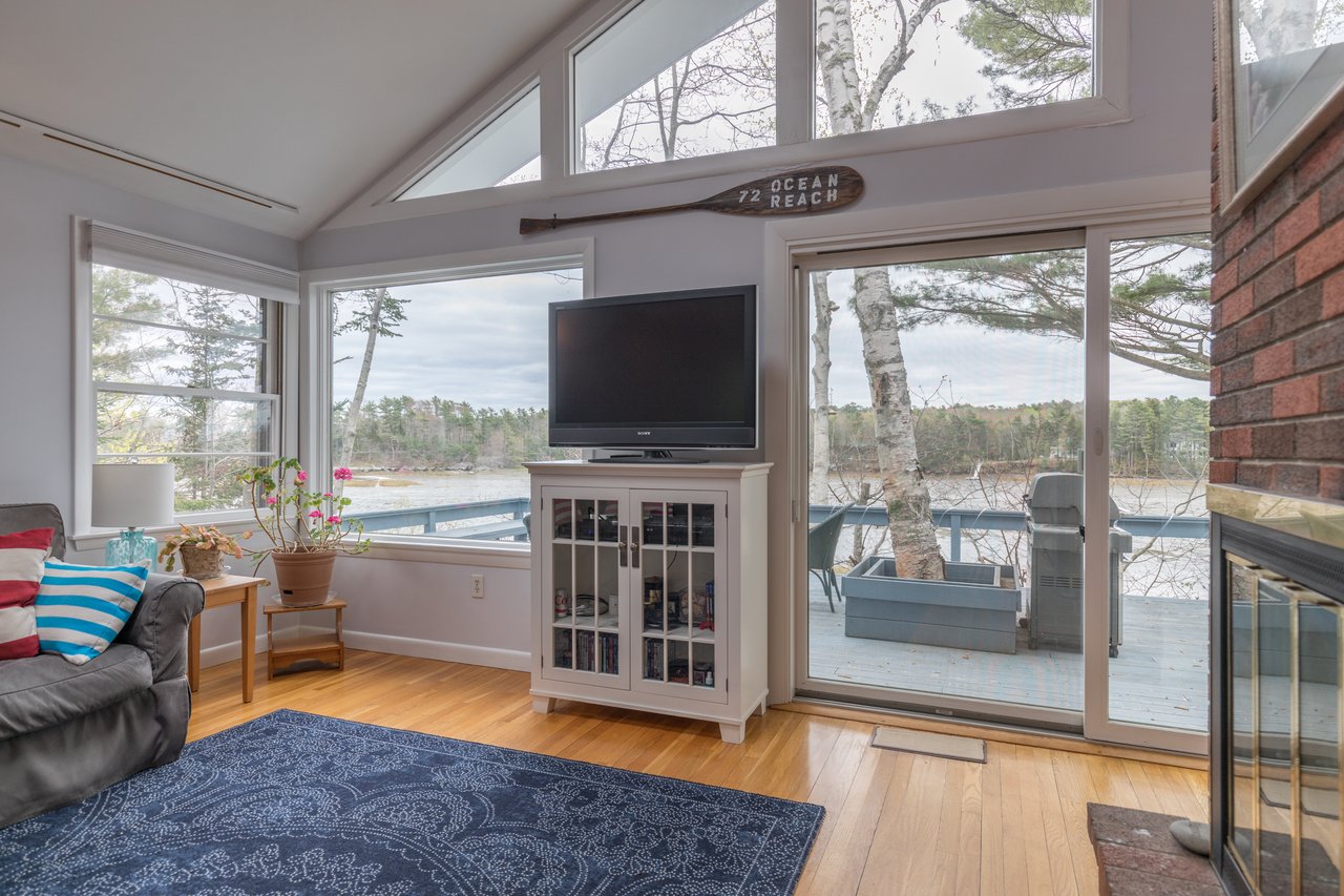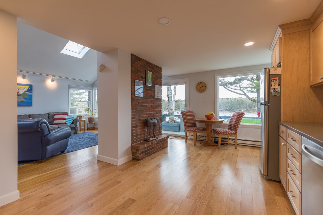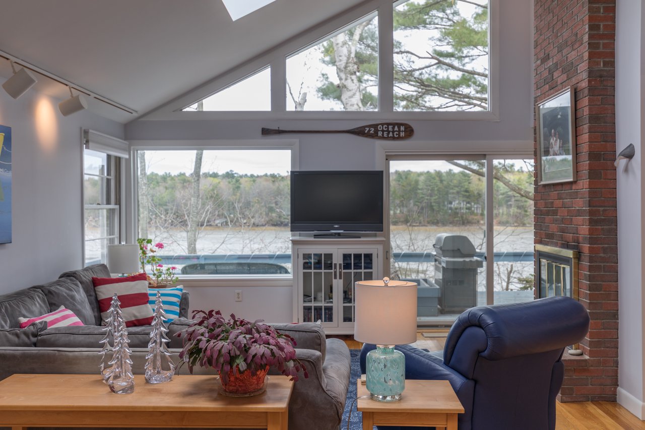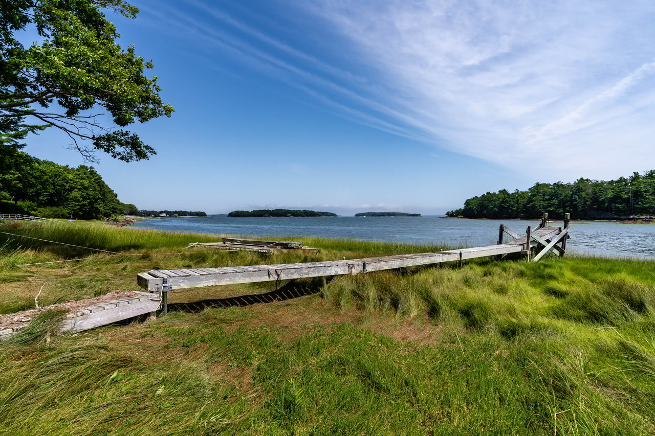 Nestled in a cove on 3 acres, this stunning waterfront home boasts 277 feet of water frontage with views of Casco Bay from nearly every room! The home offers a bright open layout featuring a spacious living room and dining area with a 2 story brick fireplace, skylights and sliders out to the deck. The kitchen was just updated in 2018 with SS appliances, quartz counters, and beautiful maple cabinetry. Indulge in the large master suite with a den area featuring a spa-like bath and double closets. 2 additional bedrooms, a mudroom, and 1.5 car garage compliment this home. An extraordinary outdoor oasis is highlighted by an expansive wrap-around deck, lower level deck, gracious yard, and private dock. Located just 10 minutes from downtown Yarmouth Village and 20 minutes to Portland.