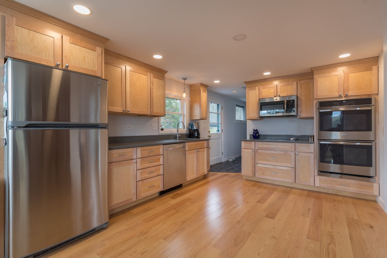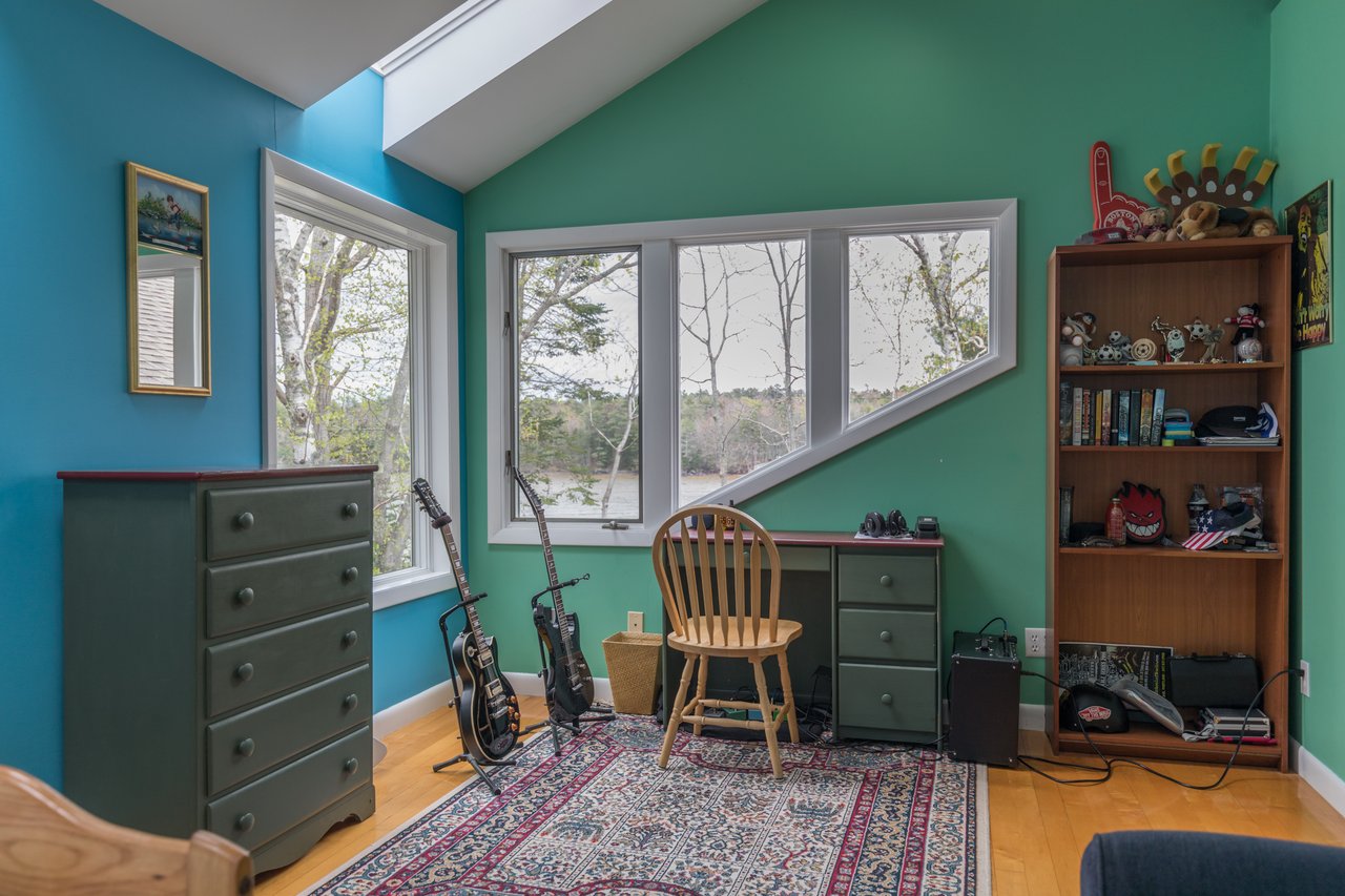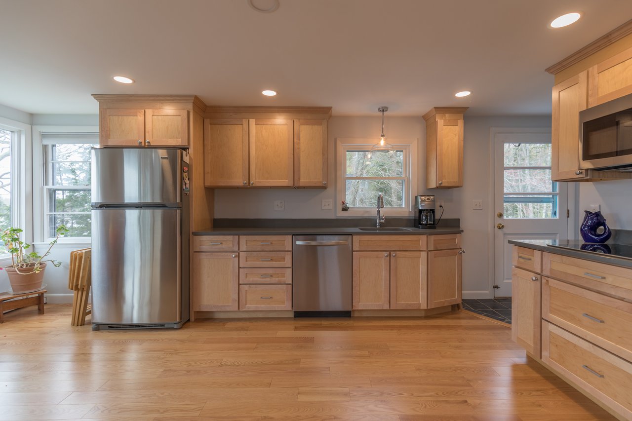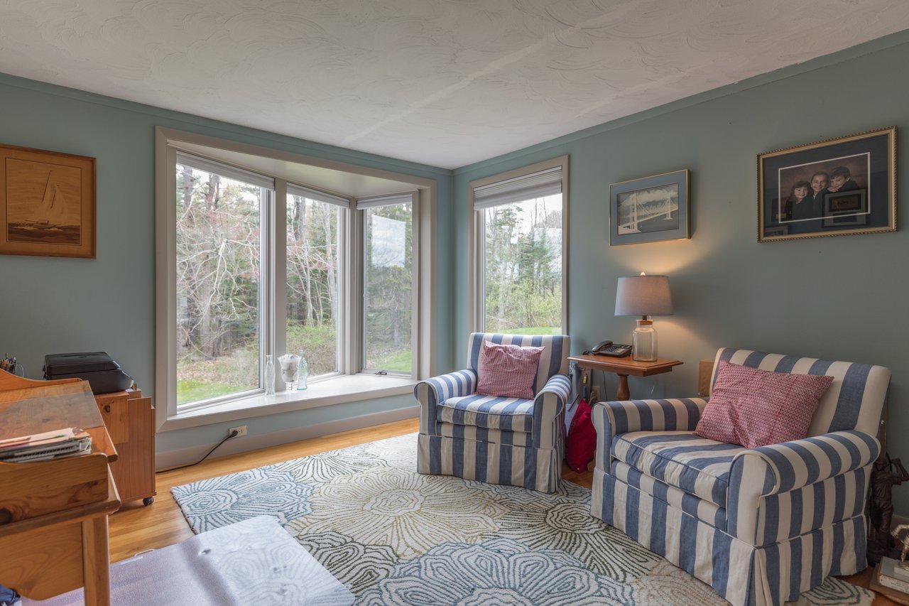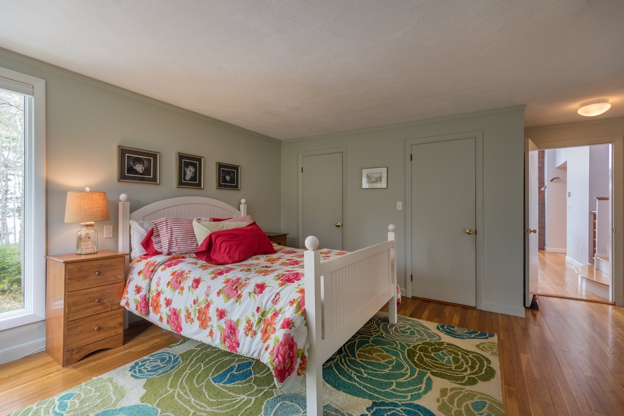 Nestled in a cove on 3 acres, this stunning waterfront home boasts 277 feet of water frontage with views of Casco Bay from nearly every room! The home offers a bright open layout featuring a spacious living room and dining area with a 2 story brick fireplace, skylights and sliders out to the deck. The kitchen was just updated in 2018 with SS appliances, quartz counters, and beautiful maple cabinetry. Indulge in the large master suite with a den area featuring a spa-like bath and double closets. 2 additional bedrooms, a mudroom, and 1.5 car garage compliment this home. An extraordinary outdoor oasis is highlighted by an expansive wrap-around deck, lower level deck, gracious yard, and private dock. Located just 10 minutes from downtown Yarmouth Village and 20 minutes to Portland.