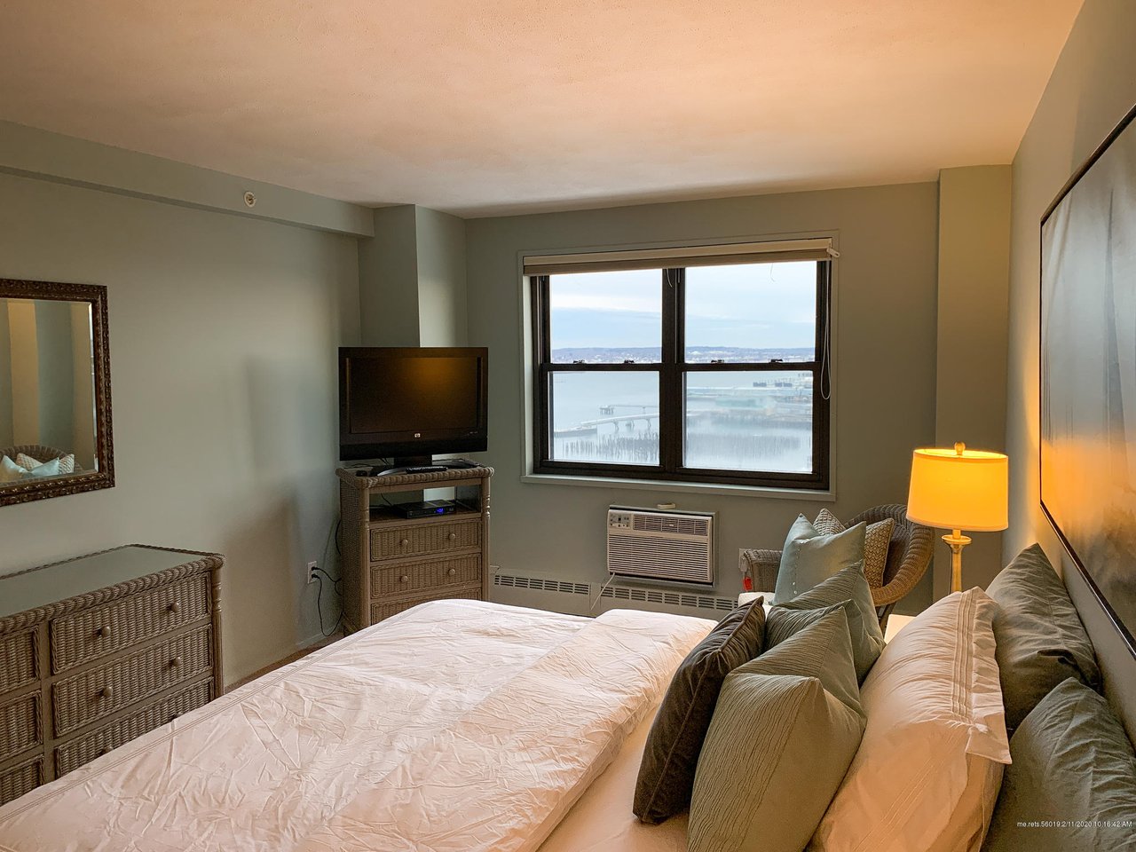 Exquisite 10th floor condo at the Portland House overlooking Casco Bay and Portland's' downtown waterfront. This sunny, southwest facing unit offers 888 SF of living space including 1 bedroom, 1 full bath, and a large, private balcony boasting sweeping ocean and city views. This unit includes heated parking, fitness room, and a common recreation/event room with kitchen for unit owners to use. Enjoy one HOA fee that includes heat, hot water, cable/wifi as well as the expected common areas, exterior maintenance, landscaping and snow removal. Sit out on your balcony and enjoy the activity of the harbor as the sun sets over the city while being only minutes to Portland's Old Port, Fort Allen Park, and all East End amenities.