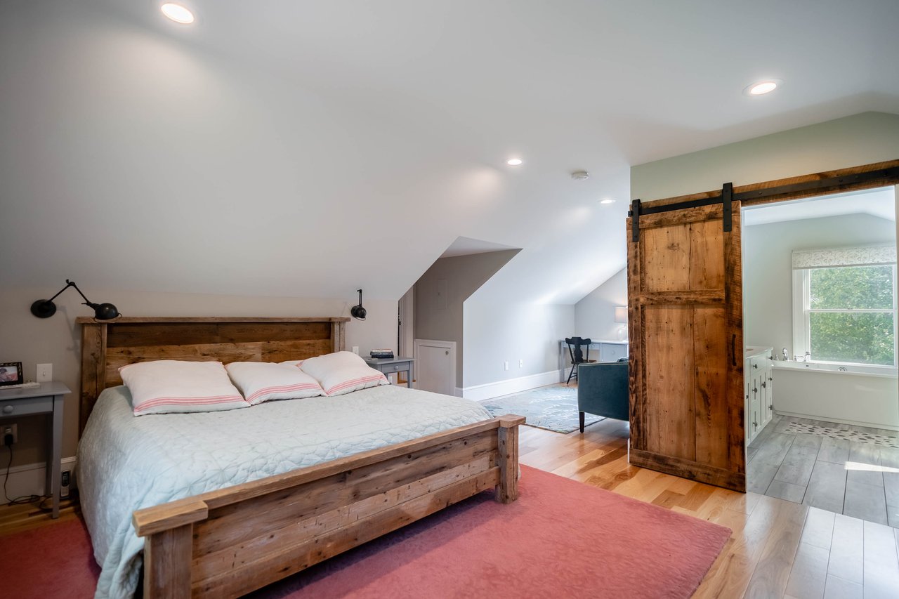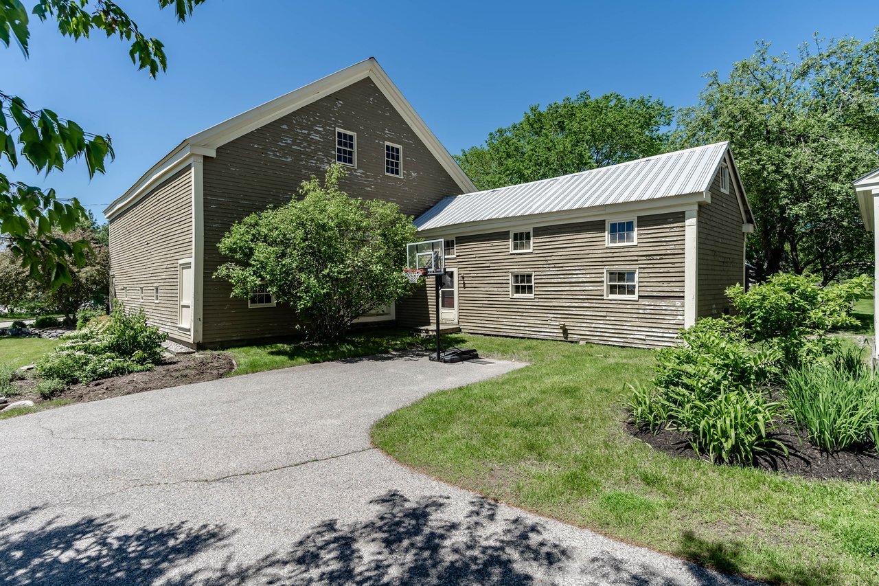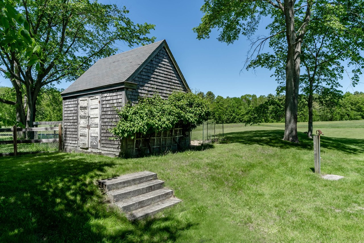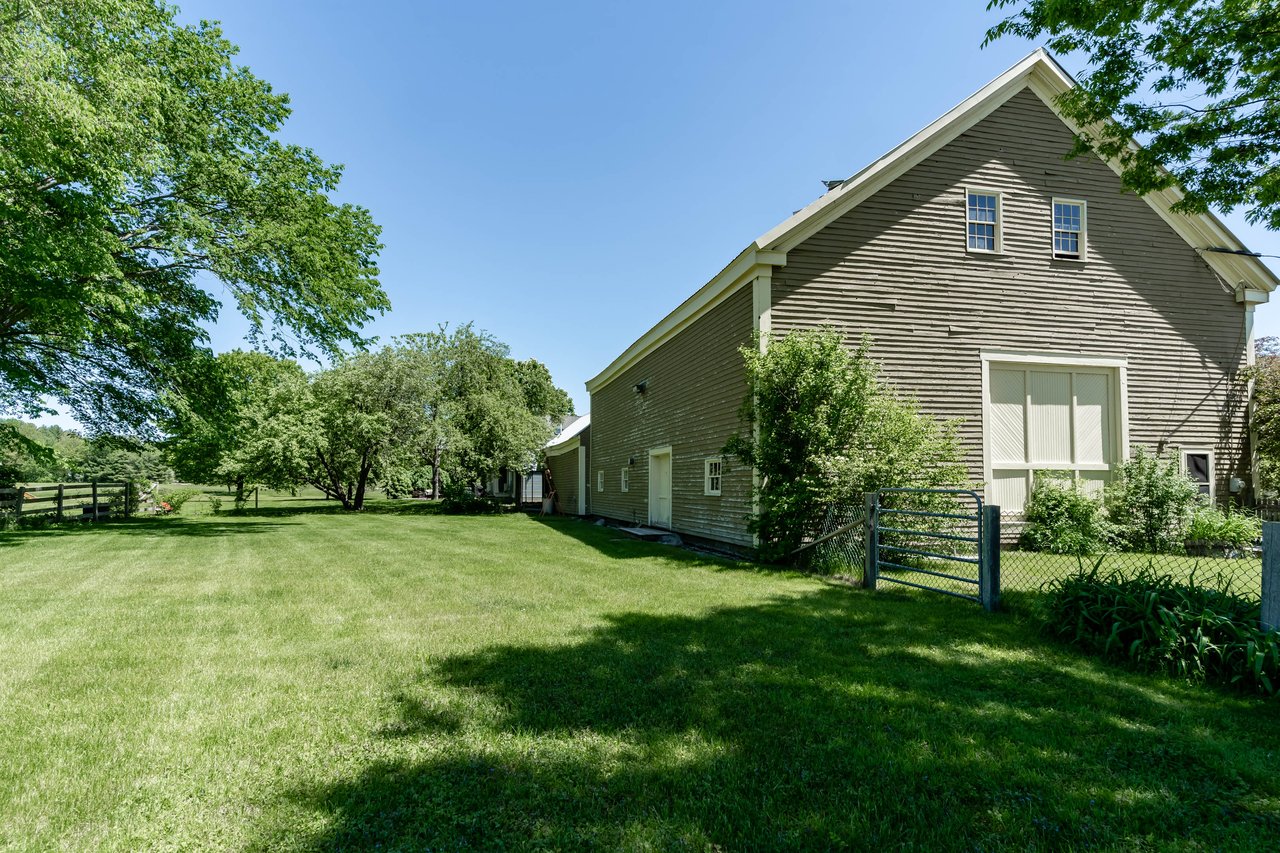 Beautifully restored antique Cape-Cod style farmhouse with barn set on over 3.79 acres in Falmouth! The perfect blend of antique charm & modern amenities, this home offers a large gourmet kitchen with exposed beams & granite counters. Original wide pine floors sprawl throughout the homes sun-filled rooms including a living room with a pellet stove, family room offering a wet bar, dining room with doors out to the back porch, & a cozy home office space. Retreat to the master suite oasis complete with a sitting area, gas fireplace, walk-in closet & a sliding barn door into the ensuite offering a custom glass shower & soaking tub. Head out through the mudroom & enjoy the convenience of an attached 2 car garage. Outside, relax on the back porch or dine out on the patio overlooking the properties peach trees, gardens, chicken coop, & peaceful views. The barn is in great condition with many possibilities & features a heated workshop, plenty of storage space, & 2 bathrooms. Additional land available!
