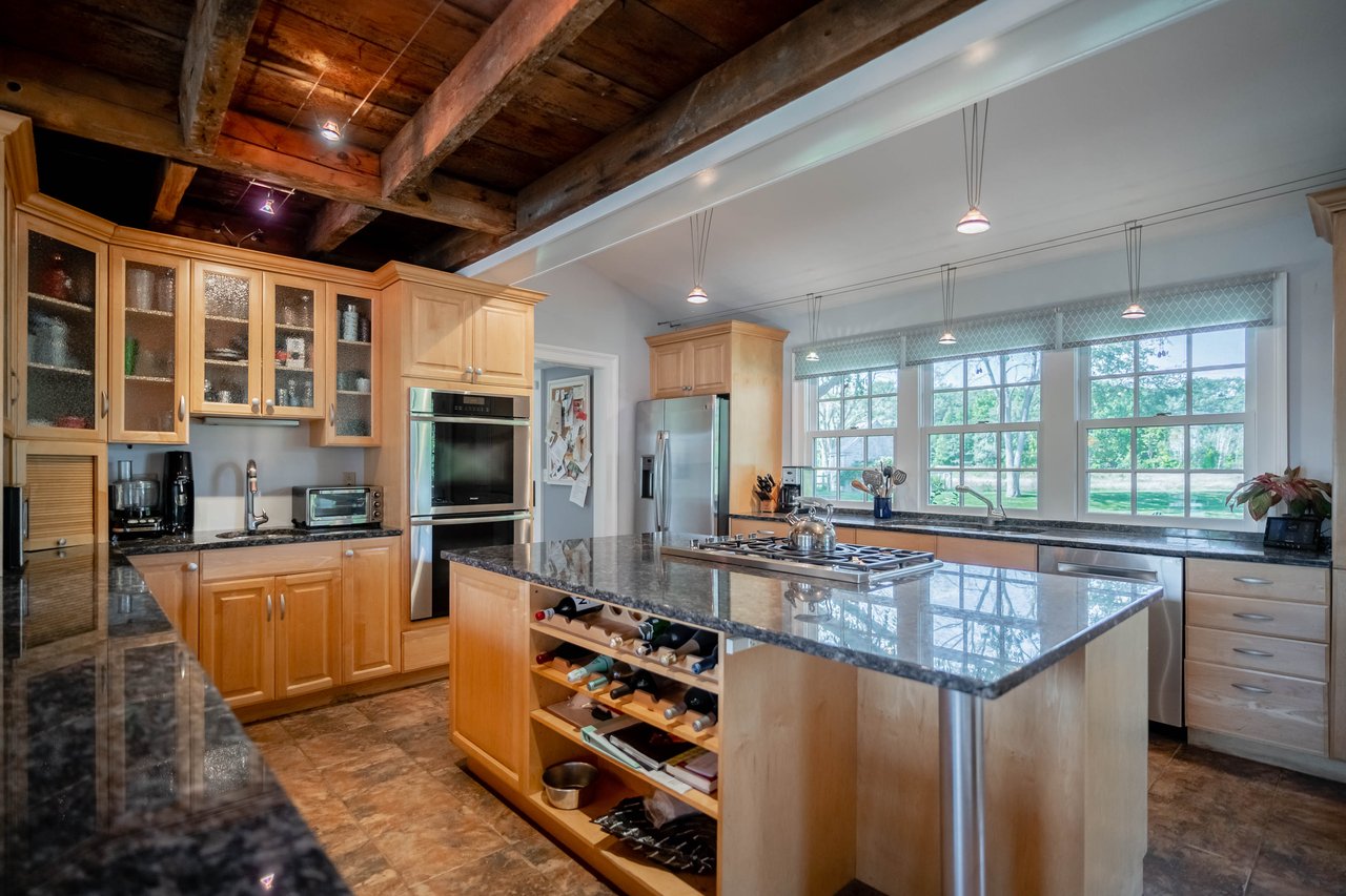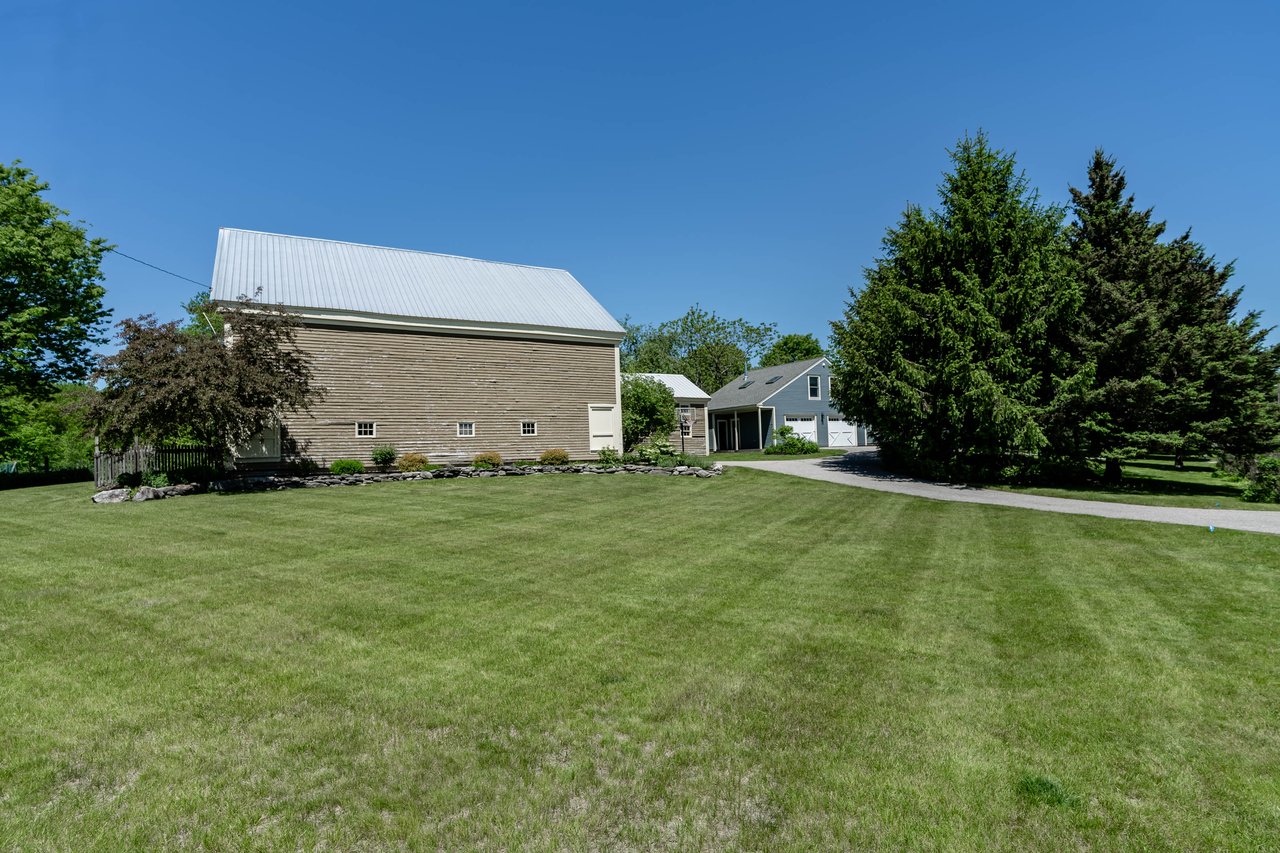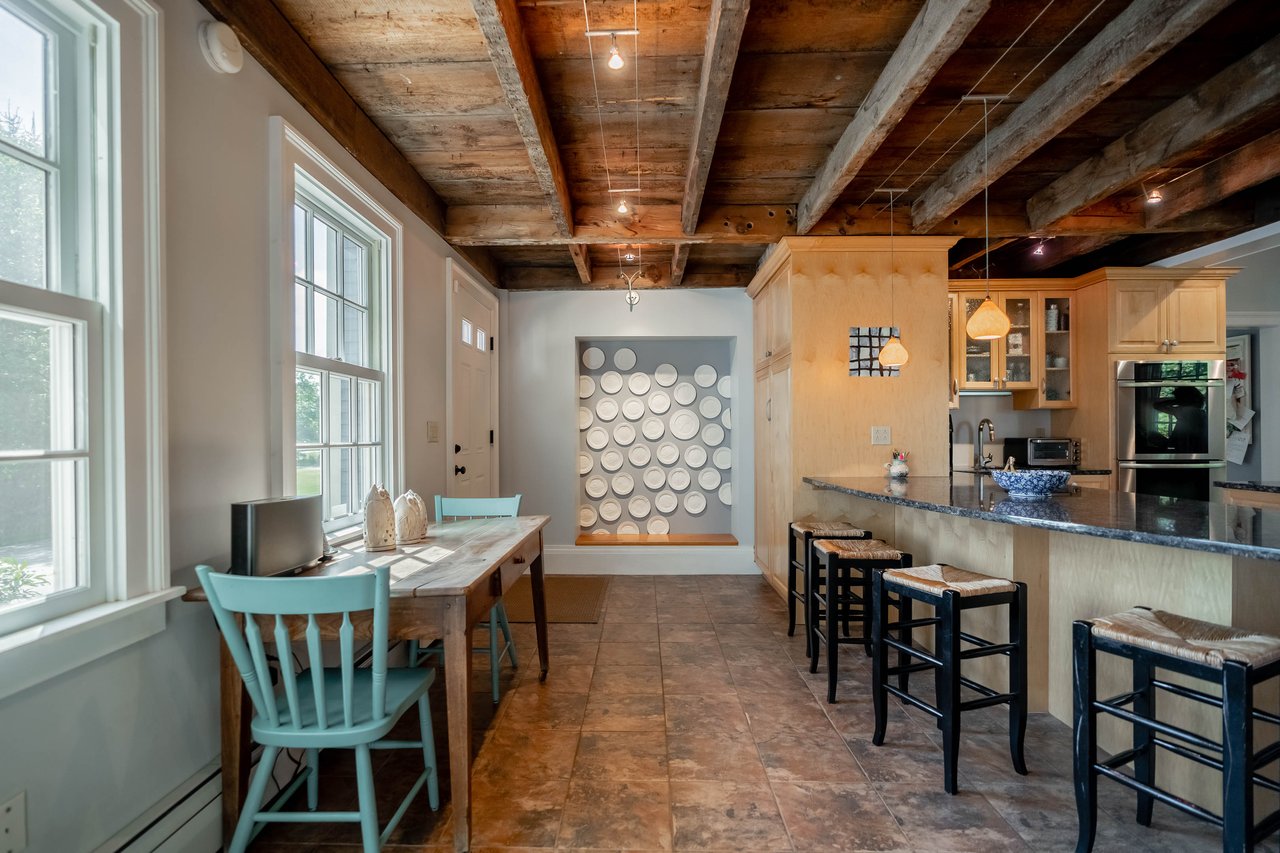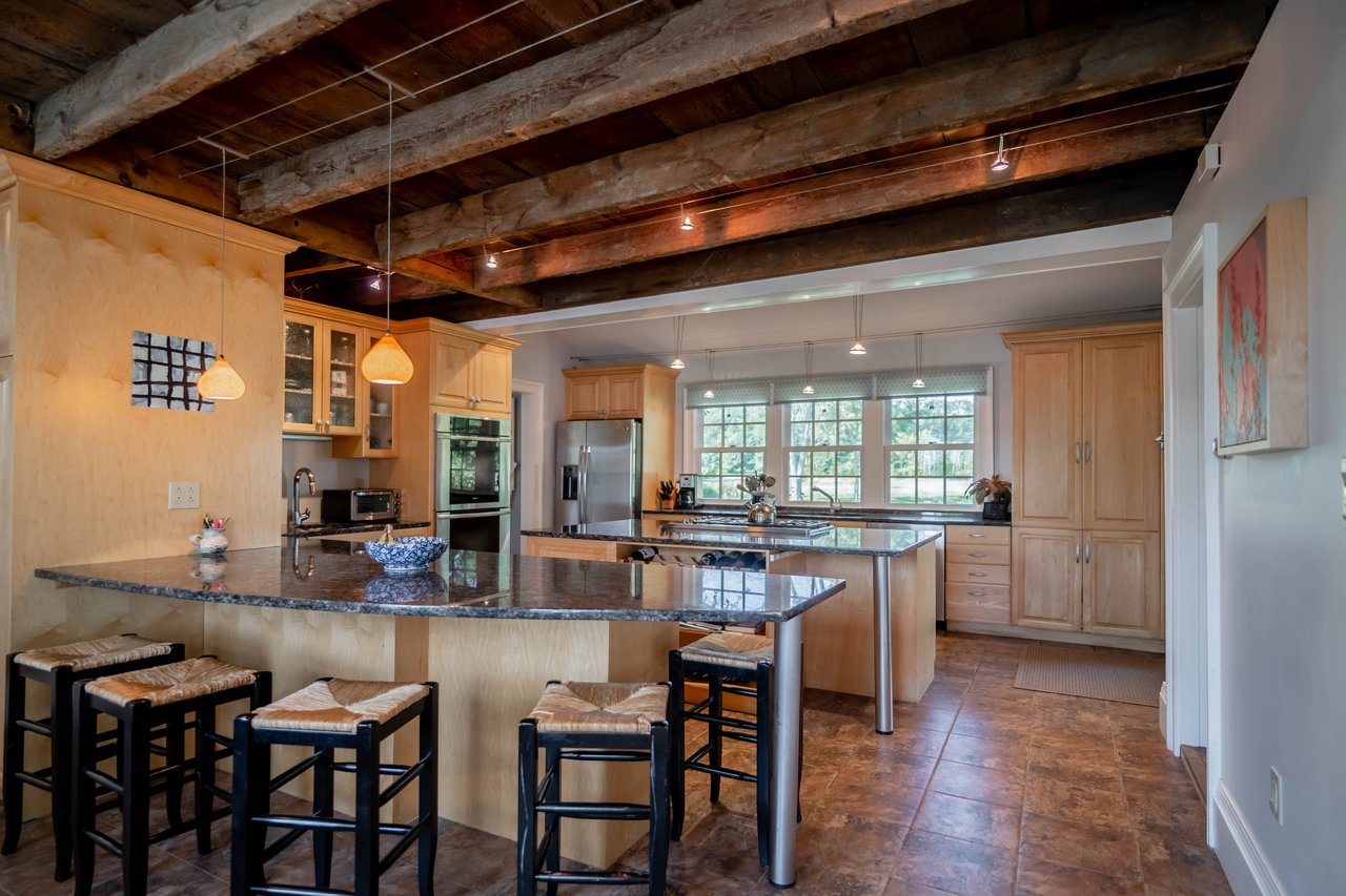 Beautifully restored antique Cape-Cod style farmhouse with barn set on over 3.79 acres in Falmouth! The perfect blend of antique charm & modern amenities, this home offers a large gourmet kitchen with exposed beams & granite counters. Original wide pine floors sprawl throughout the homes sun-filled rooms including a living room with a pellet stove, family room offering a wet bar, dining room with doors out to the back porch, & a cozy home office space. Retreat to the master suite oasis complete with a sitting area, gas fireplace, walk-in closet & a sliding barn door into the ensuite offering a custom glass shower & soaking tub. Head out through the mudroom & enjoy the convenience of an attached 2 car garage. Outside, relax on the back porch or dine out on the patio overlooking the properties peach trees, gardens, chicken coop, & peaceful views. The barn is in great condition with many possibilities & features a heated workshop, plenty of storage space, & 2 bathrooms. Additional land available!