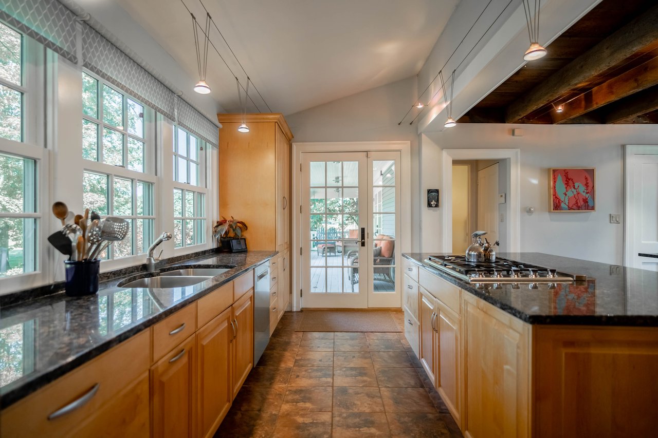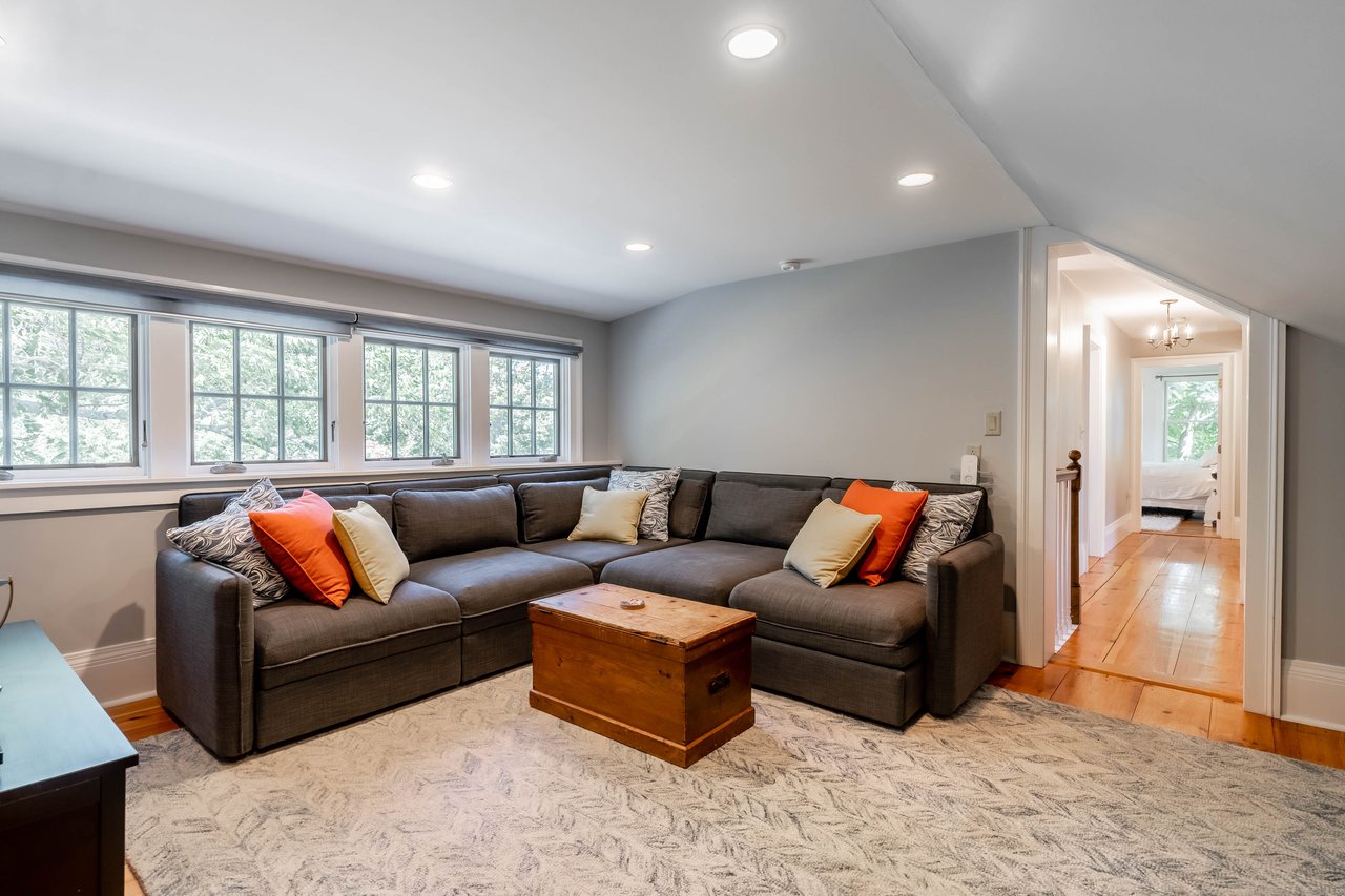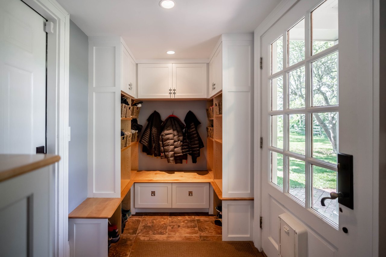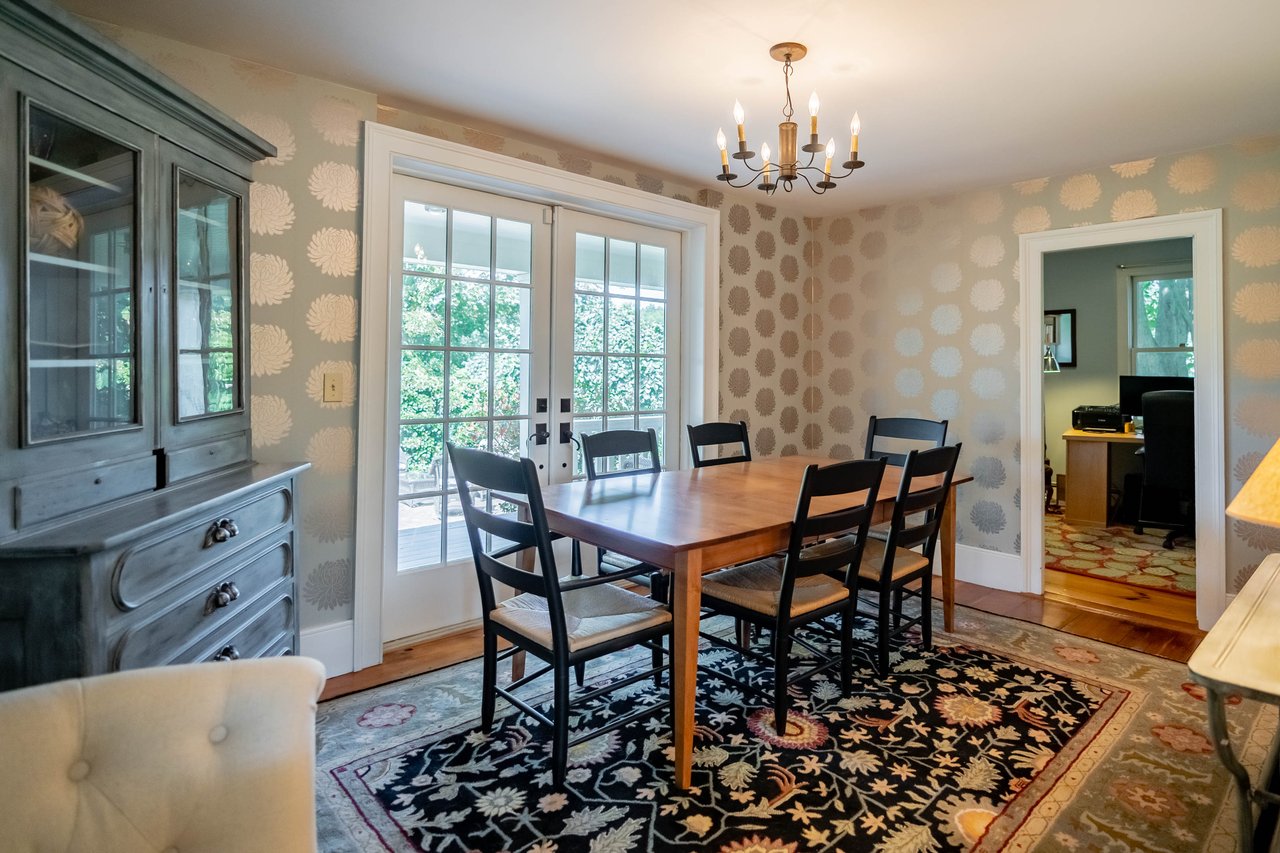 Beautifully restored antique Cape-Cod style farmhouse with barn set on over 3.79 acres in Falmouth! The perfect blend of antique charm & modern amenities, this home offers a large gourmet kitchen with exposed beams & granite counters. Original wide pine floors sprawl throughout the homes sun-filled rooms including a living room with a pellet stove, family room offering a wet bar, dining room with doors out to the back porch, & a cozy home office space. Retreat to the master suite oasis complete with a sitting area, gas fireplace, walk-in closet & a sliding barn door into the ensuite offering a custom glass shower & soaking tub. Head out through the mudroom & enjoy the convenience of an attached 2 car garage. Outside, relax on the back porch or dine out on the patio overlooking the properties peach trees, gardens, chicken coop, & peaceful views. The barn is in great condition with many possibilities & features a heated workshop, plenty of storage space, & 2 bathrooms. Additional land available!