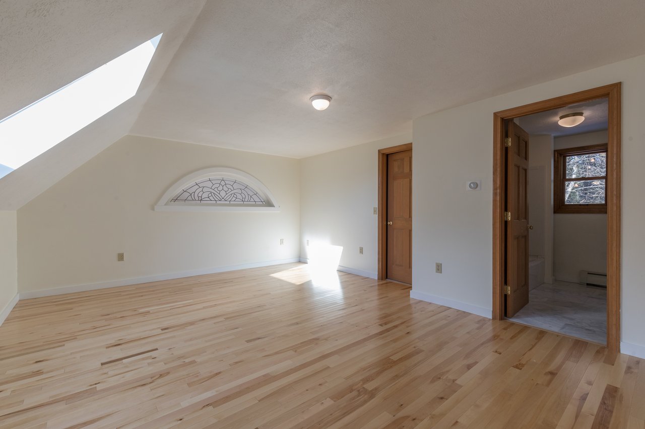 This west Scarborough home sits on 5.69 acres, offering plenty of privacy with an additional buildable lot. The first floor features maple flooring, new lighting, an open concept kitchen with casual dining area and living room with wood stove and sliders to the deck overlooking the treelined yard. Additionally, you will find two first floor bedrooms, a completely renovated full bath and a large family room with cathedral ceiling. The second level offers a loft area and master suite with walk-in closet and full bath. A bonus room with heat pump completes the space over the garage. System upgrades include a new boiler, hot water heater and heat pump. Enjoy the nature and beauty of country living while being minutes from the South Portland amenities & the turnpike.