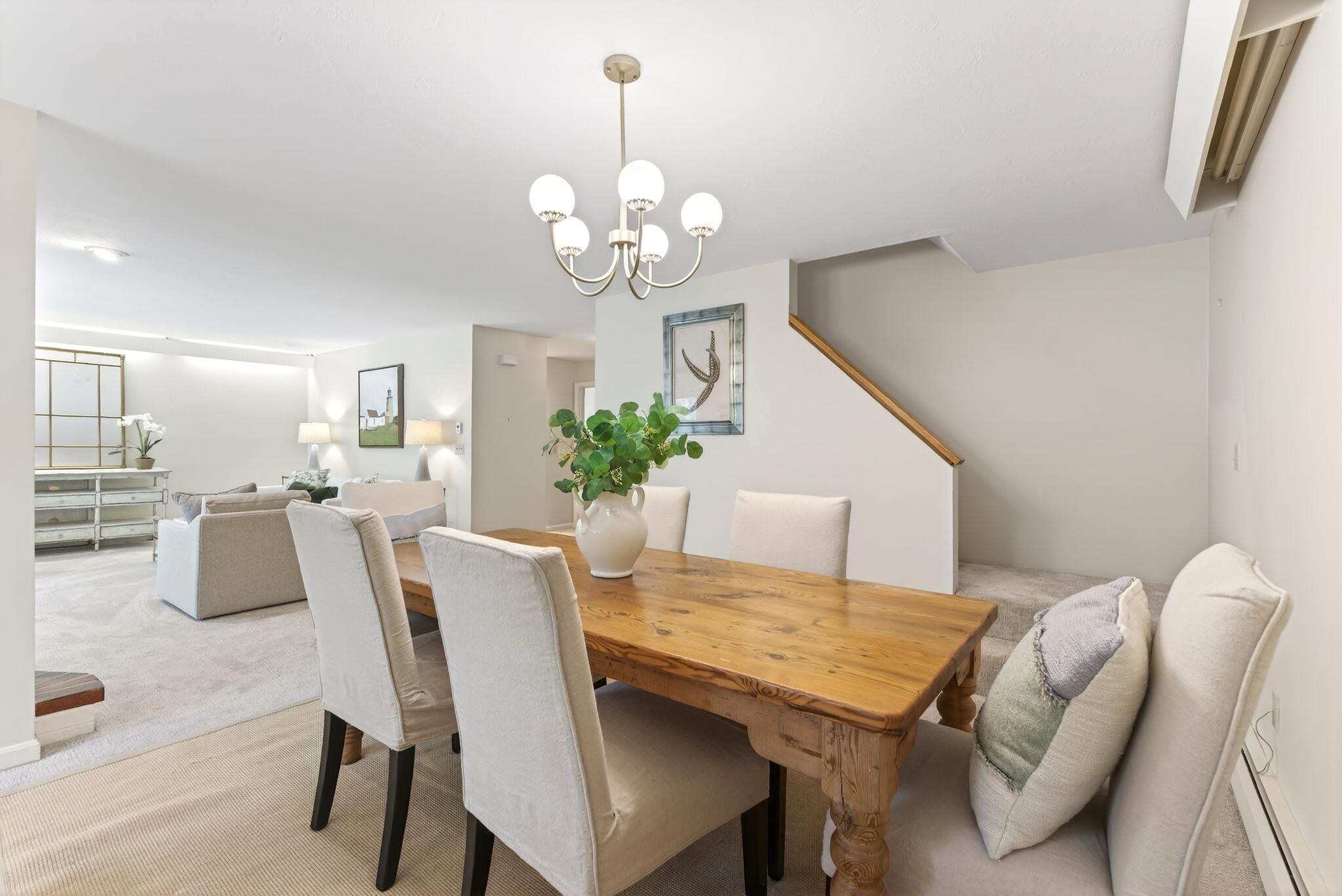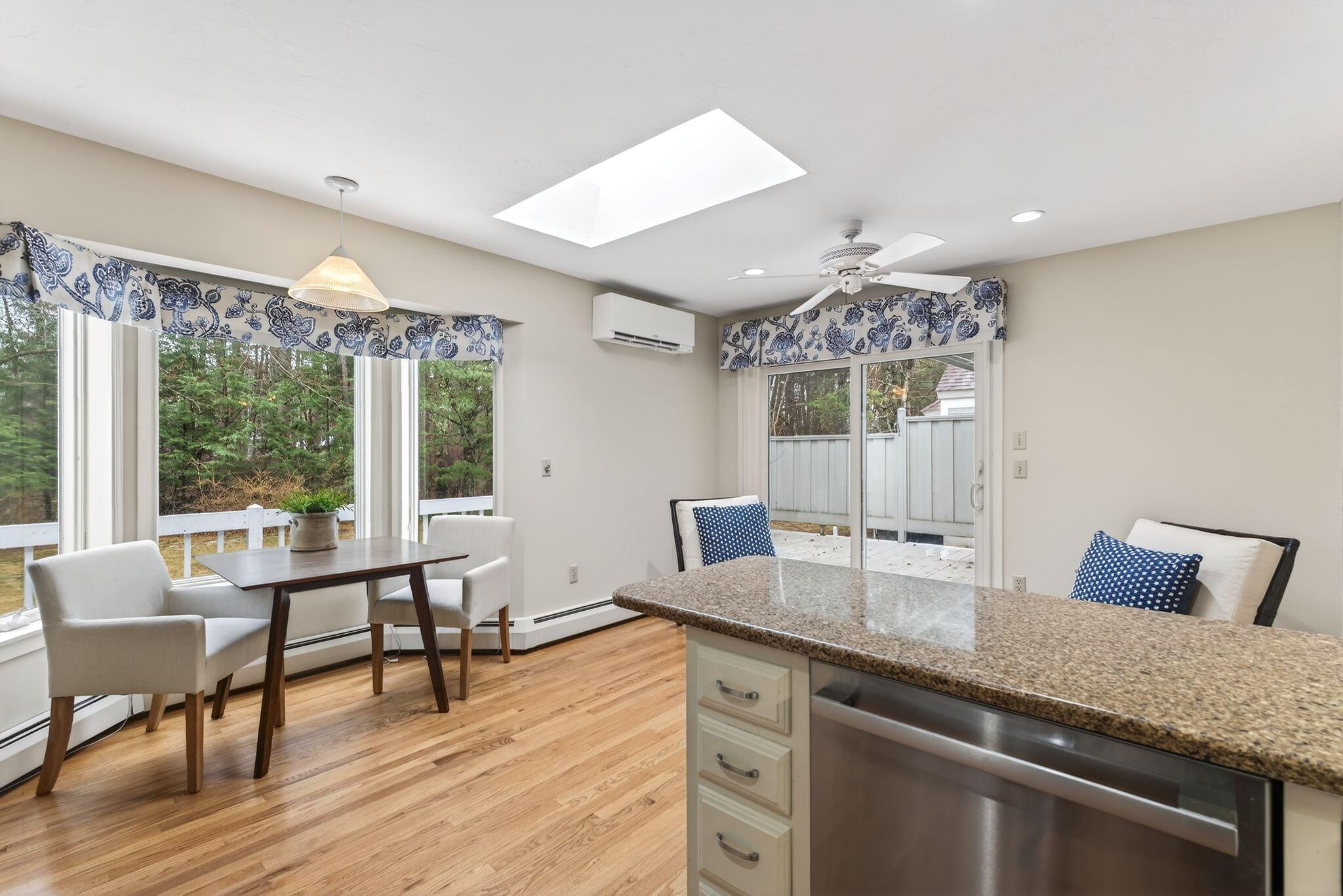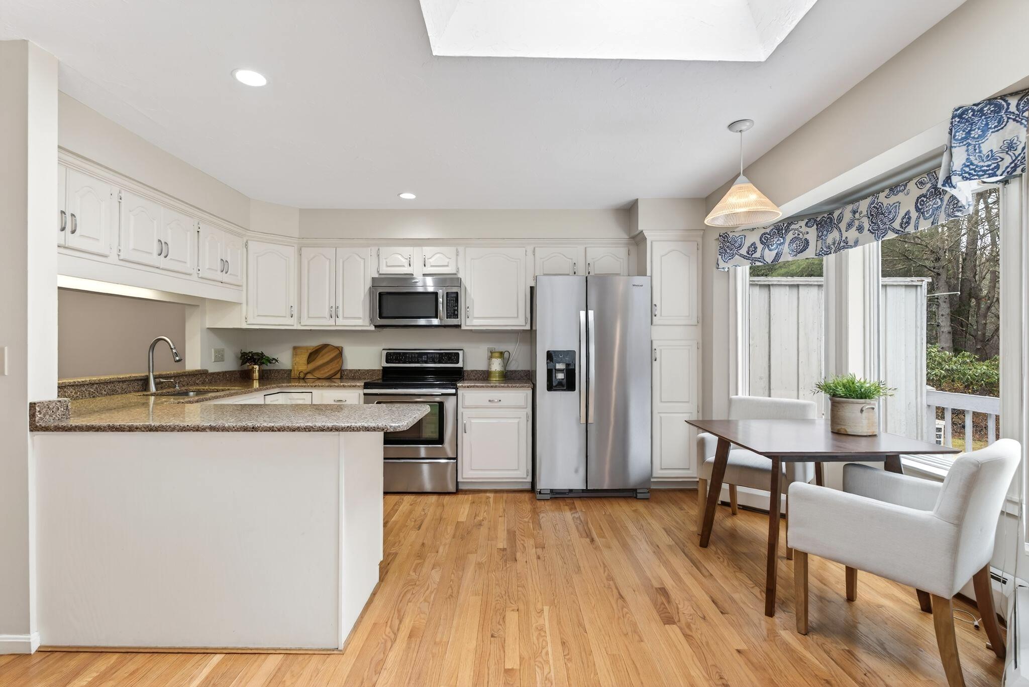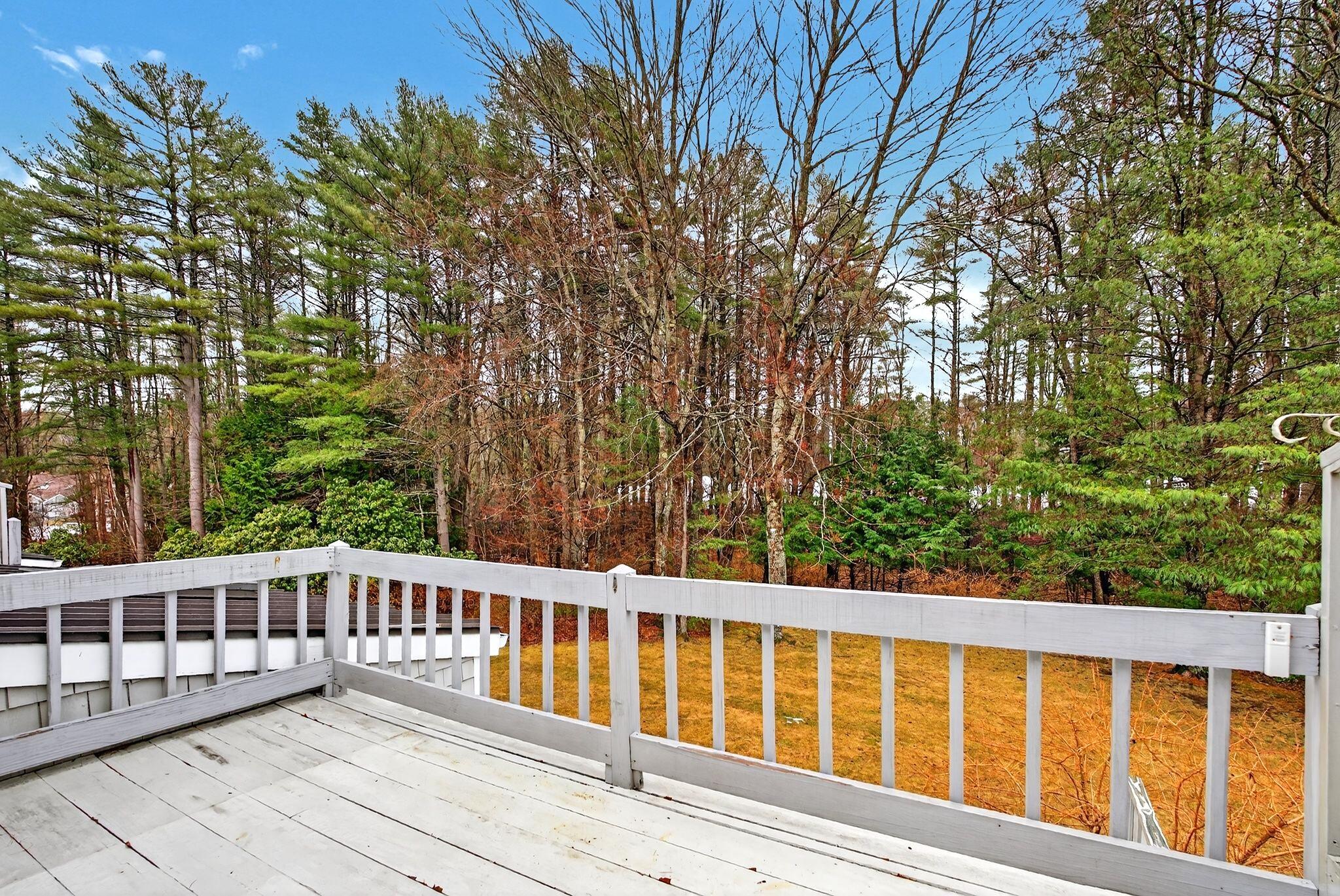 Located in the highly desirable Blueberry Cove community along the Royal River, this spacious condo offers a comfortable layout paired with a peaceful, natural setting. Enjoy views of the surrounding green space from your private deck, with walking trails to the water, as well as access to a pool, clubhouse, and tennis and pickleball courts just moments away. The main level is thoughtfully designed for everyday living, featuring an open layout, a flexible den or office that can easily serve as a bedroom, and a full bath nearby, ideal for guests or convenient single-level living. The living area showcases a wood-burning fireplace and flows seamlessly into the kitchen and dining space, with sliding doors that open to the back deck. Upstairs, the primary suite provides a private retreat complete with its own fireplace and balcony. A second bedroom, full bath with laundry, and an additional flex room offer excellent versatility for a variety of needs. Efficient heat pumps ensure year-round comfort, while the attached heated garage adds everyday convenience. All of this is just minutes from Yarmouth Village and a short drive to Portland.