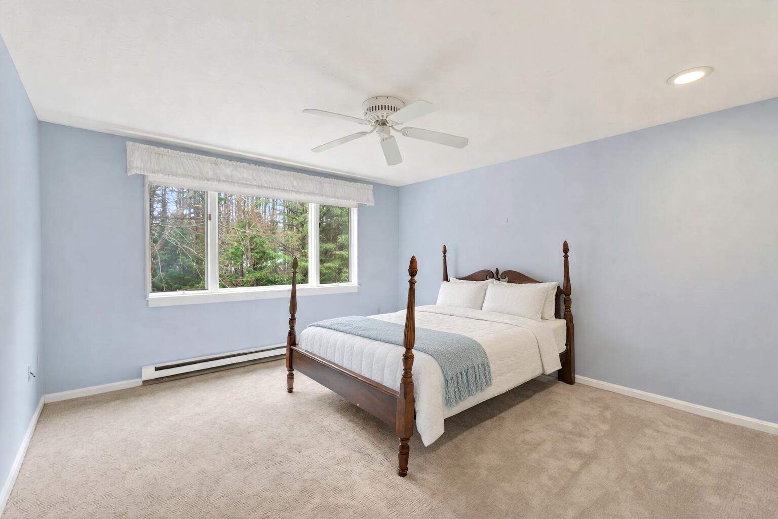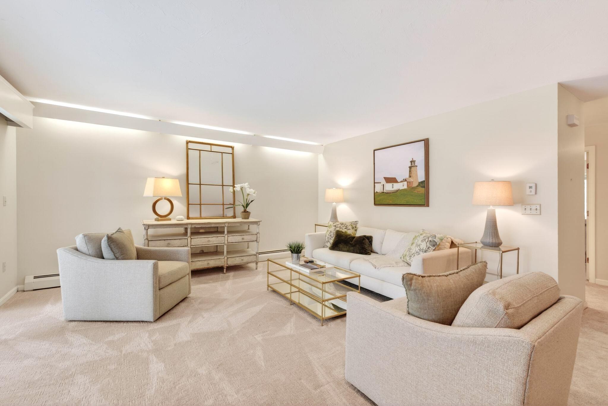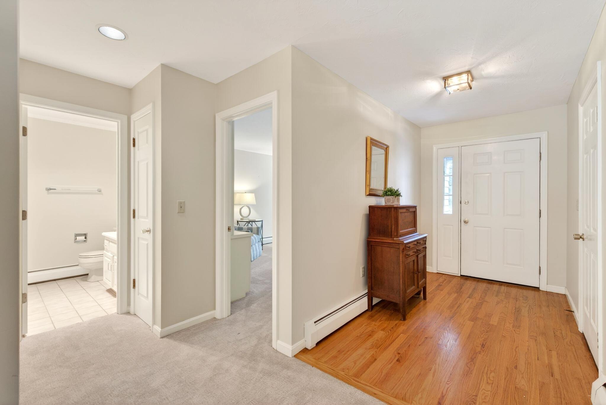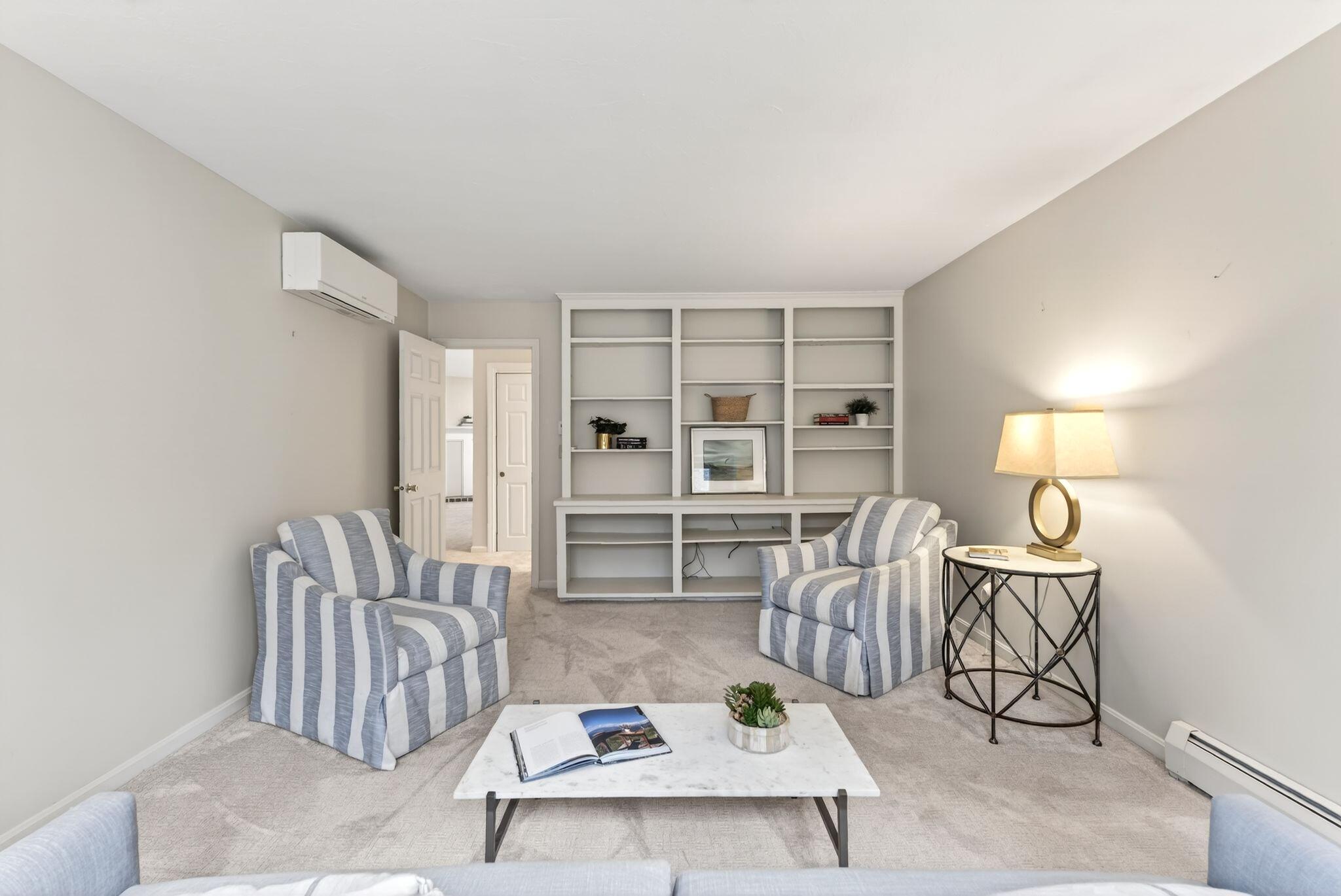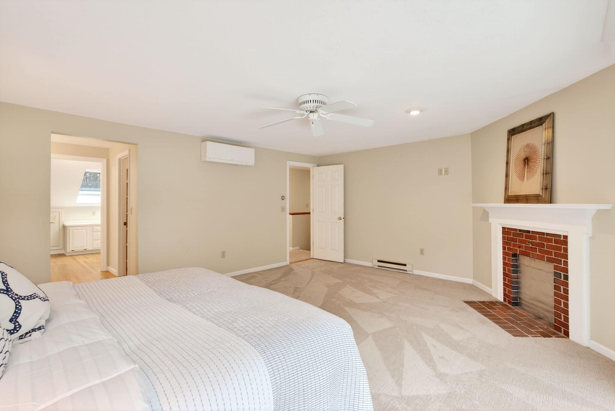 Located in the highly desirable Blueberry Cove community along the Royal River, this spacious condo offers a comfortable layout paired with a peaceful, natural setting. Enjoy views of the surrounding green space from your private deck, with walking trails to the water, as well as access to a pool, clubhouse, and tennis and pickleball courts just moments away. The main level is thoughtfully designed for everyday living, featuring an open layout, a flexible den or office that can easily serve as a bedroom, and a full bath nearby, ideal for guests or convenient single-level living. The living area showcases a wood-burning fireplace and flows seamlessly into the kitchen and dining space, with sliding doors that open to the back deck. Upstairs, the primary suite provides a private retreat complete with its own fireplace and balcony. A second bedroom, full bath with laundry, and an additional flex room offer excellent versatility for a variety of needs. Efficient heat pumps ensure year-round comfort, while the attached heated garage adds everyday convenience. All of this is just minutes from Yarmouth Village and a short drive to Portland.