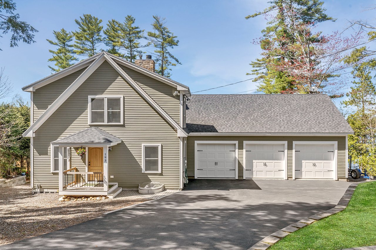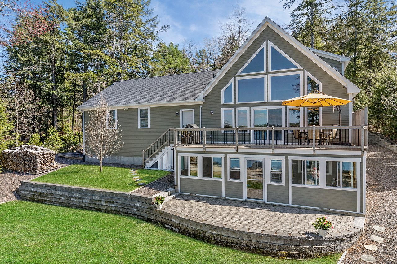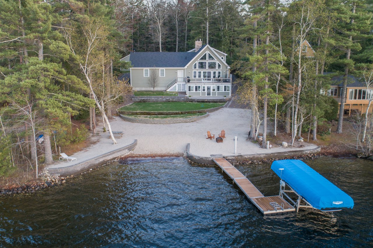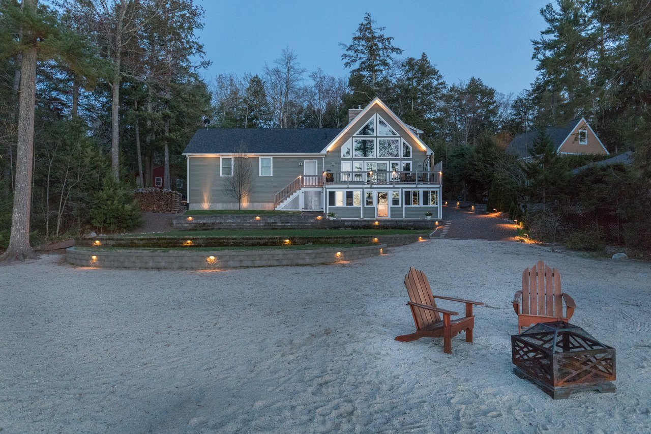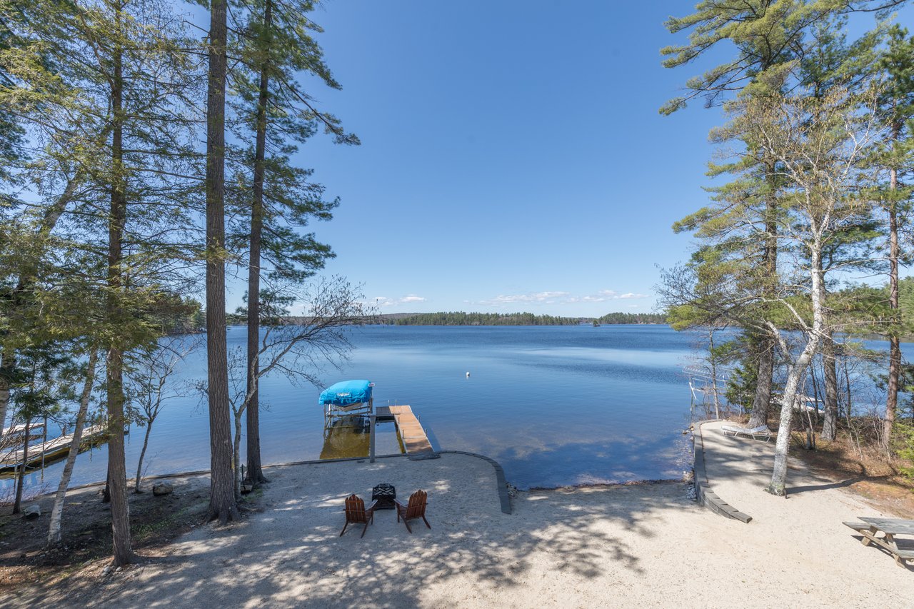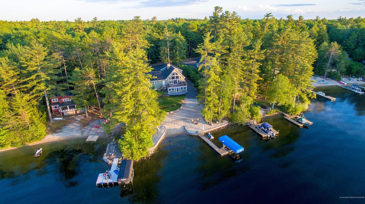 Thoughtfully designed & built, this waterfront retreat features 100 ft of deep frontage on Little Sebago! Inside you are welcomed by hardwood flrs & sweeping lake views. The open concept kitchen boasts lovely granite counters & a spacious island w/room for seating. The soaring stone fireplace w/wood stove insert is the hallmark of the great room. The 2nd lvl offers a loft w/water views, laundry & master suite w/cathedral ceilings, walk-in closet, custom walk-in tile shower & double vanities. Plenty of space for expansion over the garage or potential guest quarters in the detached garage. This like new home leaves little to be desired w/energy efficient Rinnai & Fujitsu heat & cooling systems, modern security system & other smart home features. Additional amenities include 3 season room w/hot tub, bonus room w/wood stove & wet bar, & office w/murphy bed & desk. Beautiful hardscaping welcomes you down to the waters edge w/ dock & custom outdoor lighting creates a wonderful ambiance!