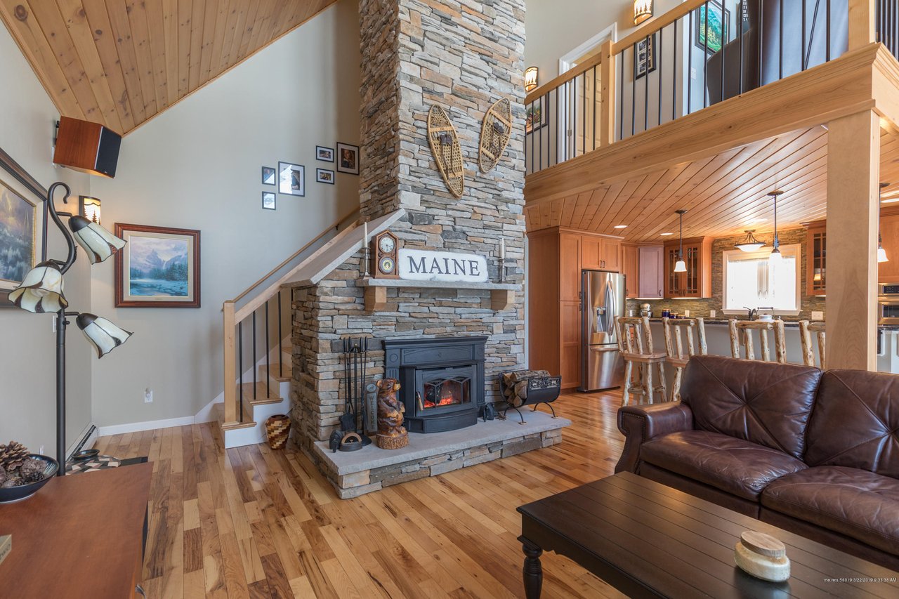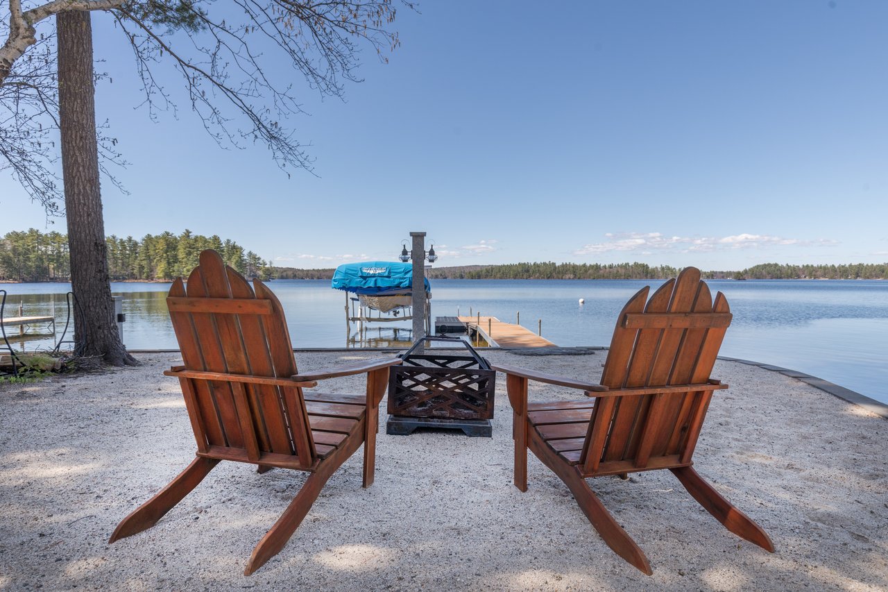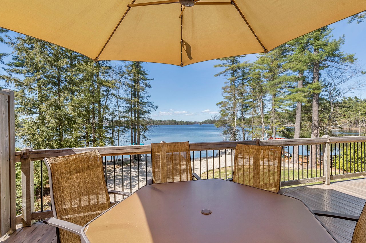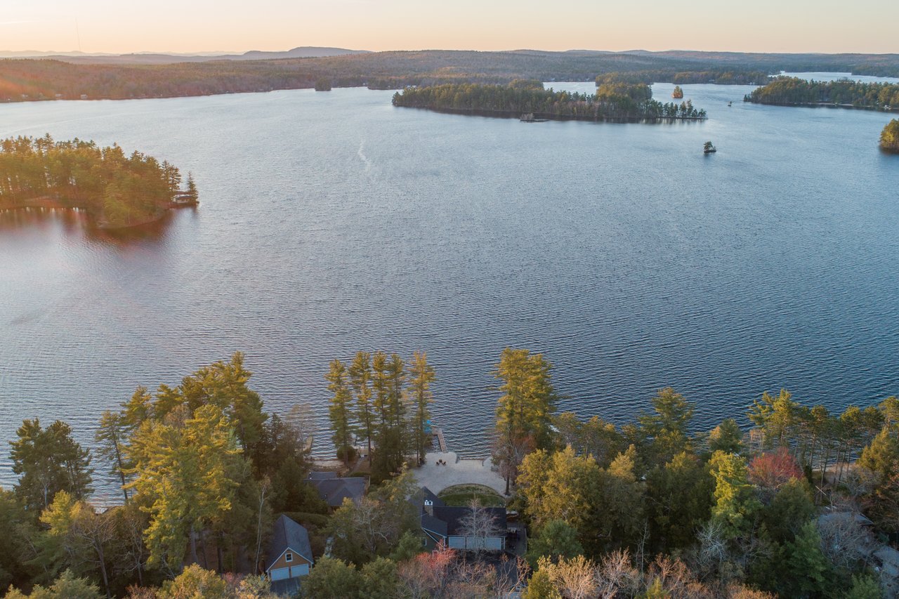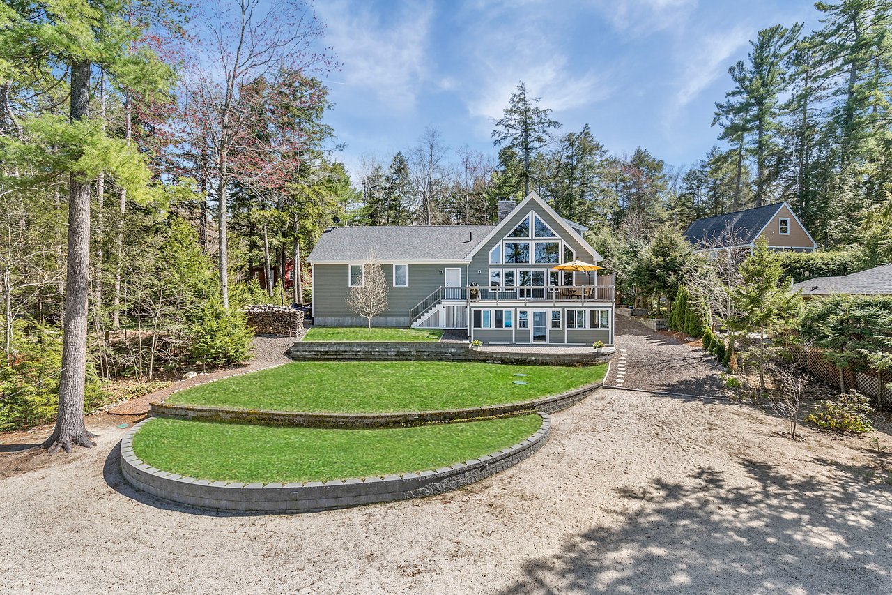 Thoughtfully designed & built, this waterfront retreat features 100 ft of deep frontage on Little Sebago! Inside you are welcomed by hardwood flrs & sweeping lake views. The open concept kitchen boasts lovely granite counters & a spacious island w/room for seating. The soaring stone fireplace w/wood stove insert is the hallmark of the great room. The 2nd lvl offers a loft w/water views, laundry & master suite w/cathedral ceilings, walk-in closet, custom walk-in tile shower & double vanities. Plenty of space for expansion over the garage or potential guest quarters in the detached garage. This like new home leaves little to be desired w/energy efficient Rinnai & Fujitsu heat & cooling systems, modern security system & other smart home features. Additional amenities include 3 season room w/hot tub, bonus room w/wood stove & wet bar, & office w/murphy bed & desk. Beautiful hardscaping welcomes you down to the waters edge w/ dock & custom outdoor lighting creates a wonderful ambiance!