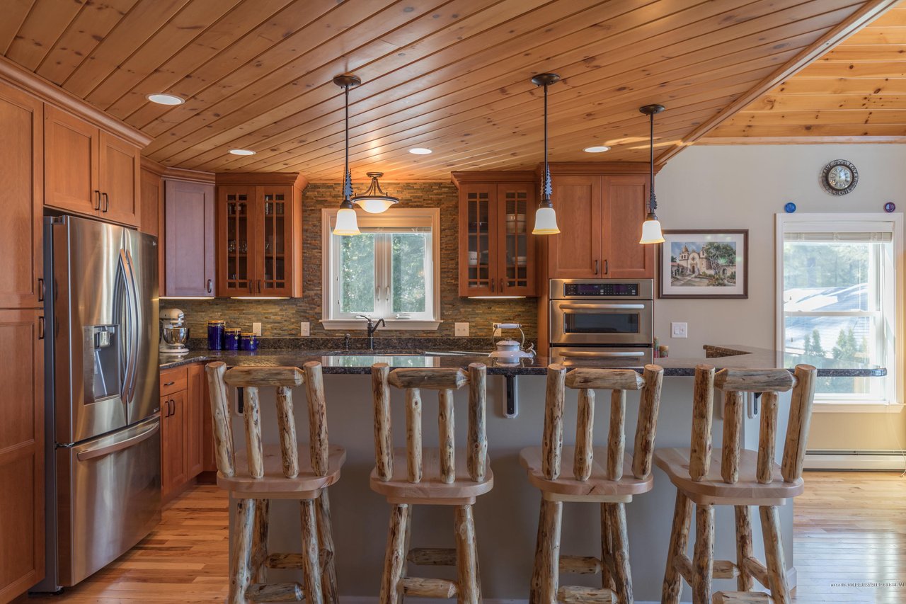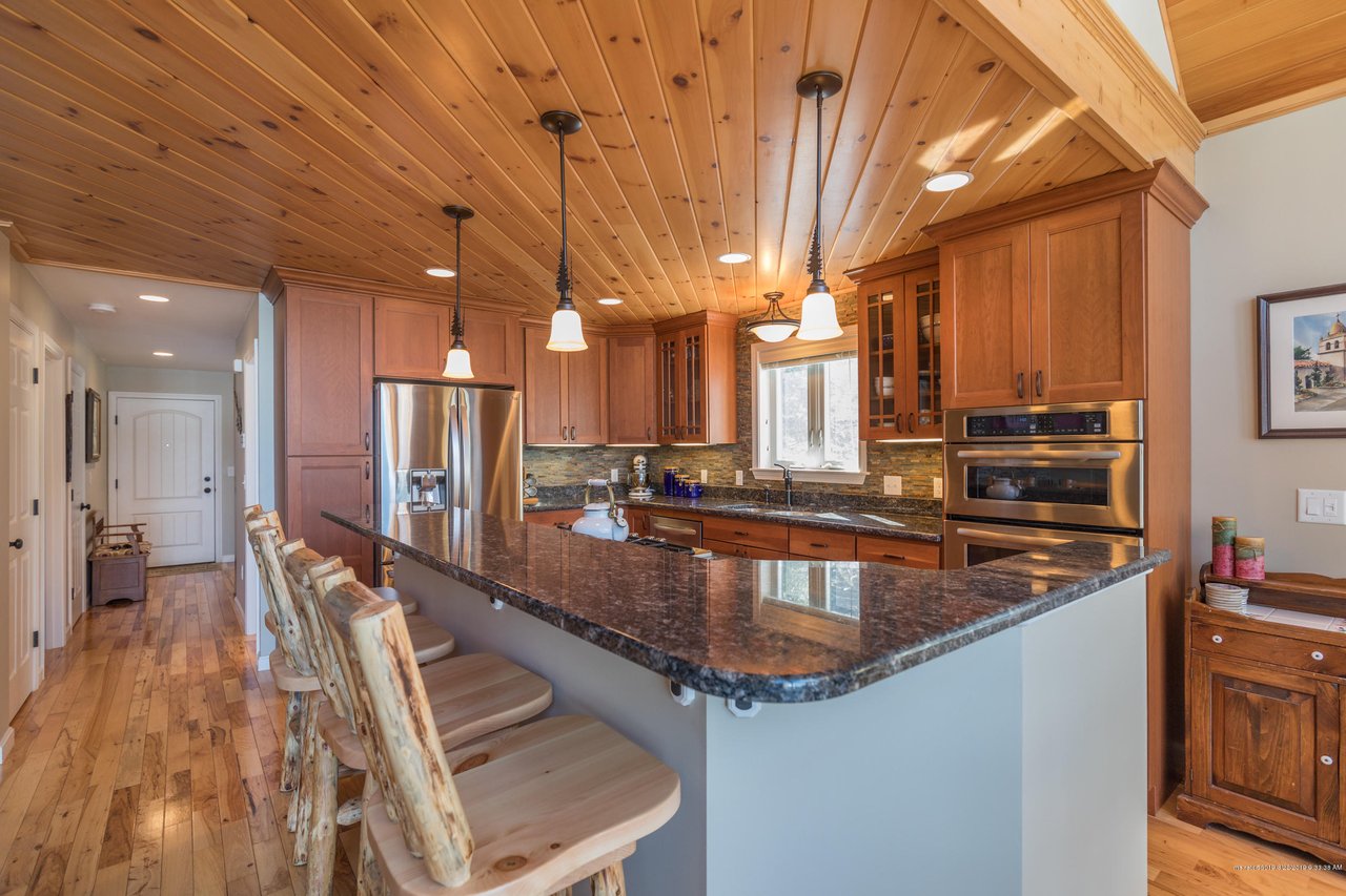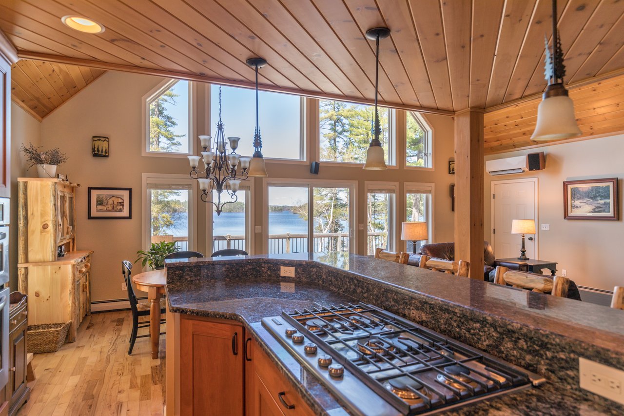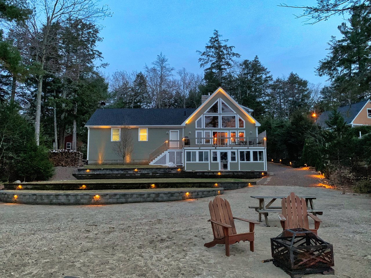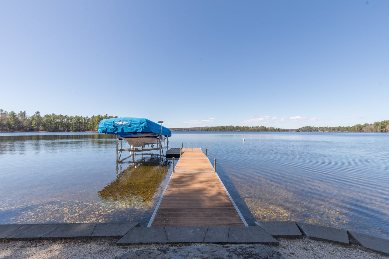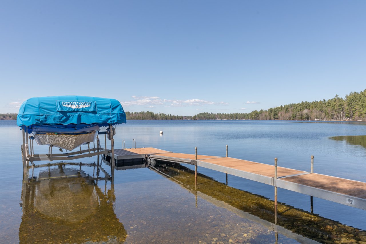 Thoughtfully designed & built, this waterfront retreat features 100 ft of deep frontage on Little Sebago! Inside you are welcomed by hardwood flrs & sweeping lake views. The open concept kitchen boasts lovely granite counters & a spacious island w/room for seating. The soaring stone fireplace w/wood stove insert is the hallmark of the great room. The 2nd lvl offers a loft w/water views, laundry & master suite w/cathedral ceilings, walk-in closet, custom walk-in tile shower & double vanities. Plenty of space for expansion over the garage or potential guest quarters in the detached garage. This like new home leaves little to be desired w/energy efficient Rinnai & Fujitsu heat & cooling systems, modern security system & other smart home features. Additional amenities include 3 season room w/hot tub, bonus room w/wood stove & wet bar, & office w/murphy bed & desk. Beautiful hardscaping welcomes you down to the waters edge w/ dock & custom outdoor lighting creates a wonderful ambiance!