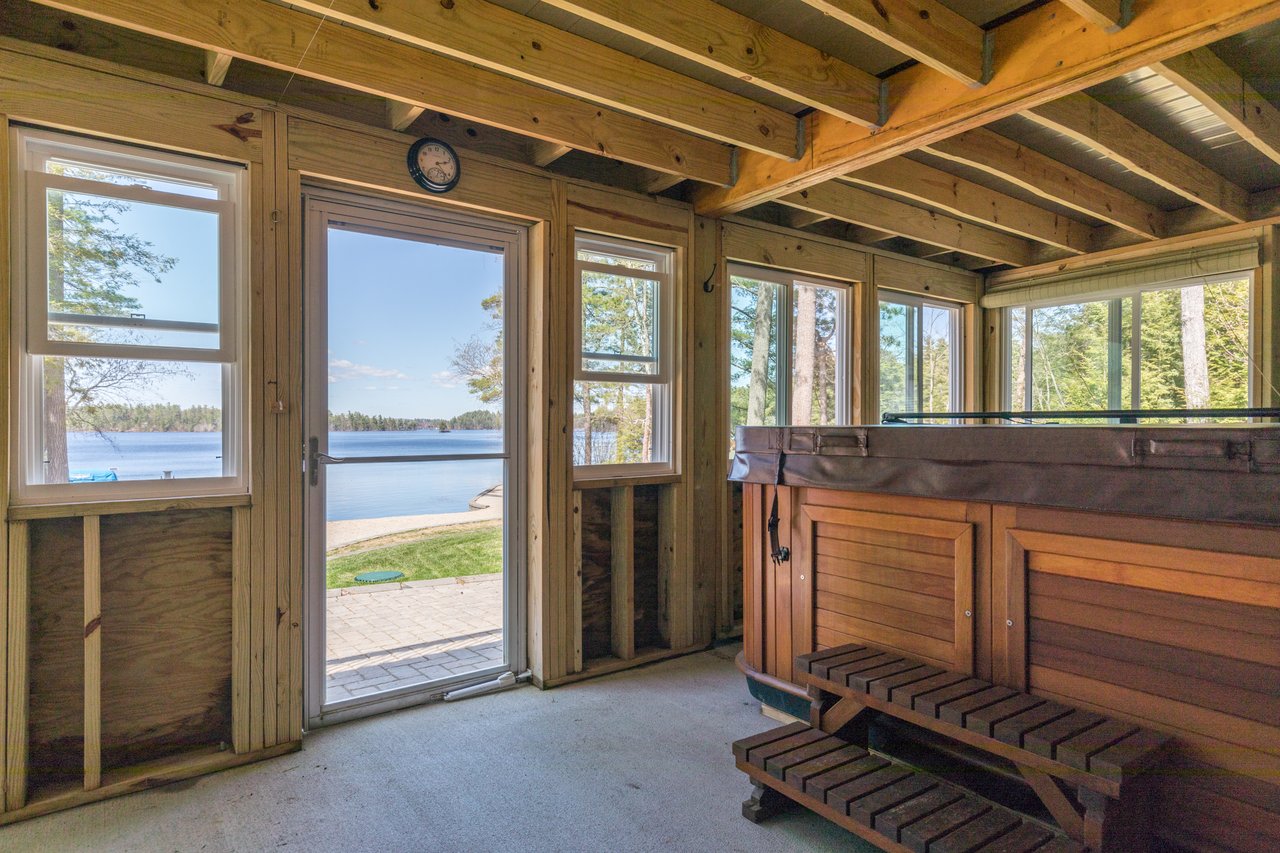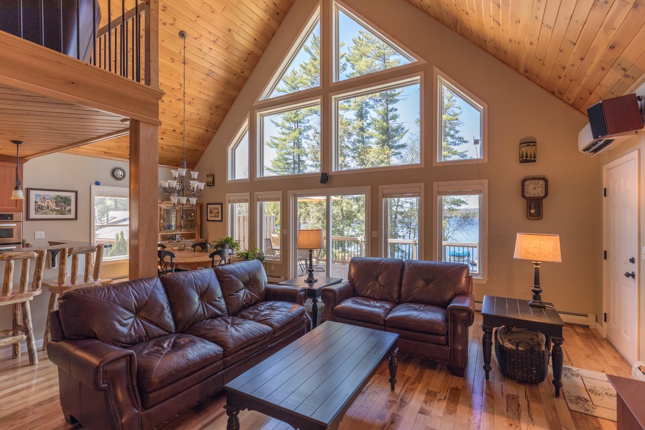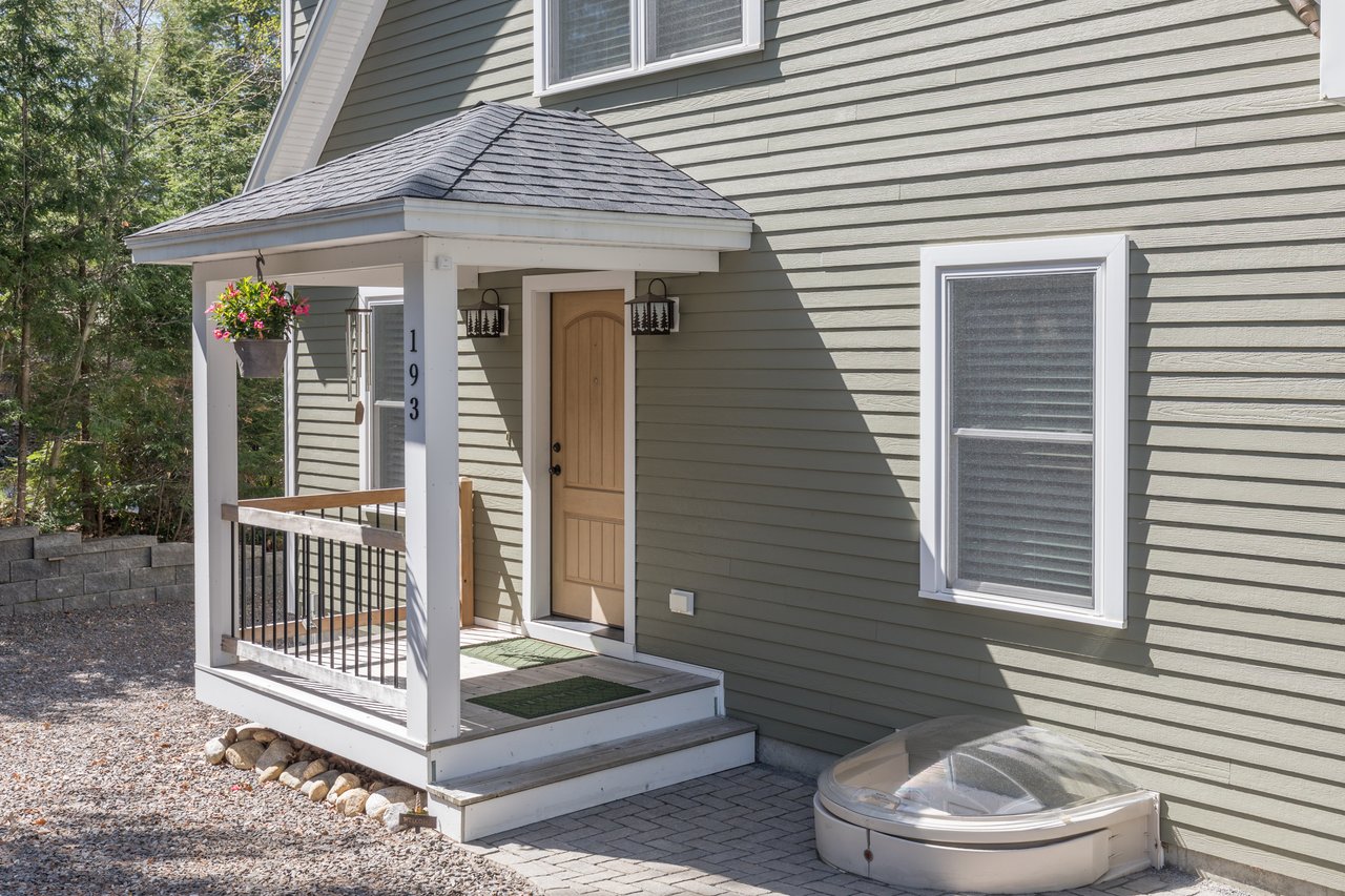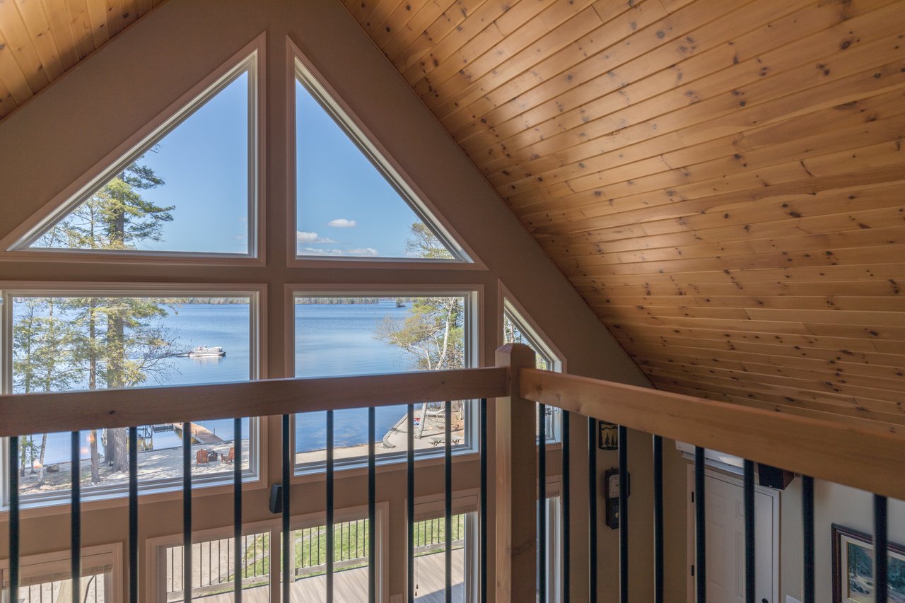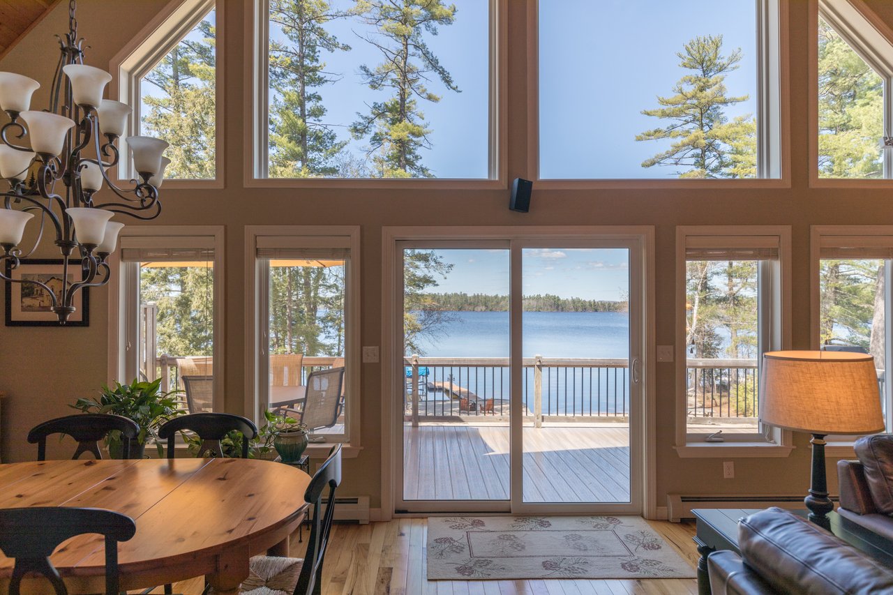 Thoughtfully designed & built, this waterfront retreat features 100 ft of deep frontage on Little Sebago! Inside you are welcomed by hardwood flrs & sweeping lake views. The open concept kitchen boasts lovely granite counters & a spacious island w/room for seating. The soaring stone fireplace w/wood stove insert is the hallmark of the great room. The 2nd lvl offers a loft w/water views, laundry & master suite w/cathedral ceilings, walk-in closet, custom walk-in tile shower & double vanities. Plenty of space for expansion over the garage or potential guest quarters in the detached garage. This like new home leaves little to be desired w/energy efficient Rinnai & Fujitsu heat & cooling systems, modern security system & other smart home features. Additional amenities include 3 season room w/hot tub, bonus room w/wood stove & wet bar, & office w/murphy bed & desk. Beautiful hardscaping welcomes you down to the waters edge w/ dock & custom outdoor lighting creates a wonderful ambiance!