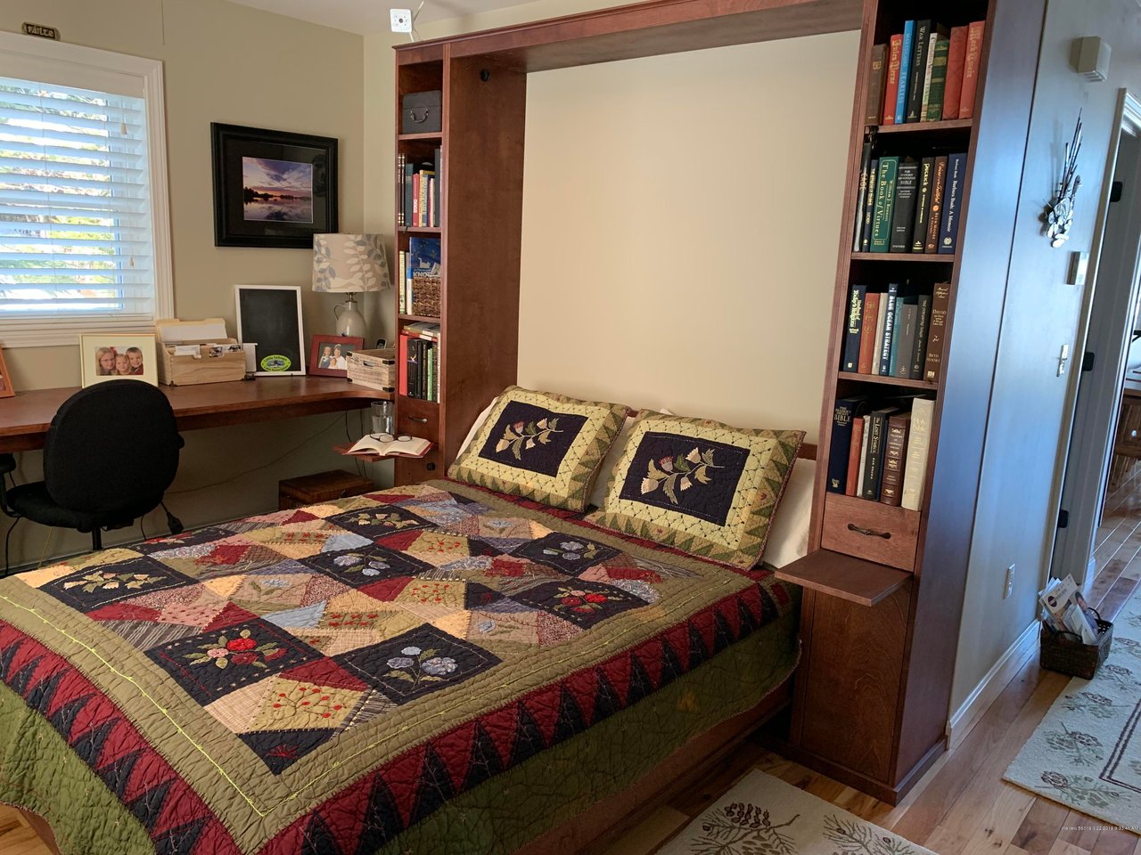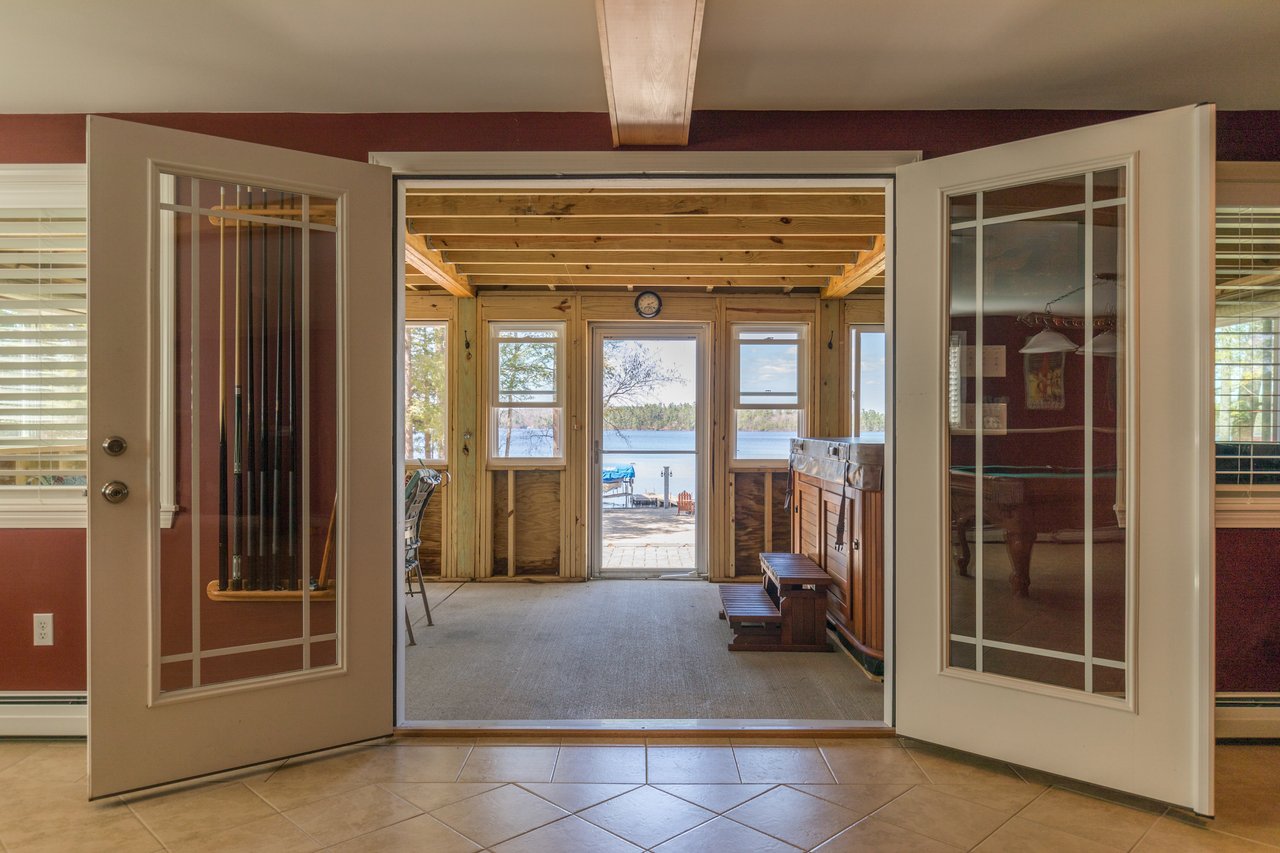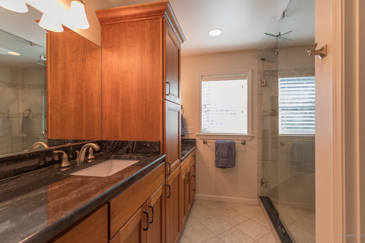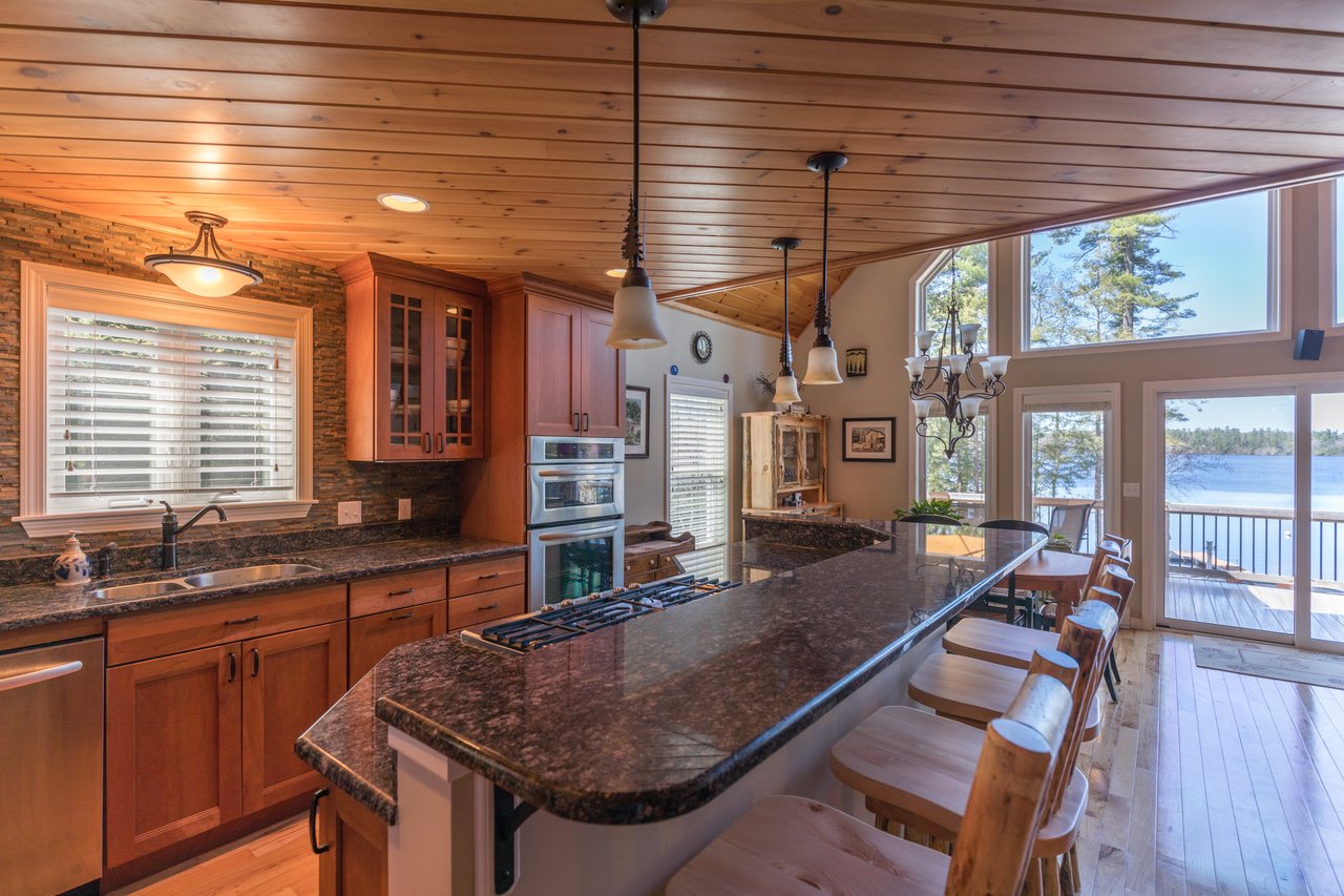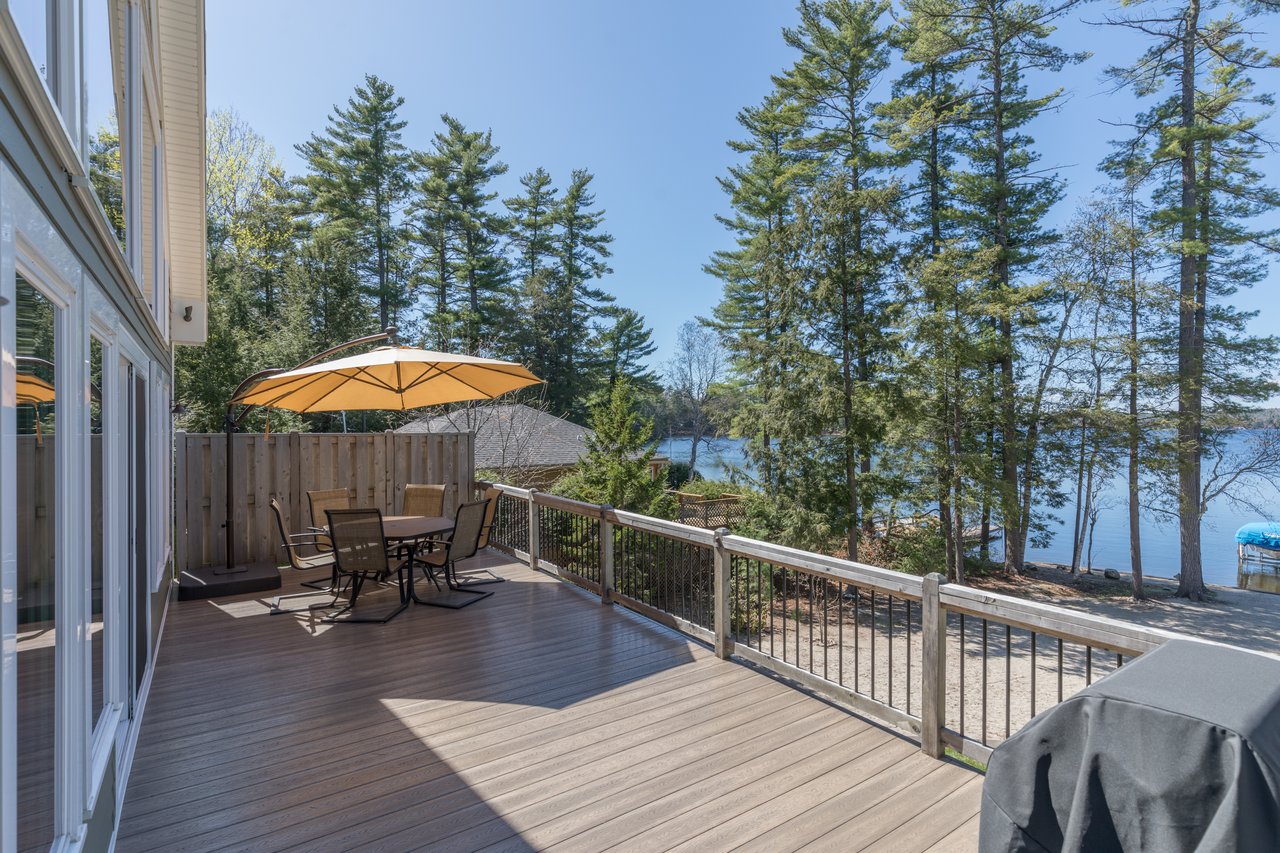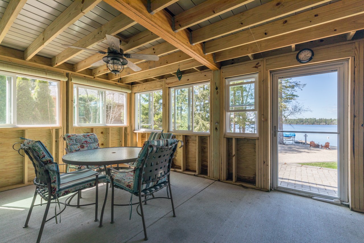 Thoughtfully designed & built, this waterfront retreat features 100 ft of deep frontage on Little Sebago! Inside you are welcomed by hardwood flrs & sweeping lake views. The open concept kitchen boasts lovely granite counters & a spacious island w/room for seating. The soaring stone fireplace w/wood stove insert is the hallmark of the great room. The 2nd lvl offers a loft w/water views, laundry & master suite w/cathedral ceilings, walk-in closet, custom walk-in tile shower & double vanities. Plenty of space for expansion over the garage or potential guest quarters in the detached garage. This like new home leaves little to be desired w/energy efficient Rinnai & Fujitsu heat & cooling systems, modern security system & other smart home features. Additional amenities include 3 season room w/hot tub, bonus room w/wood stove & wet bar, & office w/murphy bed & desk. Beautiful hardscaping welcomes you down to the waters edge w/ dock & custom outdoor lighting creates a wonderful ambiance!