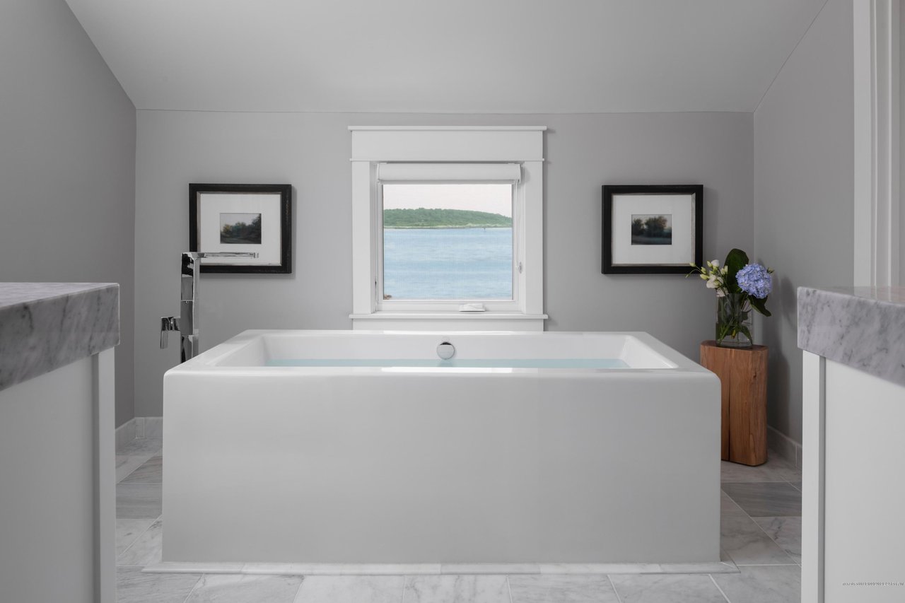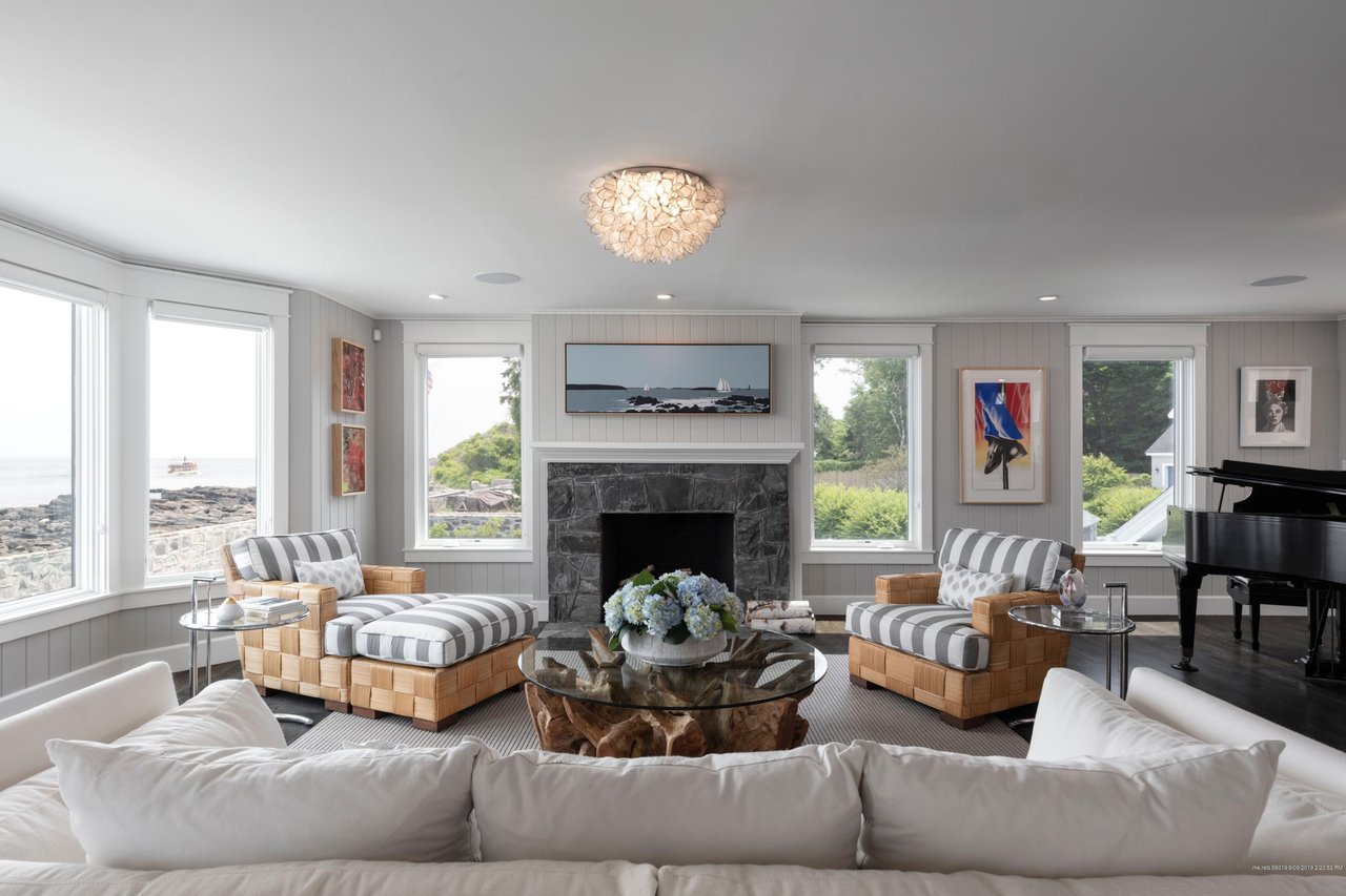 This quintessential coastal Maine property recently underwent a complete renovation and has been redesigned with the utmost in quality and style. Views of the rocky shoreline and crashing surf define the newly remodeled open concept layout. The gourmet kitchen is outfitted with the finest in finishes and appliances including a Wolf range and custom Sub-Zero refrigerator. Set to the backdrop of the ever-changing ocean views, the front-to-back living room is comfortable, yet elegant, with a welcoming stone fireplace. The well-executed master suite provides captivating water views while complemented by a gas fireplace, walk-in closet, and luxurious Carrara marble bath. Two additional en-suite bedrooms are perfectly designed to provide ample space and privacy. Extensive landscaping and hardscaping seamlessly transition to the outdoor living space, allowing for panoramic views of the Portland shipping channel, Ram Island, Halfway Rock, and the open ocean.