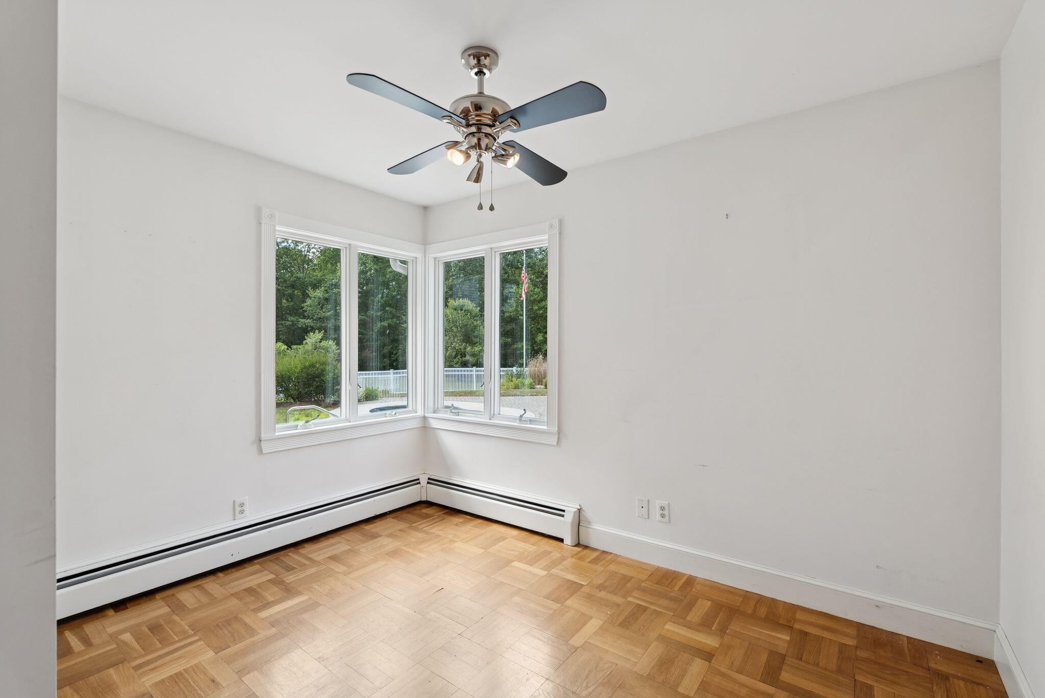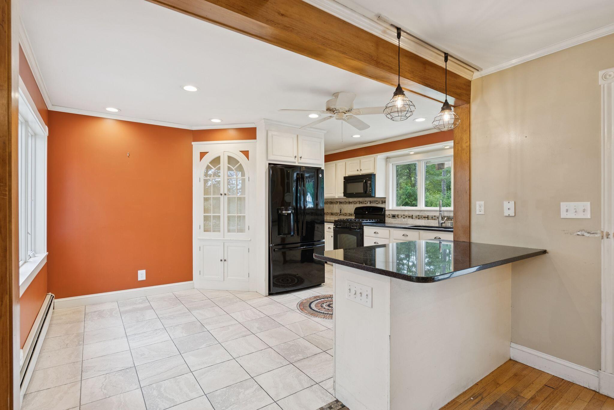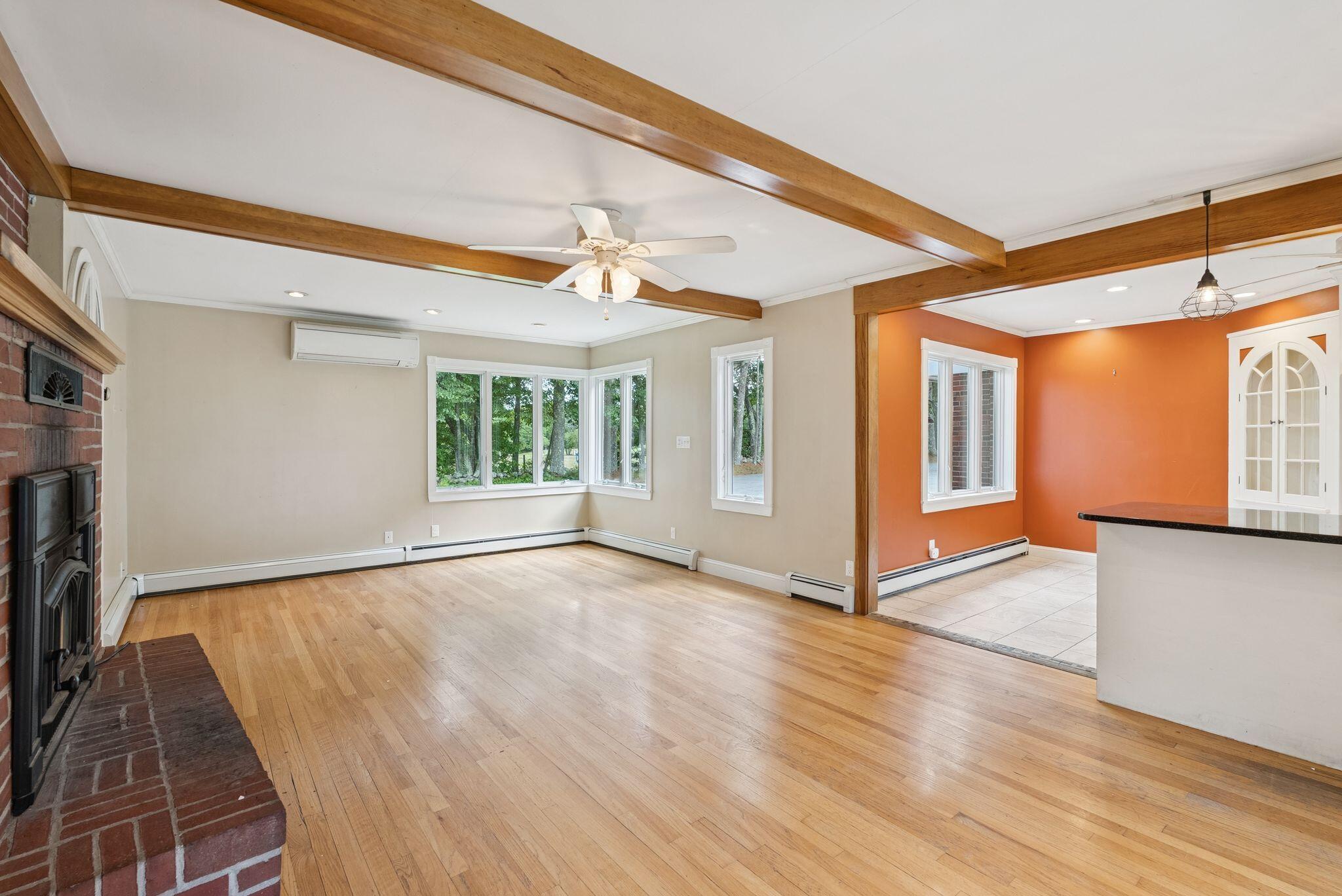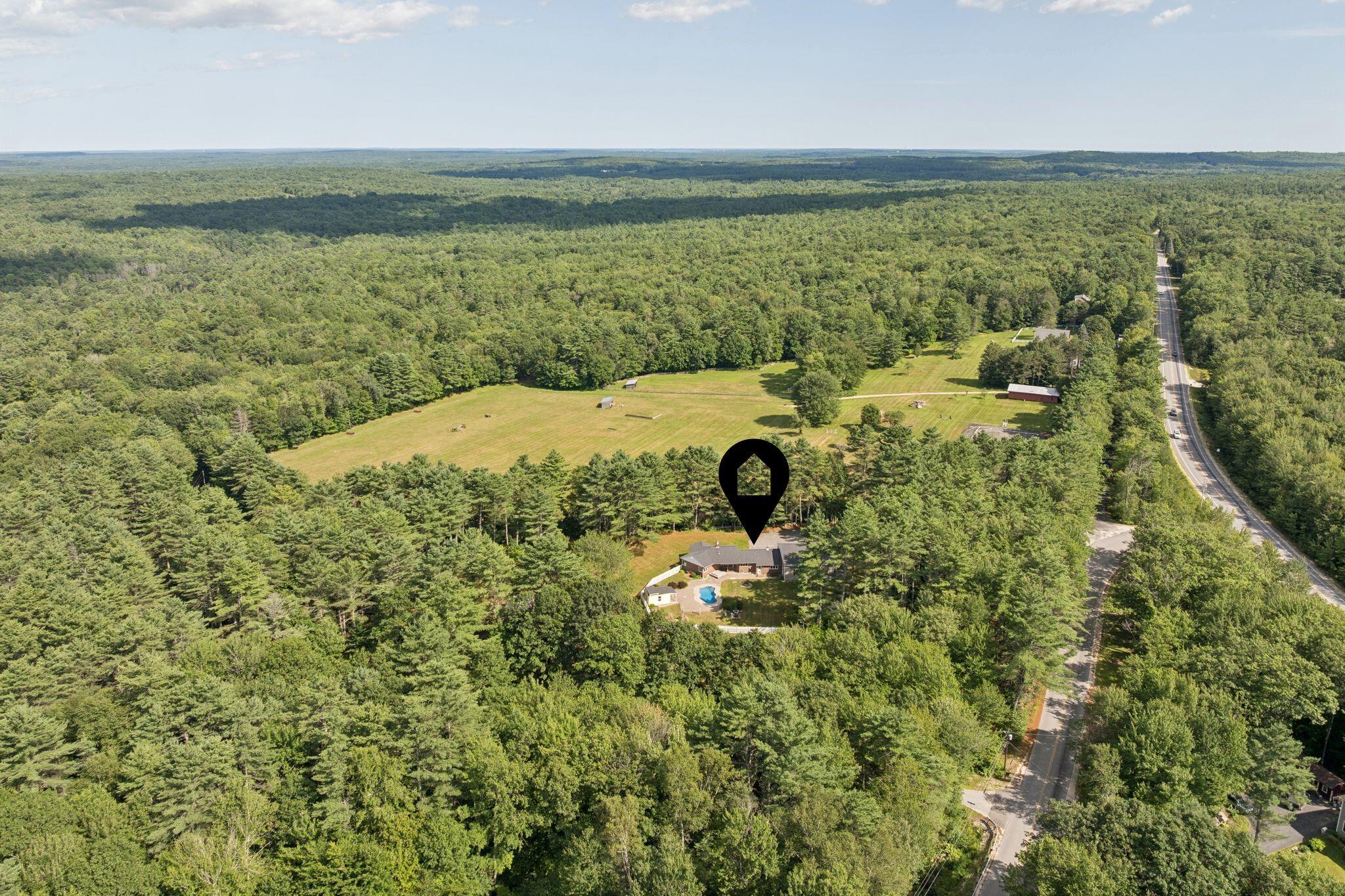 Set on a private and expansive 3 acre lot this home is the perfect location for hobbyists or professionals alike, featuring abundant storage for machinery and ample workshop space to bring your projects to life in the comfort of your own home. This charming ranch style property offers 1,708 square feet of main-level living, featuring 3 bedrooms, 1 full bath, and 1 half bath all designed for relaxed daily living. Enter into the inviting eat-in kitchen with tile flooring and a breakfast nook to start your morning off right, and just down the hallway, you'll find a conveniently located laundry area that adds to the home's practical flow. Providing a lovely area for quiet evenings or gathering is the spacious living room that offers warmth and character with a wood stove and built-in shelving. The primary bedroom includes a generous walk-in closet, while two additional bedrooms provide flexible space for family, guests, or a home office. Downstairs, the unfinished basement with a second fireplace holds exceptional potential for expanded living space or a recreation area. Outside, enjoy your own beautifully landscaped grounds with an in-ground pool, and a charming cabin with a loft that provides great options as a guest suite, studio, or pool house. The oversized 4-car attached garage with high ceilings and workshop space provides plenty of room for hobbies, storage, or future customization. Whether you're spending time indoors or enjoying the privacy of the outdoor setting, this home offers comfort, space, and potential!