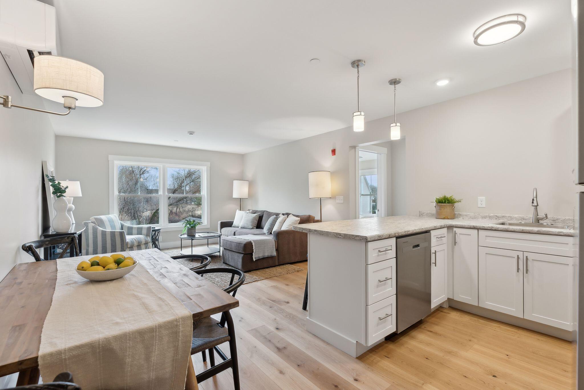 Three Pines Condominiums is a new community of attractive living at attainable prices. With sunny spaces and timeless finishes, these 17 condos are waiting to welcome you home! Just one mile from Downtown Westbrook, the 1 & 2-bedroom units are solidly built, with special consideration taken to ensure sound reduction and energy efficiency. Enjoy daily conveniences like in-unit laundry hook-ups, ample storage spaces, and plenty of parking. This 2-bedroom floor plan greets you with a highly functional mudroom/laundry room. A bright & open living space is large enough for dining and gathering. The lovely bathroom boasts an oversized quartz vanity and linen closet. Two bedrooms offer space for family, guests, or great work from home space. Only 10 minutes to Gorham, USM, Rock Row, the Jetport, and more. Imagine your dream of homeownership coming true - in a brand new building!