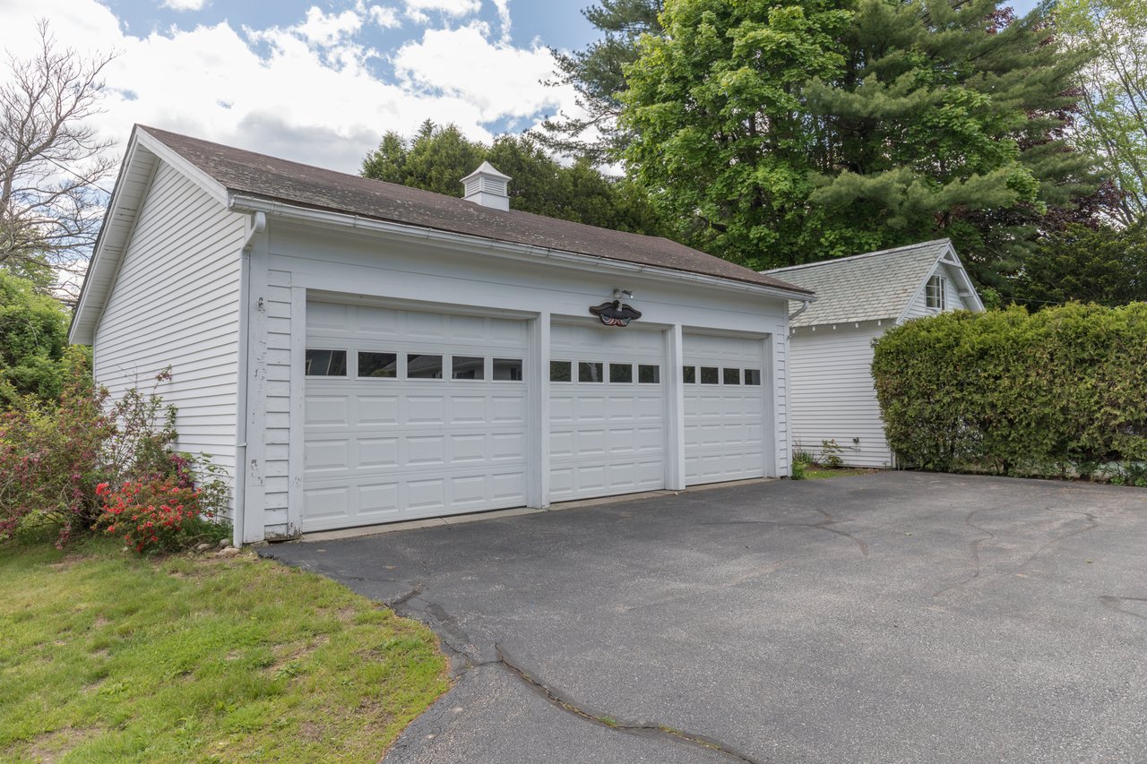 Charming ranch home in a wonderful Yarmouth neighborhood! Set on a corner lot, this 2 bedroom/ 2 bath home boasts hardwood floors featuring a spacious living room with a wood burning fireplace which opens to a dining room with built-ins, and kitchen with white cabinets. 2 bedrooms with closets and a full bath complete the main level. Head down to the basement to a finished bonus room, full bath, laundry room, and plenty of space for all your storage needs! Outside a small, private patio space leads to a heated barn offering an additional 600 sq/ft of space as well as a massive detached 3 car garage. With solid bones this property presents a fabulous opportunity to renovate to your taste in the heart of one of the most desirable communities in Maine. Enjoy the convenience of being .2 miles to Yarmouth Village shops and restaurants as well as the Royal River boat access, marinas, and Yarmouth's award winning schools!