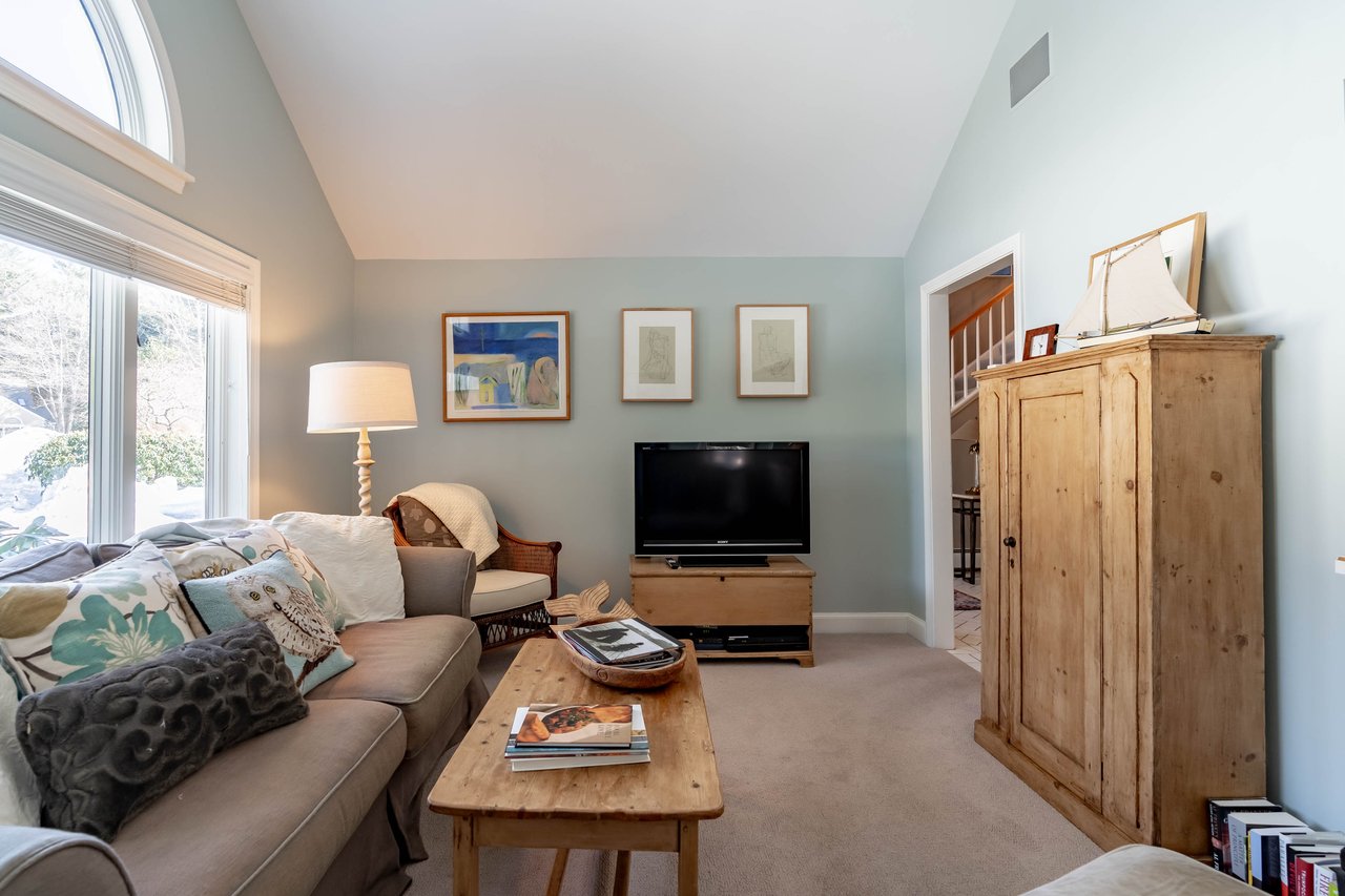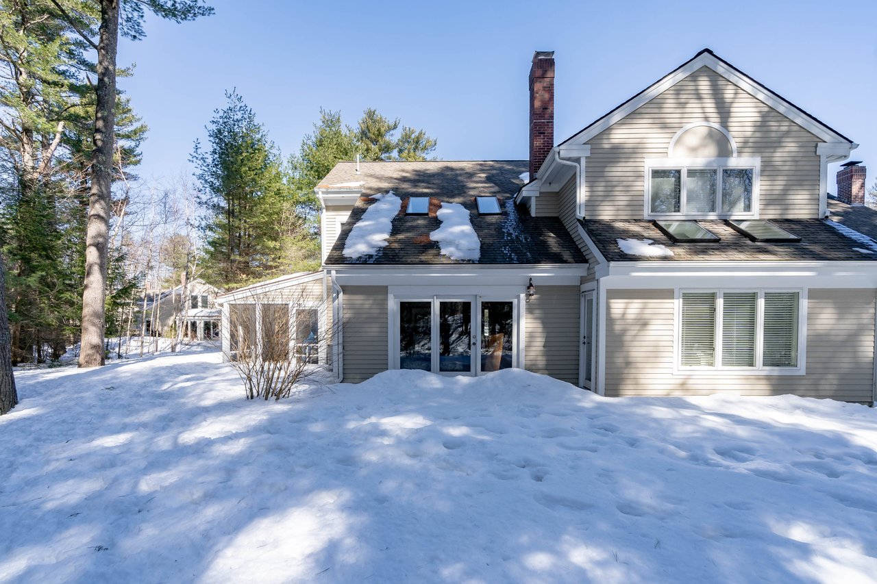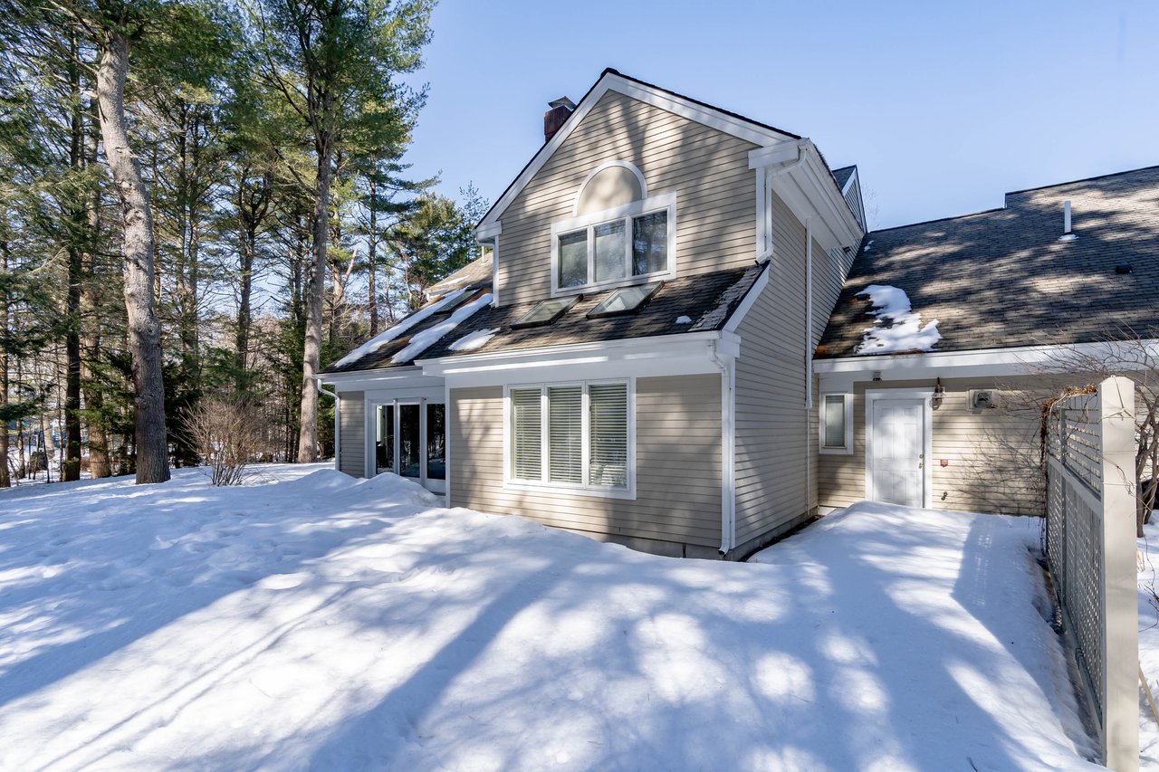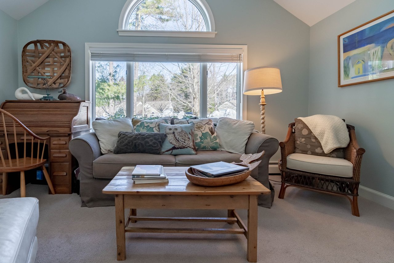 Surrounded by mature trees, this beautifully maintained condo offers 2 bedroom and 2.5 baths. The spacious first floor layout features a lovely master suite with walk-in closet and a fully renovated bath with double vanities and walk-in tile shower. The living room boasts cathedral ceilings, a soaring fireplace and access to the back yard while the cozy first floor den opens to the eat-in kitchen with access to the private screened in patio. The second level offers an open family room, office, an additional bedroom and full bath. The unfinished space above the garage allows for expansion possibilities or easy storage. The association amenities include a pool and tennis courts. Enjoy living just minutes from local beaches, restaurants, Portland and more!