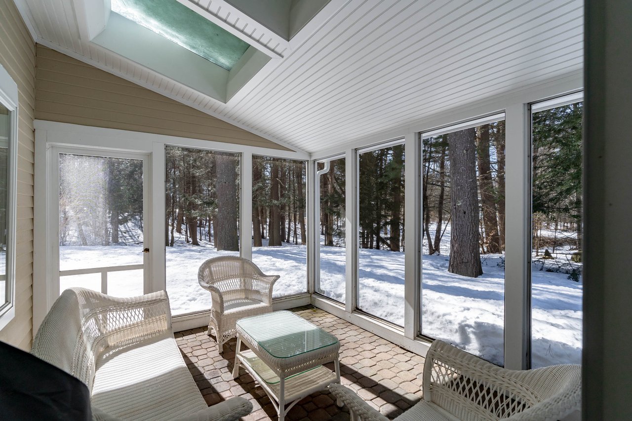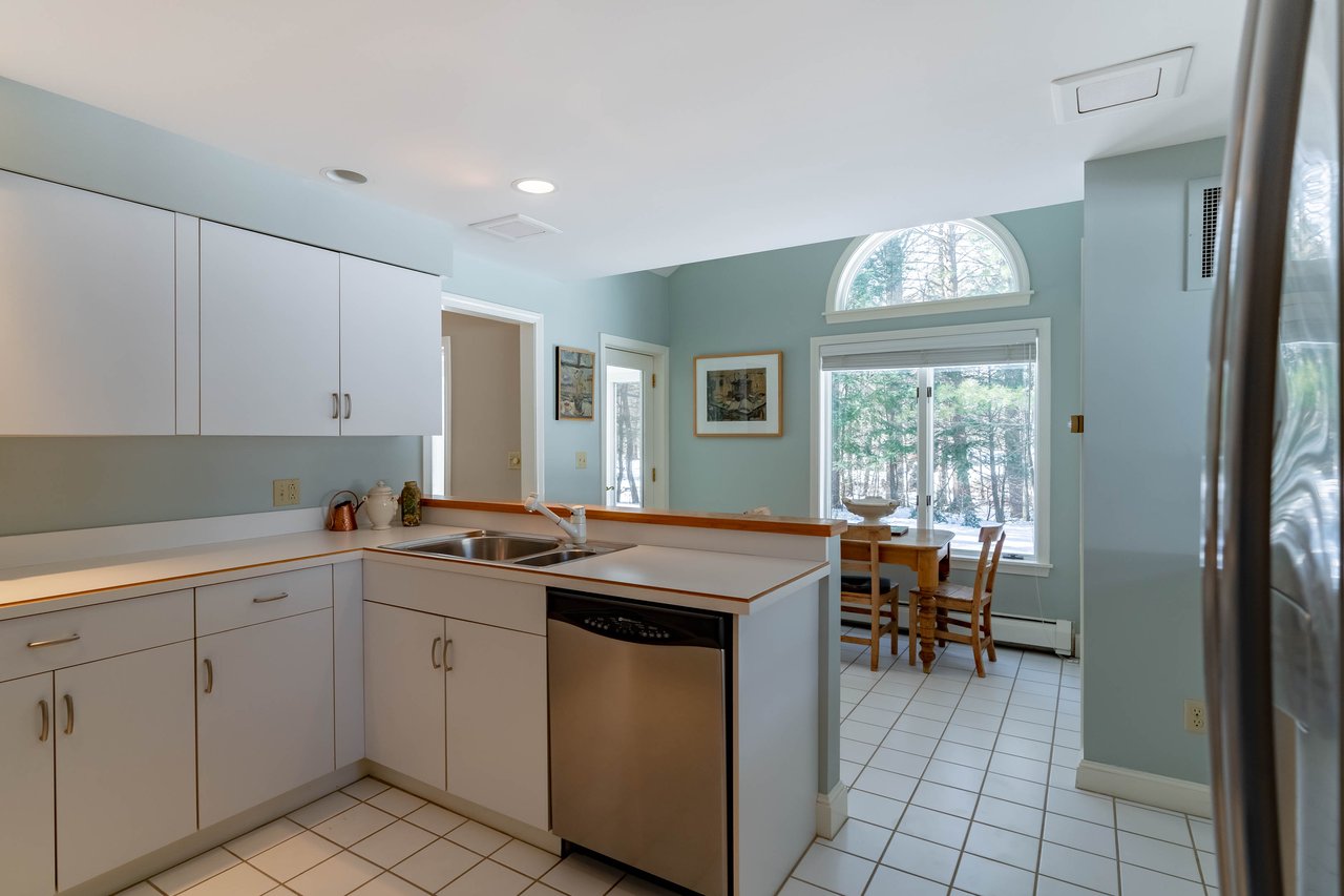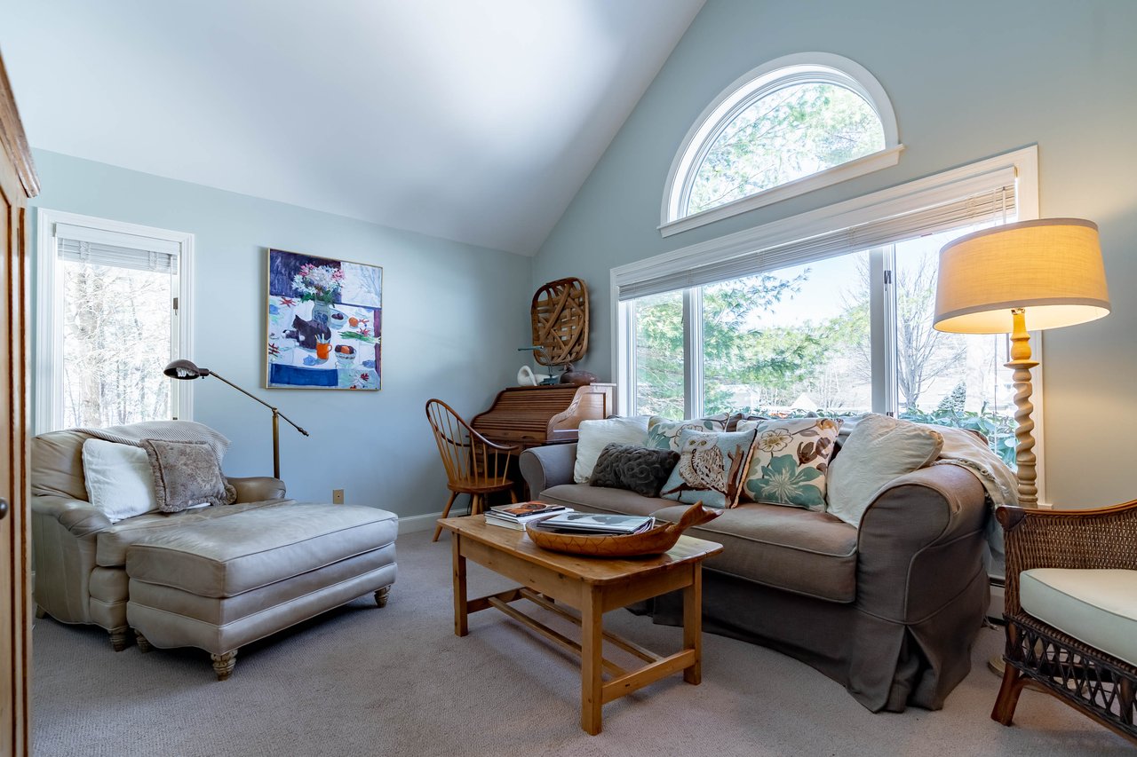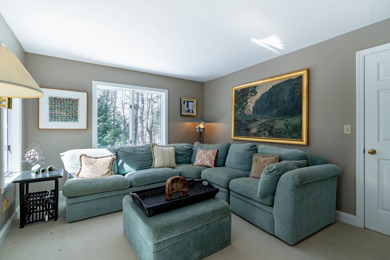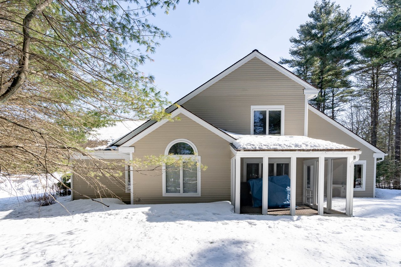 Surrounded by mature trees, this beautifully maintained condo offers 2 bedroom and 2.5 baths. The spacious first floor layout features a lovely master suite with walk-in closet and a fully renovated bath with double vanities and walk-in tile shower. The living room boasts cathedral ceilings, a soaring fireplace and access to the back yard while the cozy first floor den opens to the eat-in kitchen with access to the private screened in patio. The second level offers an open family room, office, an additional bedroom and full bath. The unfinished space above the garage allows for expansion possibilities or easy storage. The association amenities include a pool and tennis courts. Enjoy living just minutes from local beaches, restaurants, Portland and more!