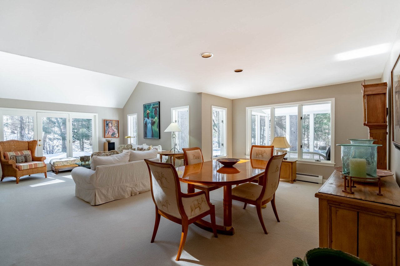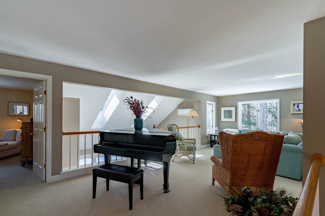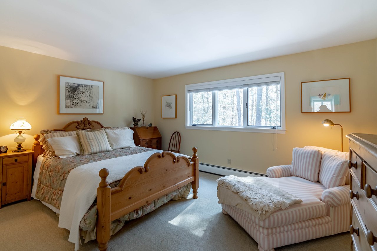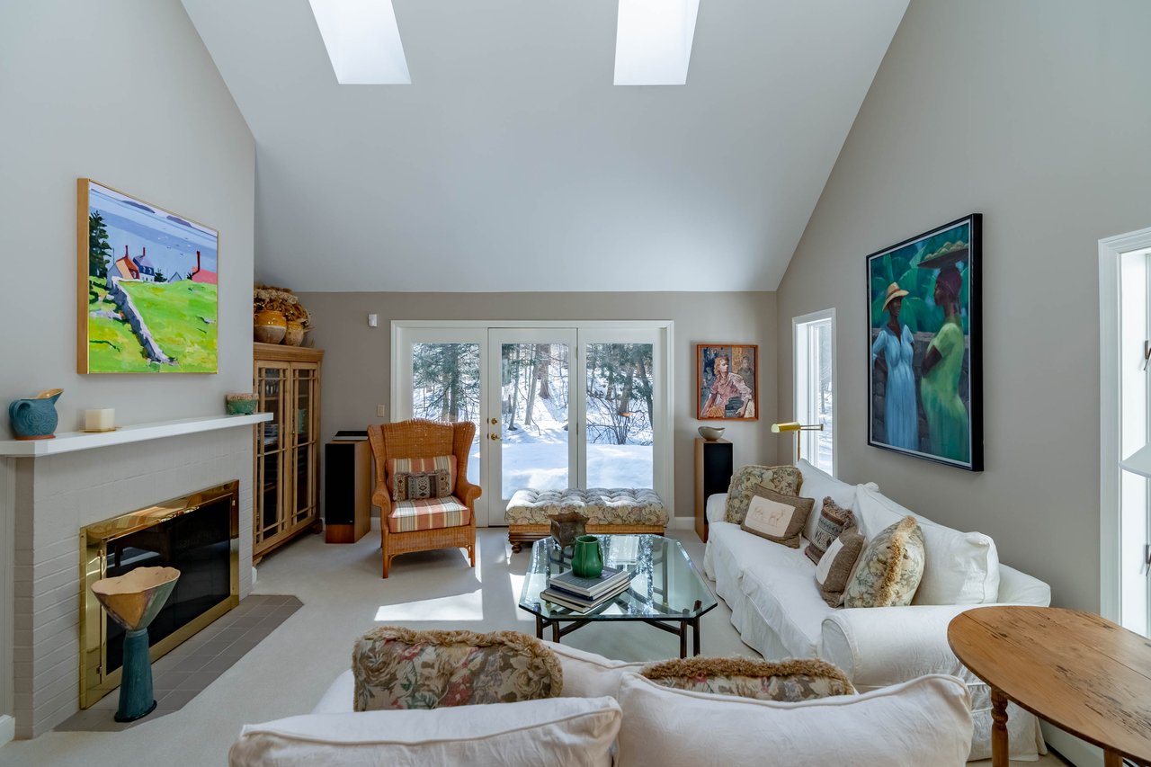 Surrounded by mature trees, this beautifully maintained condo offers 2 bedroom and 2.5 baths. The spacious first floor layout features a lovely master suite with walk-in closet and a fully renovated bath with double vanities and walk-in tile shower. The living room boasts cathedral ceilings, a soaring fireplace and access to the back yard while the cozy first floor den opens to the eat-in kitchen with access to the private screened in patio. The second level offers an open family room, office, an additional bedroom and full bath. The unfinished space above the garage allows for expansion possibilities or easy storage. The association amenities include a pool and tennis courts. Enjoy living just minutes from local beaches, restaurants, Portland and more!