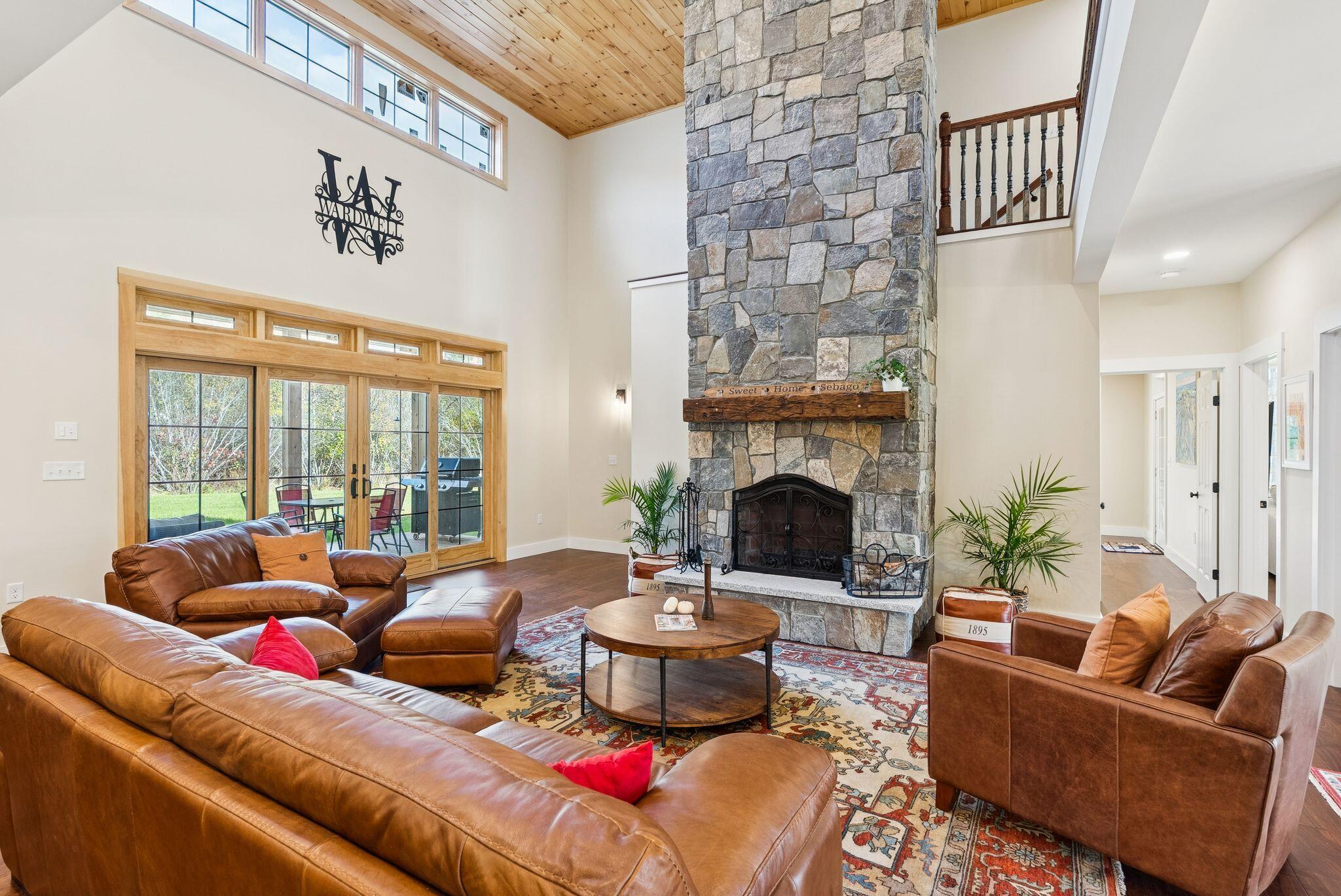 Privacy, lakefront living, and a spectacular new home -- welcome to 34 Martha Road in Casco. This rare Sebago Lake offering spans over 7 acres, creating the ultimate setting to relax, entertain, and explore. The custom shingle-style residence greets you with a wraparound porch and opens into an impressive great room with soaring ceilings and a dramatic wood-burning fireplace. The spacious kitchen features Thermador appliances, a butler's pantry, and a large island -- ideal for gatherings and everyday living. Enjoy single-level convenience with a luxe first-floor primary suite and adjoining sunroom. Three additional en suite bedrooms provide comfort and privacy for family or guests. A cozy den/office, mudroom, laundry room, and oversized garage ensure seamless year-round living. Step outside to grill on the back deck, play in the yard, or follow the path to your private waterfront. Across from protected Kettle Cove Marina, your 120-foot dock, boat lift, and jet ski ramp, and private boat launch await -- ready for endless aquatic adventures. With 1,790 feet of water frontage and multiple lots, the possibilities for additional outbuildings or a future family compound are exceptional. Ideally located near Route 302 for easy access to shops and amenities, this remarkable property is your key to Vacationland.