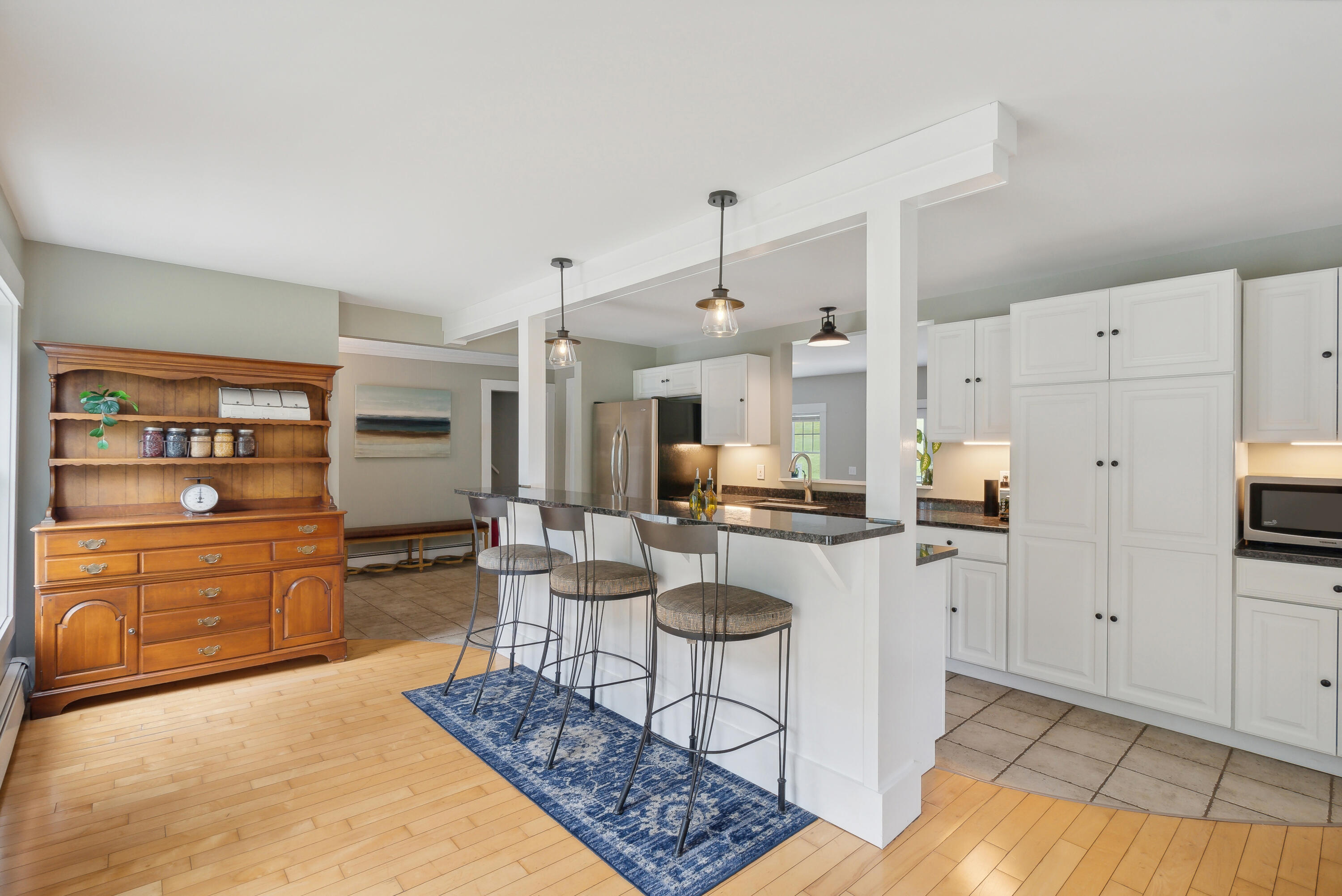 Charming living meets modern convenience in this delightful home. Step inside to discover a warm and inviting interior where vintage charm meets thoughtful updates. The spacious kitchen is flooded with light and features bar seating and a breakfast nook. A full dining room is ideal for entertaining. The cozy living room, complete with a wood-burning fireplace, offers a relaxing space for gatherings, while the family room with a gas fireplace provides additional comfort. Upstairs, you'll find three bedrooms with original wide-plank hardwood floors, including the well-appointed primary bedroom with a private sitting room or office, ensuring ample space and privacy for all family members. The exterior of this lovely home is equally impressive, set on a spacious lot that offers both beauty and tranquility. A farmers porch, surrounded by beautiful gardens, invites you to sit and enjoy the peaceful surroundings. The back patio, made of pea stone, provides an ideal spot for outdoor dining and relaxation, while the expansive open yard offers endless possibilities for recreation and gardening. Additionally, the home features a two-car garage, providing convenience and storage. 39 Yarmouth Road combines the charm of country living with easy access to nearby amenities, making it the perfect place to call home.
