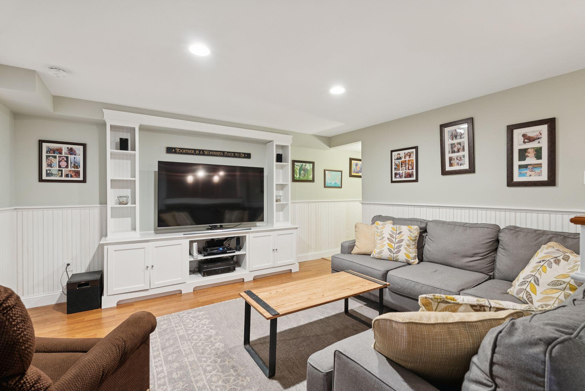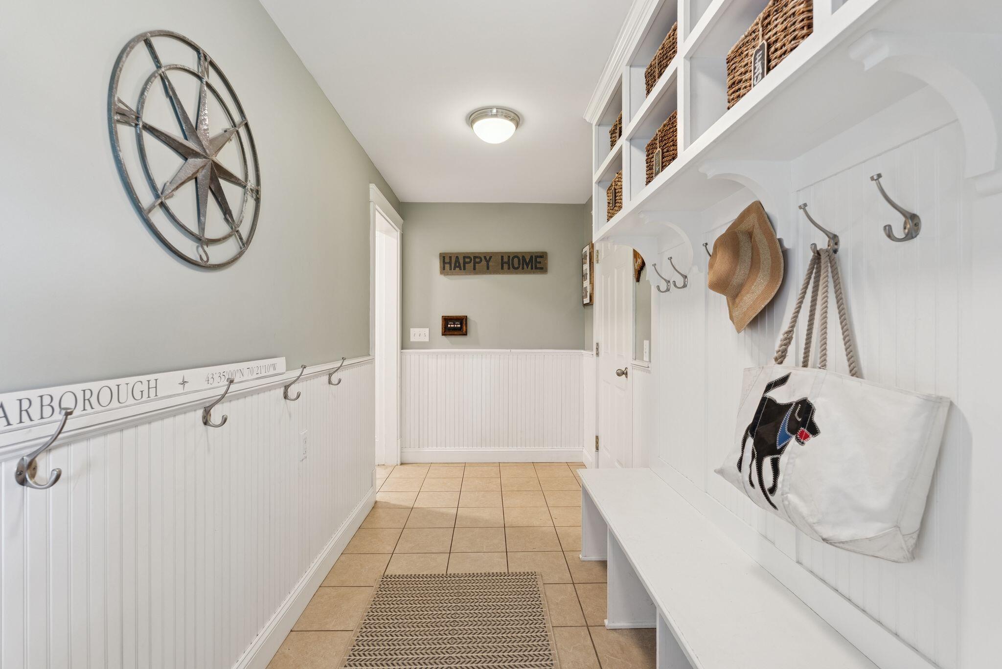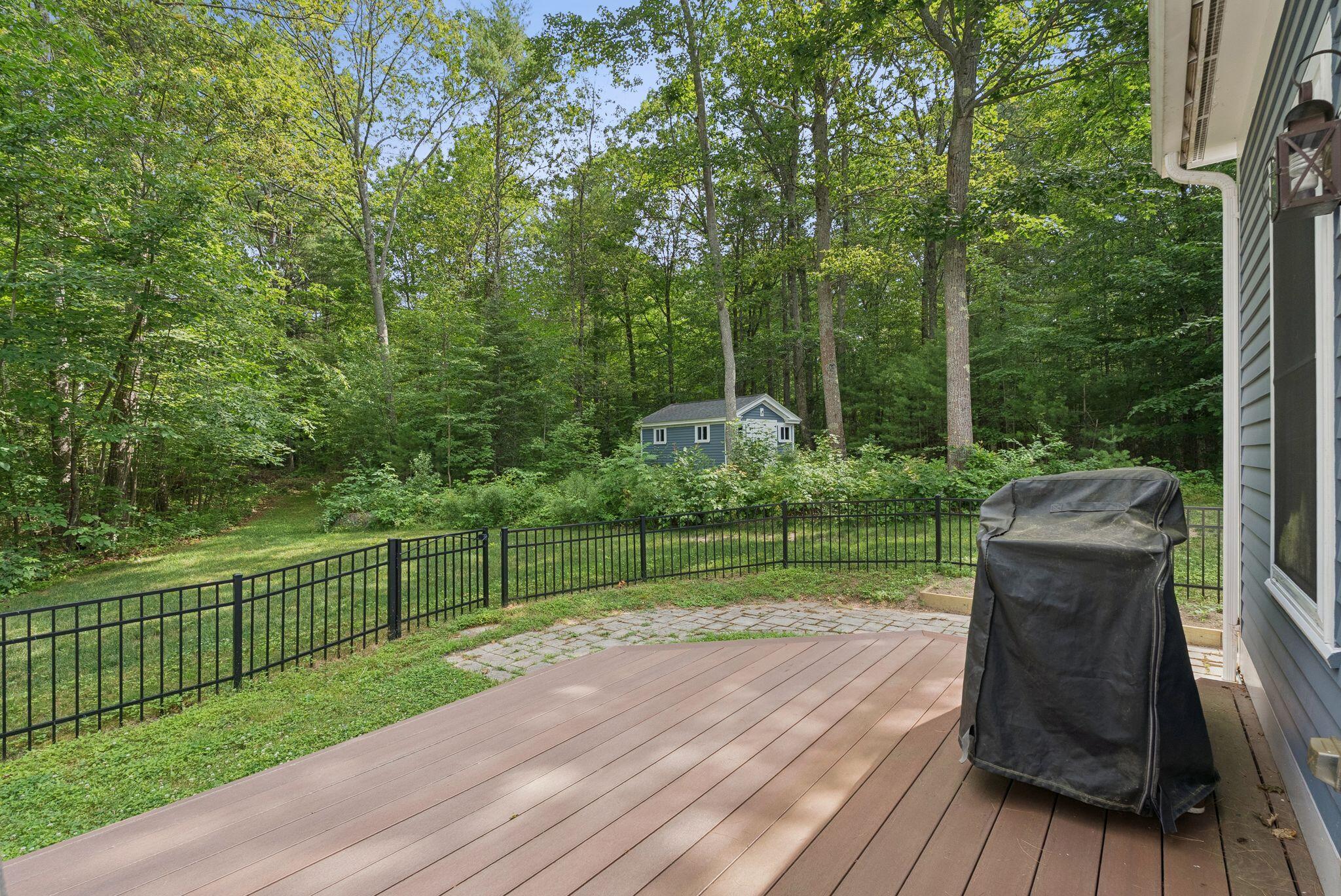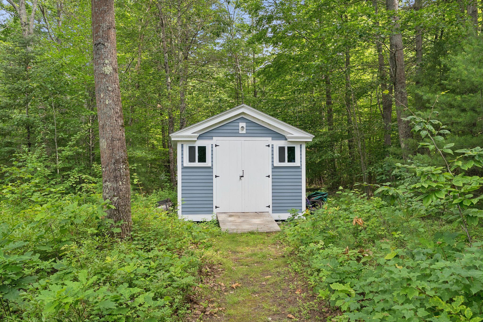 This stunning classic Colonial combines elegance with modern design. Beautifully landscaped grounds and an inviting front porch set the tone for this special home. Located in a quiet, friendly neighborhood, it provides exceptional privacy and ample parking, including three garage spaces, ideal for entertaining or large gatherings. The thoughtfully designed outdoor space features a private back patio, uniquely enclosed by the home and detached garage, creating a cozy, courtyard-like feel. Enter inside through a tiled mudroom with built-in storage, perfect for keeping life organized. The interior is designed with an exciting and versatile floor plan with plenty of room for guests, relaxation, and everyday living. Creating an inviting atmosphere the spacious eat-in kitchen opens into a grand living room with high cathedral ceilings and gleaming hardwood floors. A sunlit dining room with cathedral ceilings, gas fireplace, and wall-to-wall windows floods the space with natural light and provides direct access to the back patio. Convenience abounds with a first-floor laundry room and additional family room with a gas fireplace. The primary suite includes a full bath with double vanity and striking tiled shower, and three additional bedrooms on the second floor there's ample space for family or guests. The finished basement adds even more living space, with a recreation area that's excellent for games or exercise, a bar with seating, built-ins, and a private bedroom with a full bath. Adding to its appeal, the home offers direct access to the scenic Fuller Farm trails right from the back door. Enjoy excellent bird watching, and 2.6 miles of peaceful trails, it's a nature lover's dream. Ideally just 20 minutes from vibrant downtown Portland and only 15 minutes from Maine's renowned public beaches along the Atlantic coast, this home has comfort, style, convenience, and functionality in a beautiful, private setting; it's a must-see!