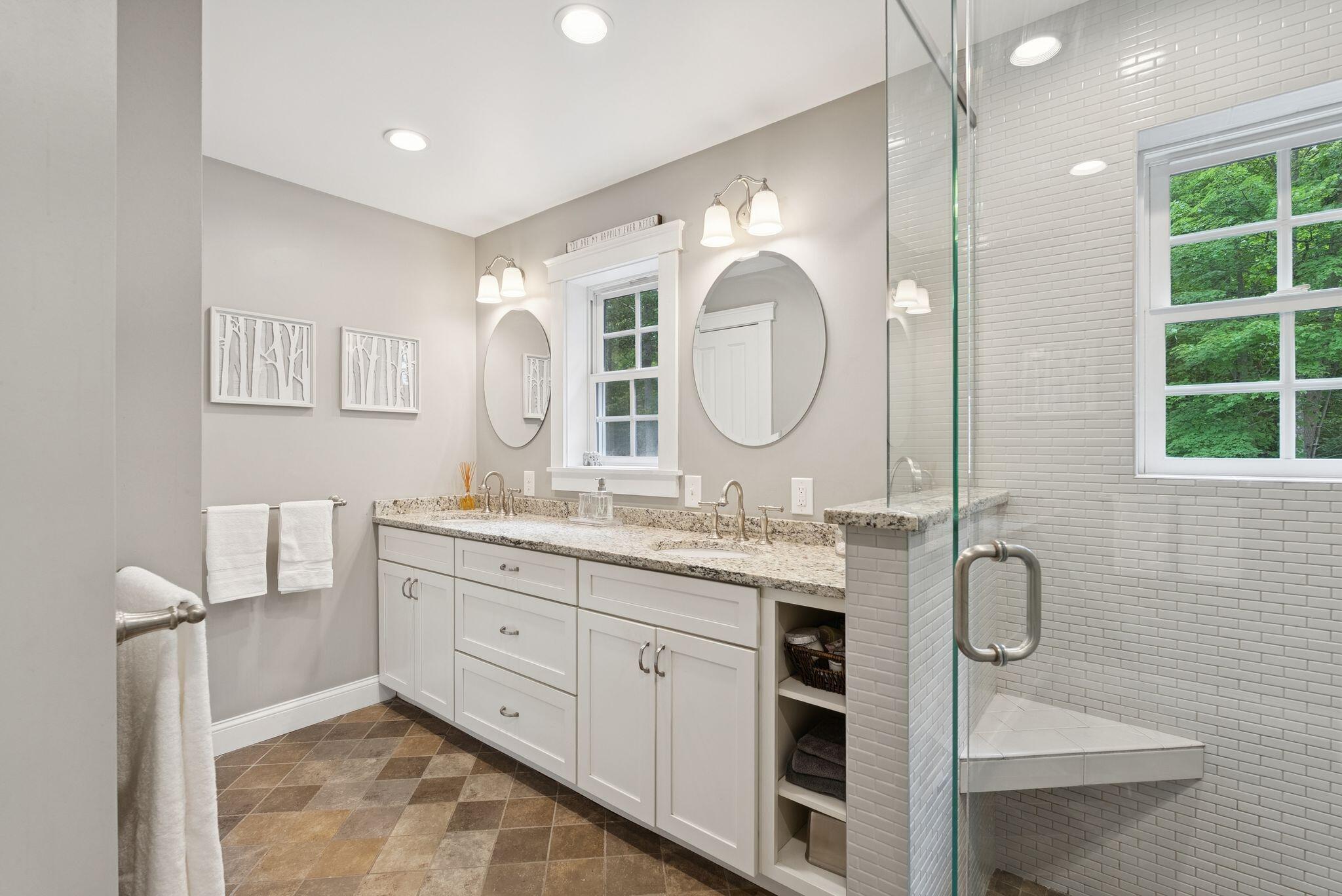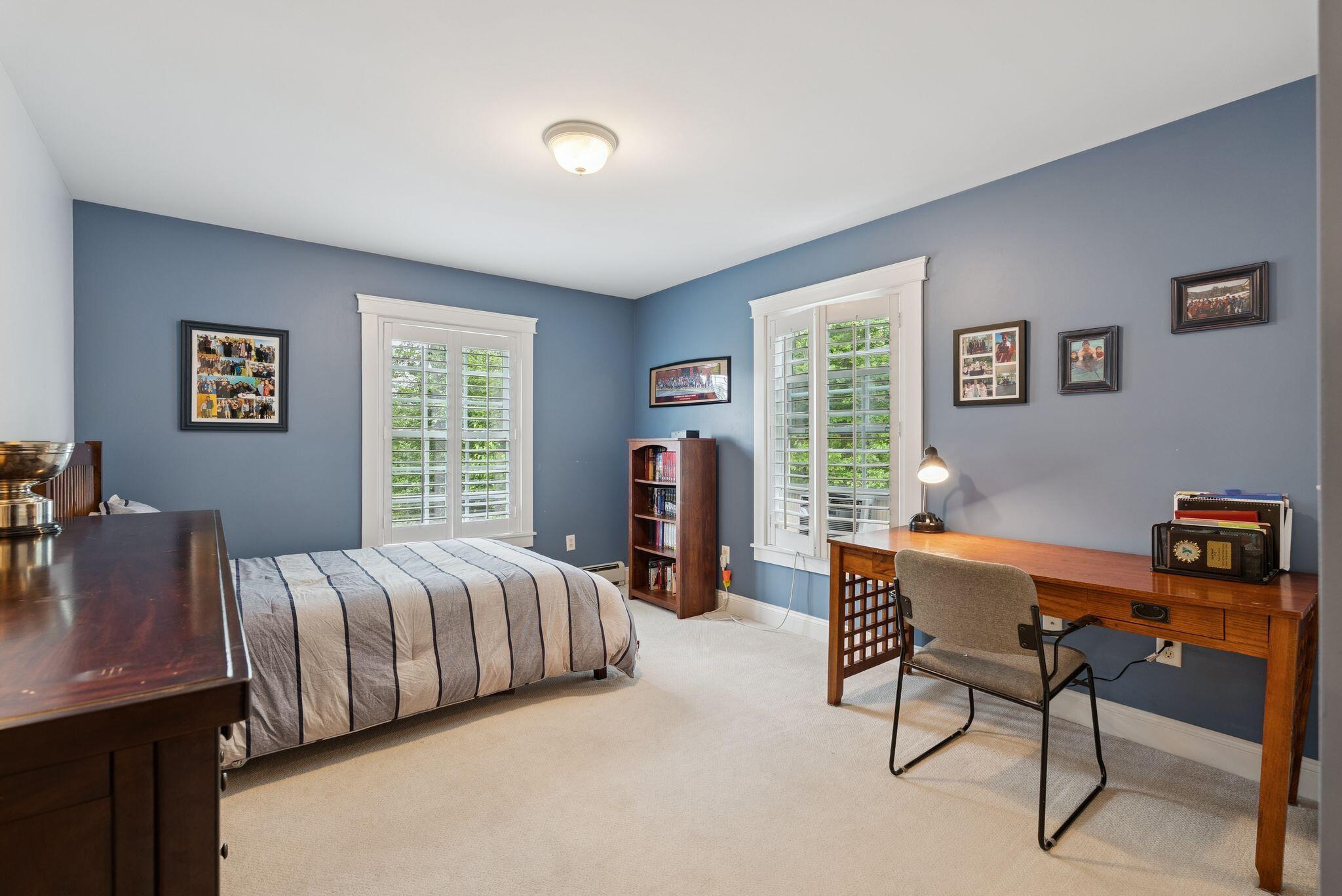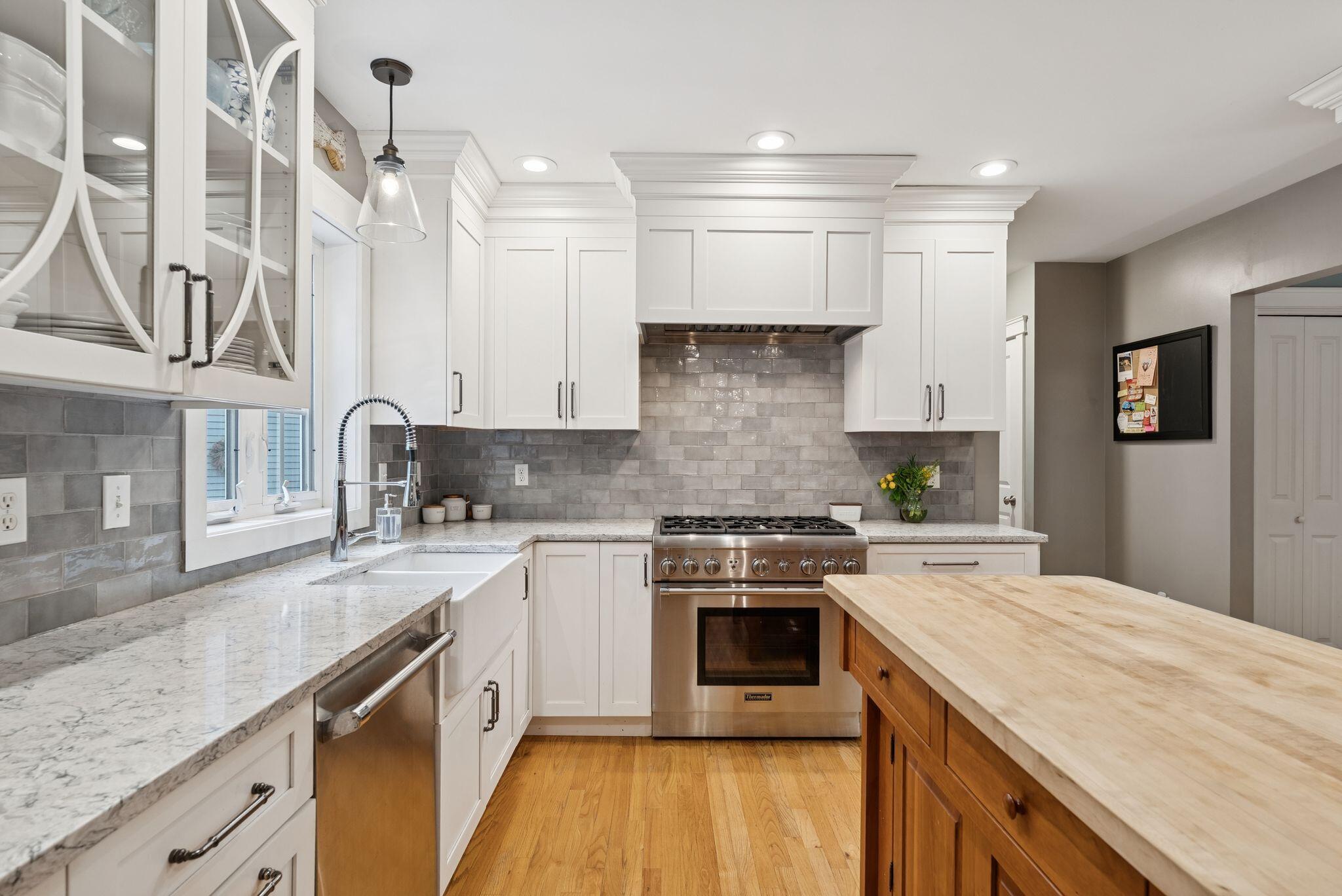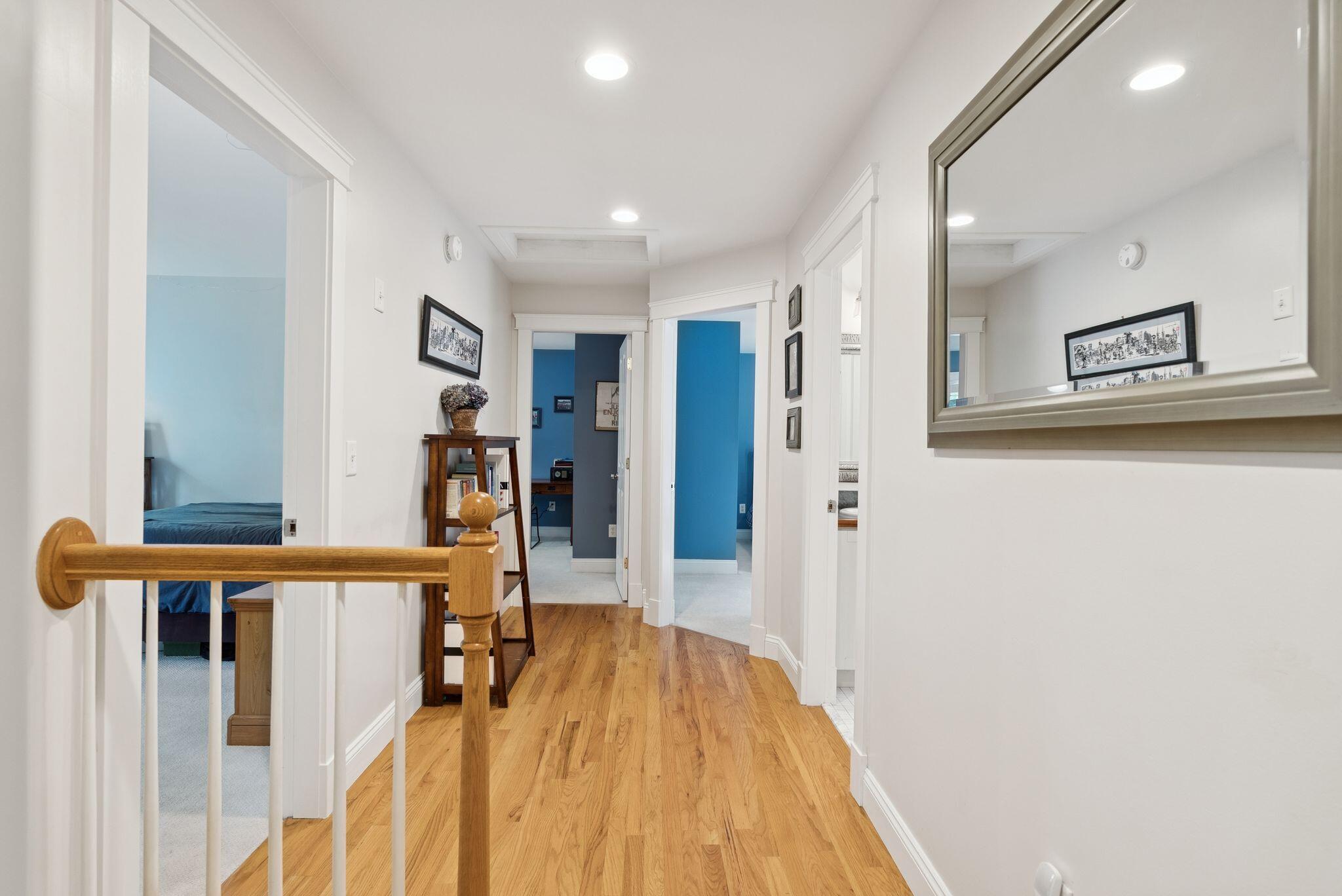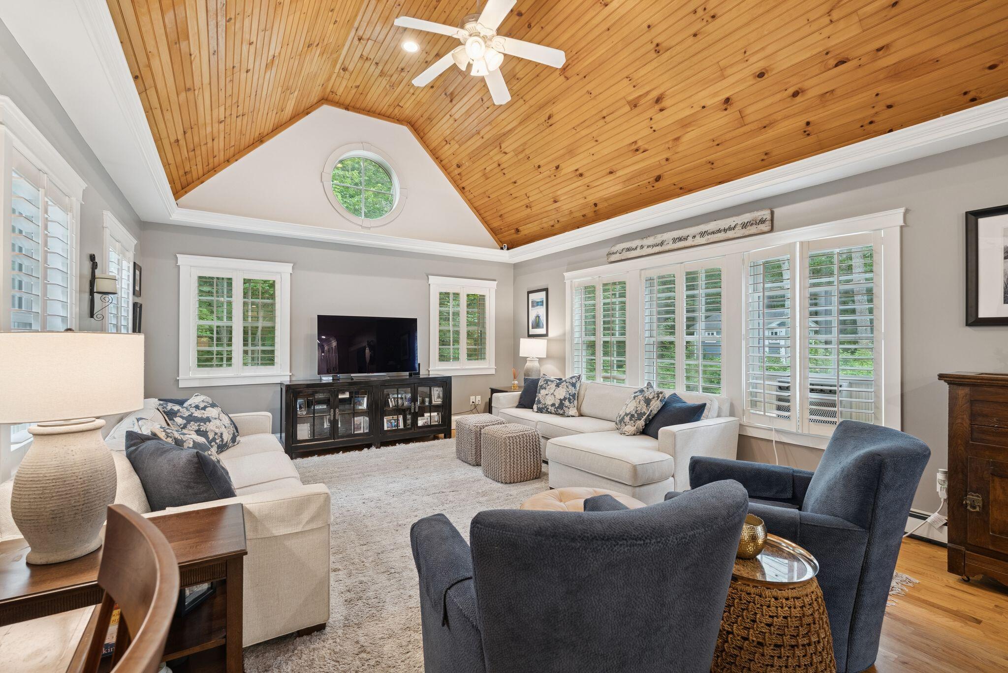 This stunning classic Colonial combines elegance with modern design. Beautifully landscaped grounds and an inviting front porch set the tone for this special home. Located in a quiet, friendly neighborhood, it provides exceptional privacy and ample parking, including three garage spaces, ideal for entertaining or large gatherings. The thoughtfully designed outdoor space features a private back patio, uniquely enclosed by the home and detached garage, creating a cozy, courtyard-like feel. Enter inside through a tiled mudroom with built-in storage, perfect for keeping life organized. The interior is designed with an exciting and versatile floor plan with plenty of room for guests, relaxation, and everyday living. Creating an inviting atmosphere the spacious eat-in kitchen opens into a grand living room with high cathedral ceilings and gleaming hardwood floors. A sunlit dining room with cathedral ceilings, gas fireplace, and wall-to-wall windows floods the space with natural light and provides direct access to the back patio. Convenience abounds with a first-floor laundry room and additional family room with a gas fireplace. The primary suite includes a full bath with double vanity and striking tiled shower, and three additional bedrooms on the second floor there's ample space for family or guests. The finished basement adds even more living space, with a recreation area that's excellent for games or exercise, a bar with seating, built-ins, and a private bedroom with a full bath. Adding to its appeal, the home offers direct access to the scenic Fuller Farm trails right from the back door. Enjoy excellent bird watching, and 2.6 miles of peaceful trails, it's a nature lover's dream. Ideally just 20 minutes from vibrant downtown Portland and only 15 minutes from Maine's renowned public beaches along the Atlantic coast, this home has comfort, style, convenience, and functionality in a beautiful, private setting; it's a must-see!
