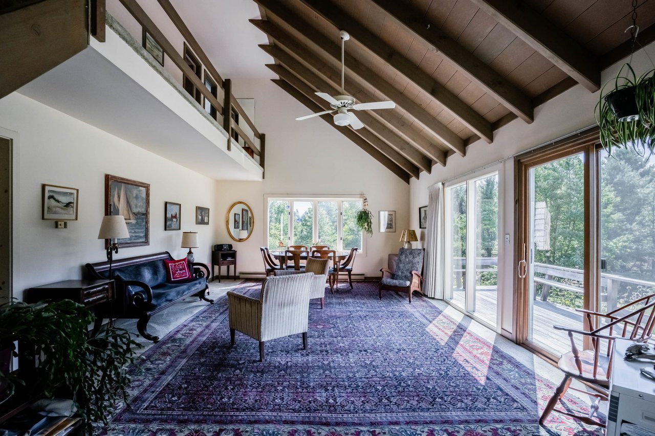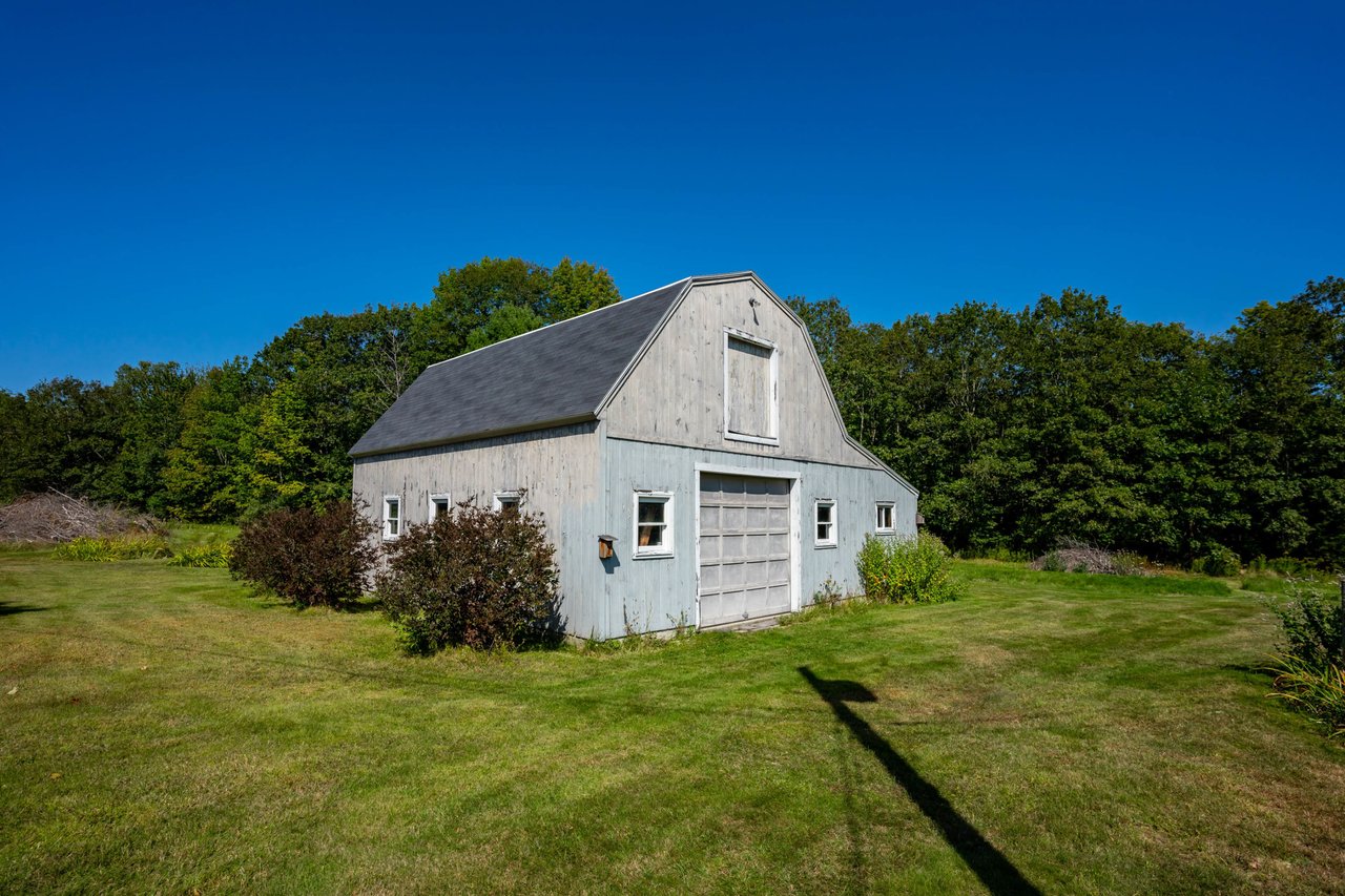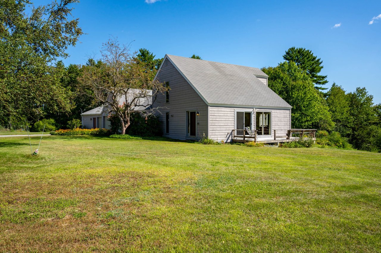 Picturesque views surround this private home situated on 18.9 acres in the heart of Cumberland with potential for 2 buildable lots! Boasting over 2,900 SF and an abundance of natural light, this home's many amenities include a first level primary suite with sliders to a private patio, a large family room with cathedral ceilings and sliders out to the back deck, a living room with wood stove and dining area, and a wonderful finished living space in the daylight basement. Enjoy the convenience of an attached two car garage with an apartment next to the garage offering great space for an in-law of home office. A huge barn features tons of space for all your recreational toys and storage. It's simply a tranquil setting and just minutes to schools, shopping, highways and only 20 minutes to downtown Portland.Roman insulated shades in primary bedroom and blue paneled bedroom do not convey.