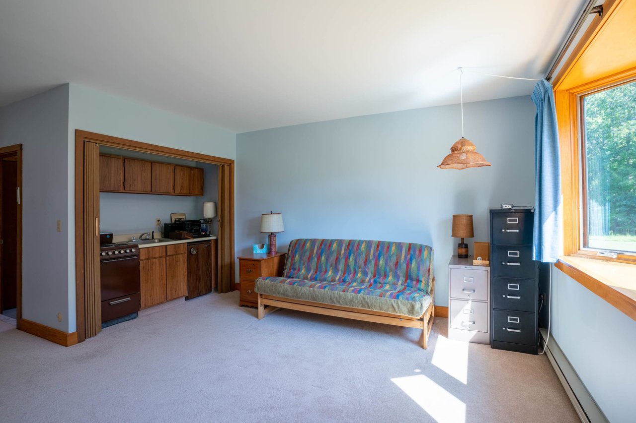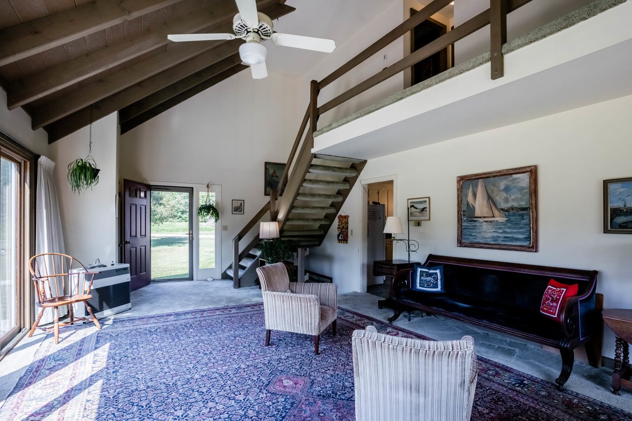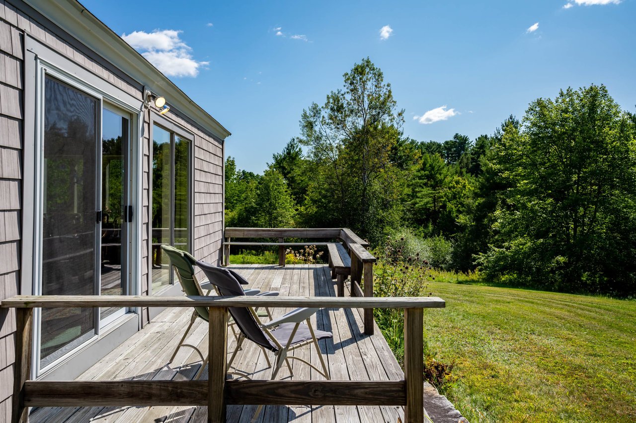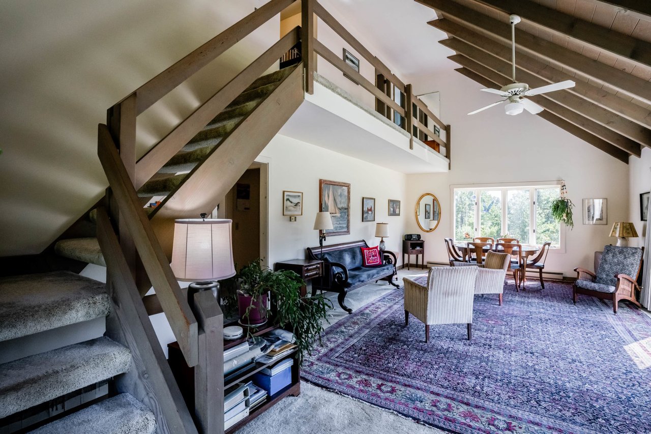 Picturesque views surround this private home situated on 18.9 acres in the heart of Cumberland with potential for 2 buildable lots! Boasting over 2,900 SF and an abundance of natural light, this home's many amenities include a first level primary suite with sliders to a private patio, a large family room with cathedral ceilings and sliders out to the back deck, a living room with wood stove and dining area, and a wonderful finished living space in the daylight basement. Enjoy the convenience of an attached two car garage with an apartment next to the garage offering great space for an in-law of home office. A huge barn features tons of space for all your recreational toys and storage. It's simply a tranquil setting and just minutes to schools, shopping, highways and only 20 minutes to downtown Portland.Roman insulated shades in primary bedroom and blue paneled bedroom do not convey.