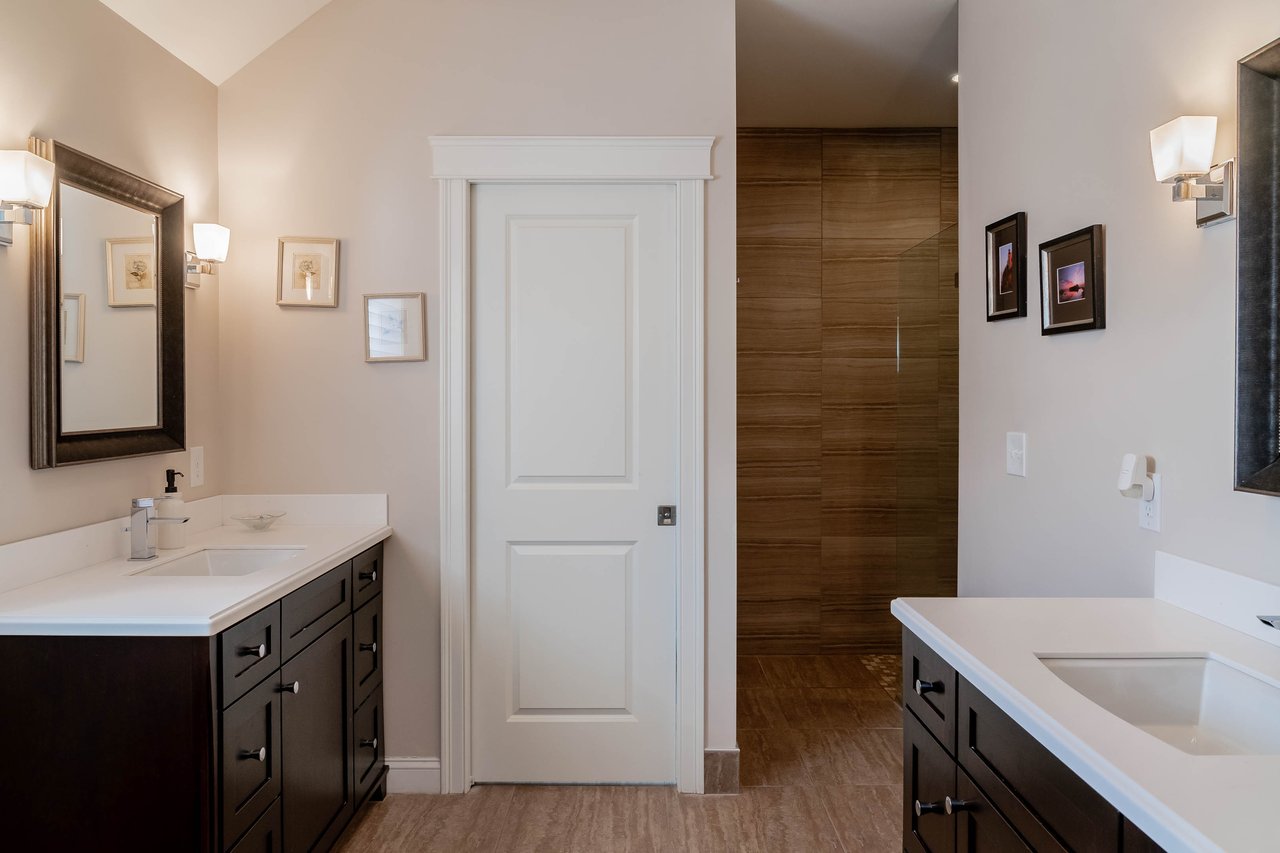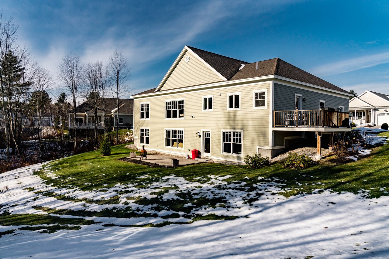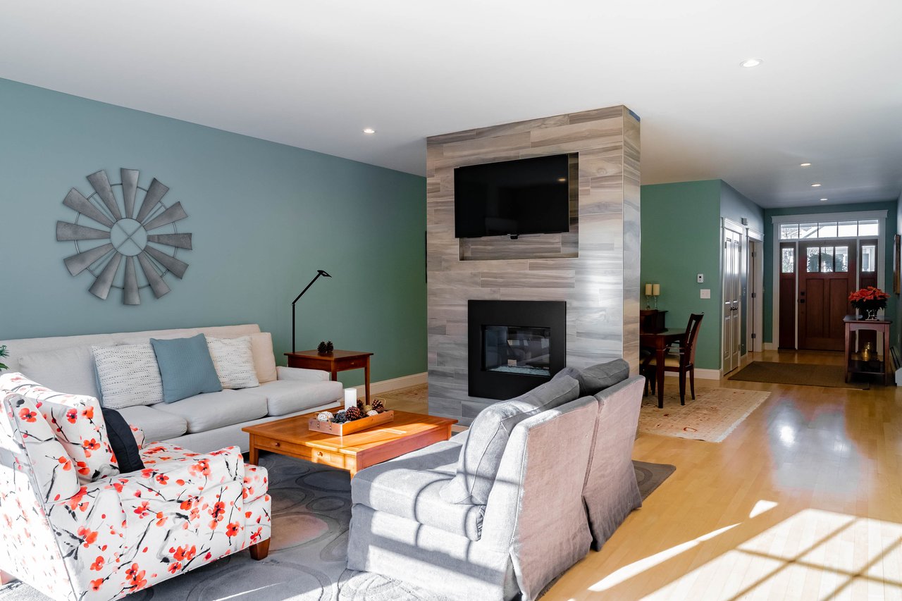Designed with the utmost attention to detail, this Village Green cottage style home was built to accommodate single floor living. This bright and airy formal entry with transom windows and french doors invites you into this gracious open concept home. Incredible charm and high-end finishes include beautiful hardwood floors, a custom kitchen with tile floor & back splash, center island, Corian counter and a double oven. A double sided fireplace creates ambiance for the living and dining space. The master en suite features 2 separate vanities, a glass enclosed shower and heated floors. A daylight, partially finished lower level features a family room and office/bedroom with doors that walk out to a stone patio and spacious backyard. Plenty of room to live and entertain! Additionally, buyer can opt in for landscaping and snow removal services.