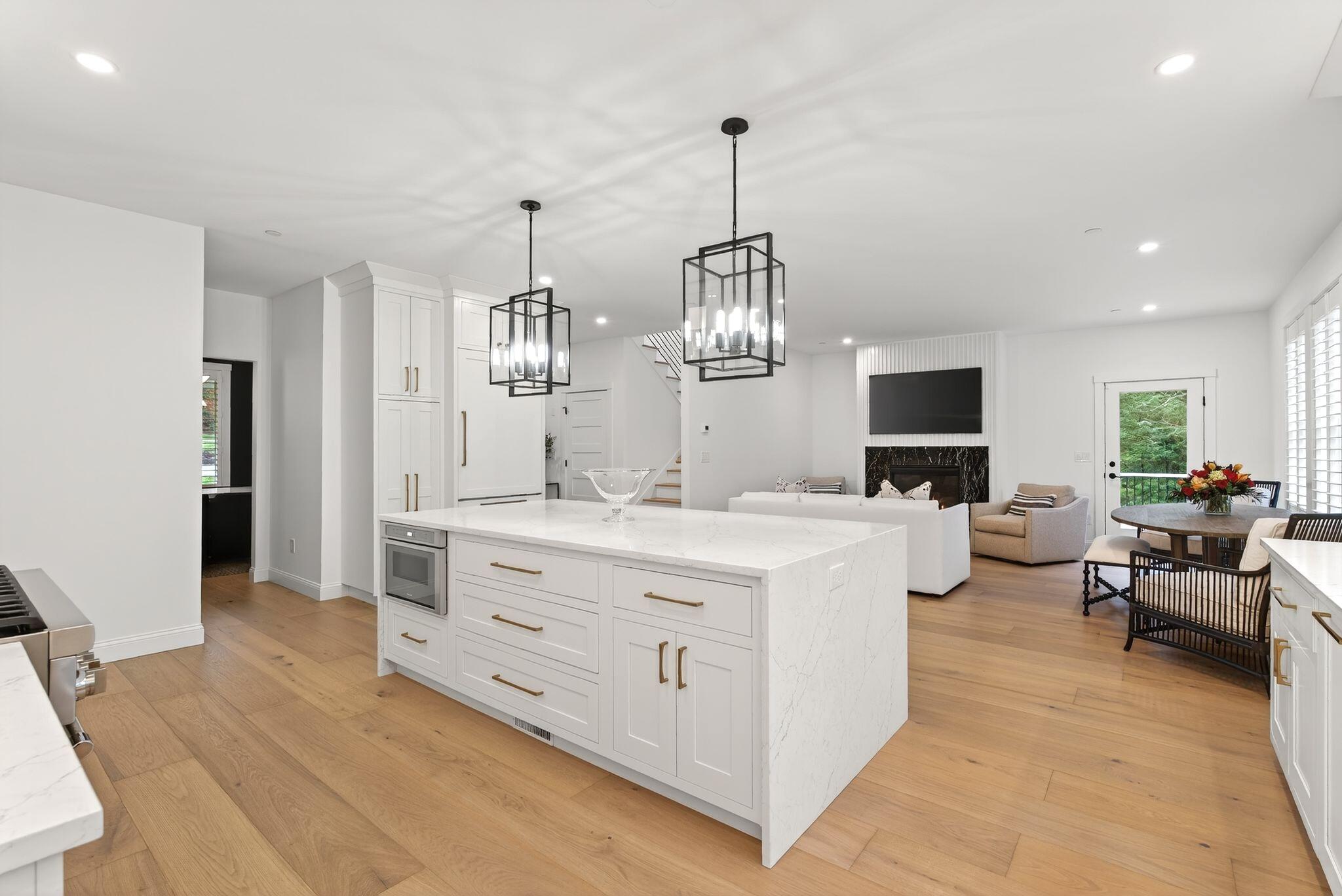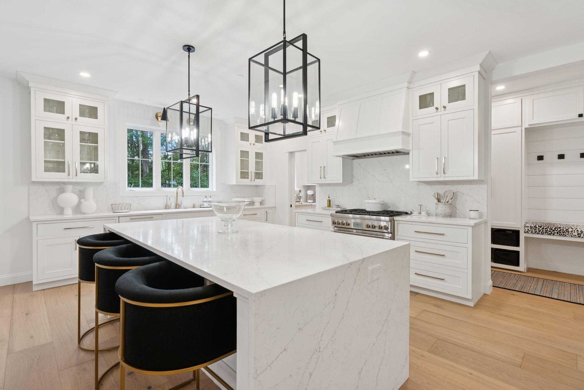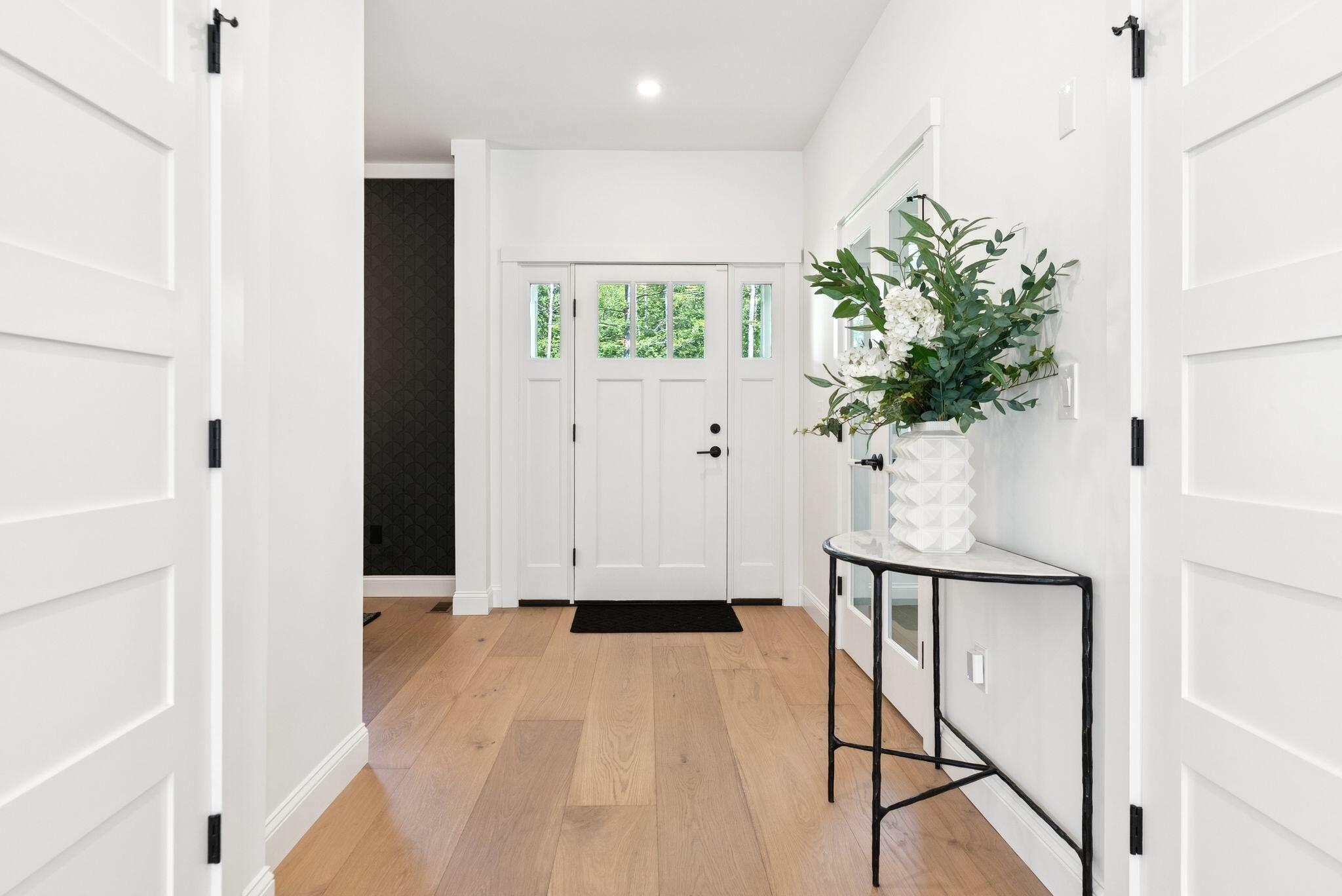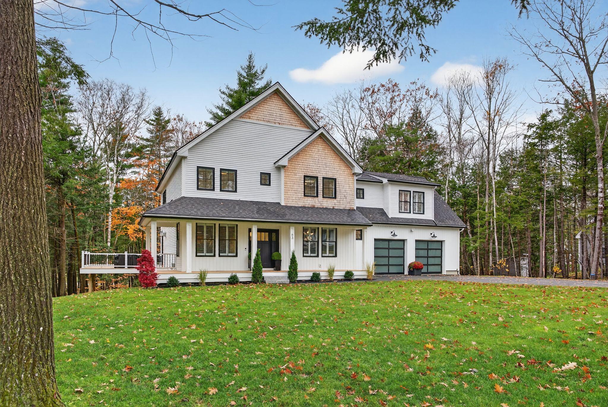Completed in 2023, this exquisitely maintained home balances thoughtful design and refined finishes in a beautifully private, wooded setting. Located at the end of a quiet cul de sac in Cumberland's sought-after Blanchard Oaks neighborhood, this home sits on a beautifully wooded 1.84 acre lot, providing a serene and private backdrop. From the moment you arrive, the covered front porch welcomes you into a bright, flawlessly designed interior. The open concept main level showcases a gleaming kitchen with custom cabinetry, quartz countertops, a spacious center island, and a large walk-in pantry complete with a wine fridge. The adjoining formal dining room, cozy family room with a gas fireplace and access to the side deck, and a dedicated home office offer flexible and elegant living spaces. A thoughtfully designed mudroom off the attached heated two car garage includes built-in storage to keep the space organized and pristine. Ascend the striking staircase, highlighted by a statement chandelier, to a second floor designed for comfort and convenience. The luxurious primary suite features a walk in closet, double vanity, and a spa like walk in shower. A second bedroom includes a private ensuite bath, while two additional bedrooms, a full hall bath, and a laundry room complete the upper level. The finished daylight basement extends the living space with a stylish family room featuring a wet bar, a home gym, a full bathroom, and walk out access to the backyard. Professionally landscaped with an irrigation system, this home has been meticulously cared for and presents as new. This impeccable home offers modern construction, high end finishes, and peaceful privacy.