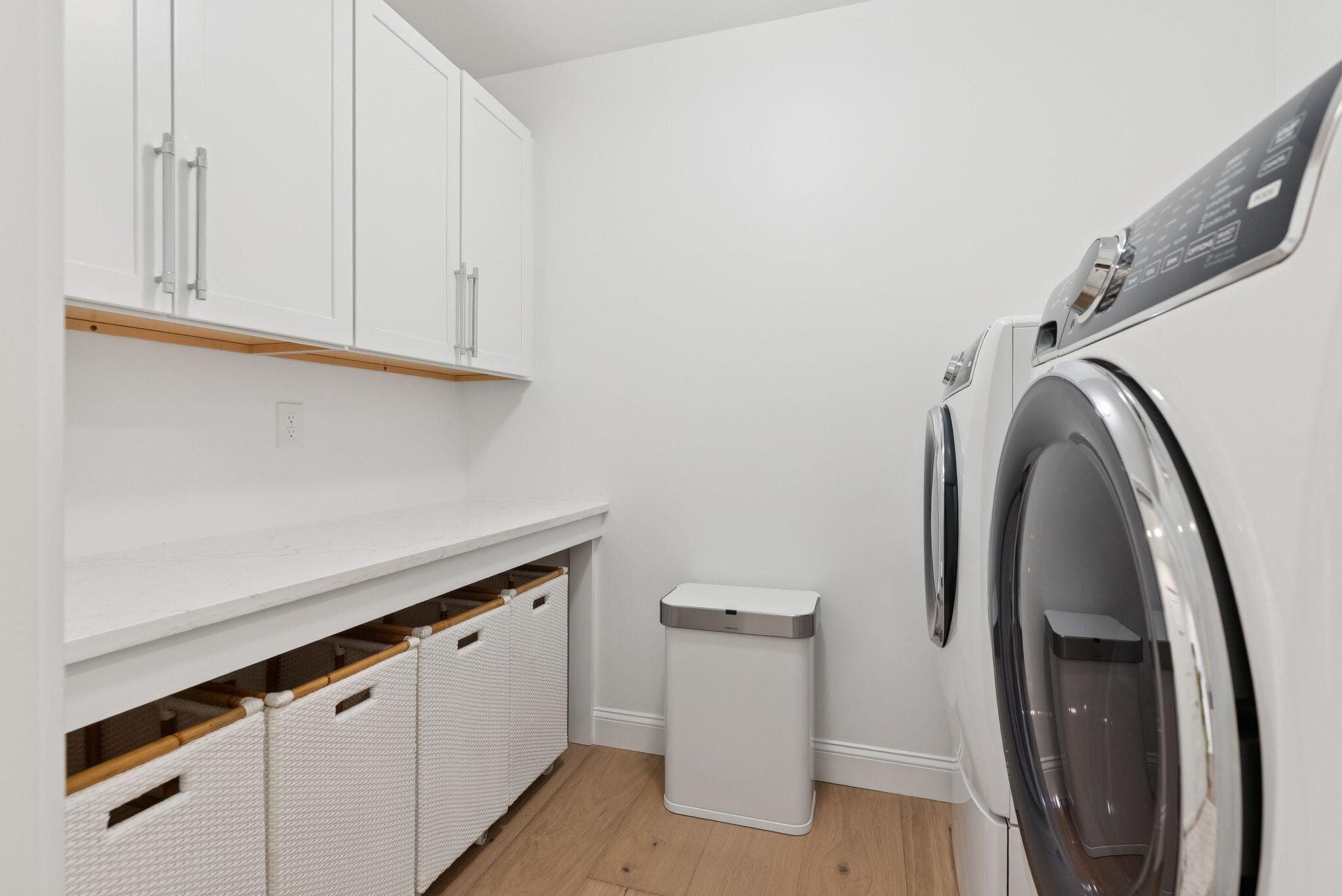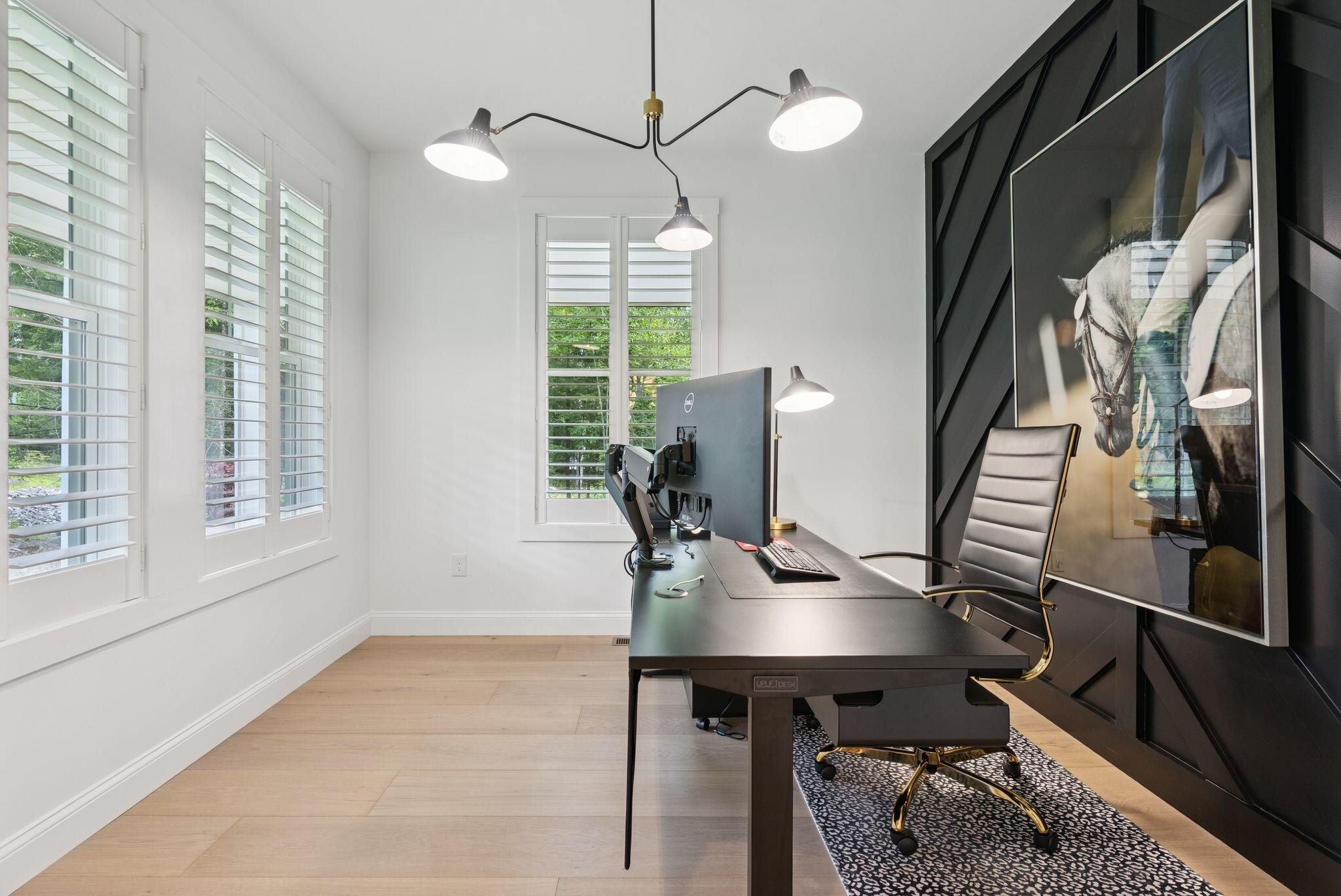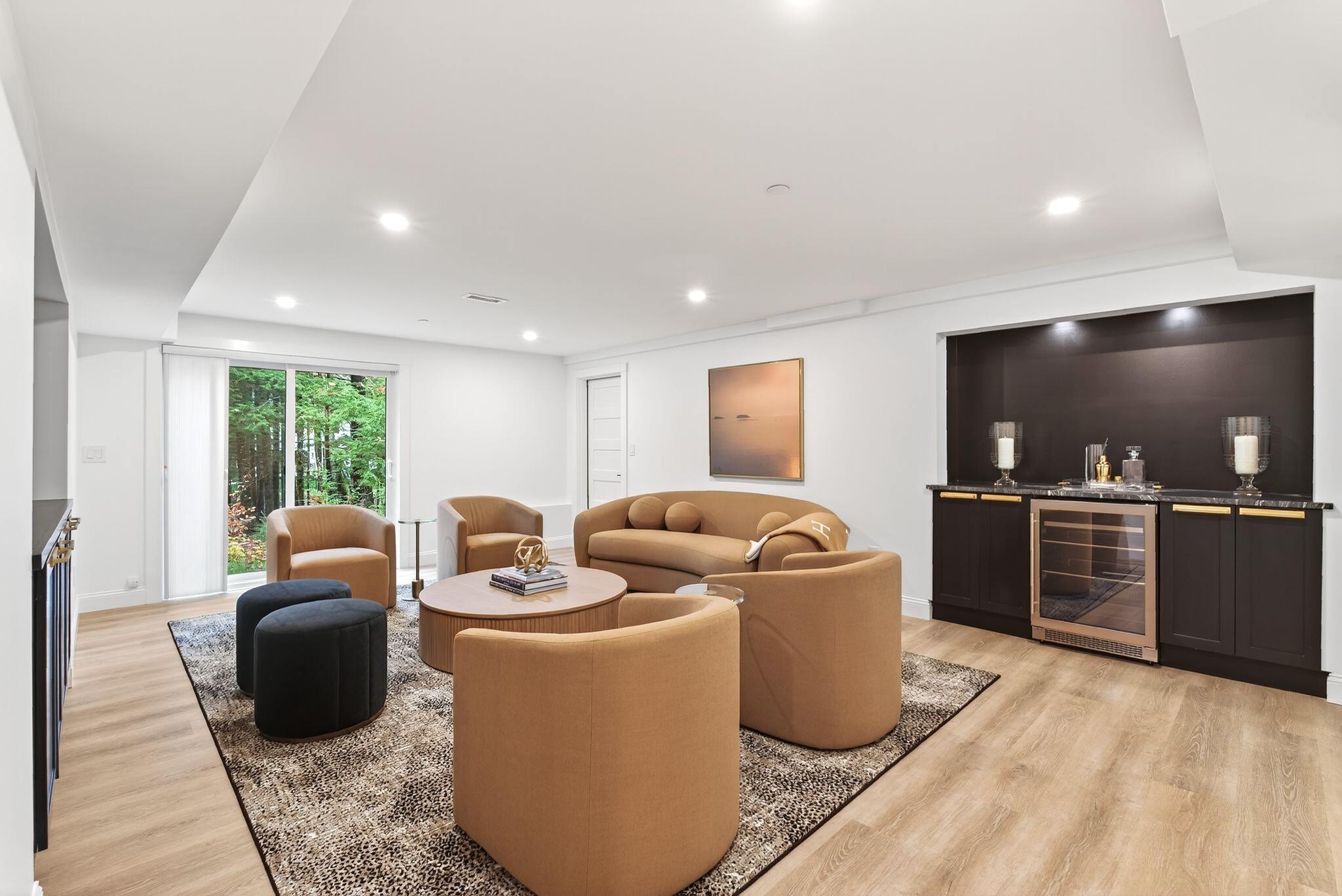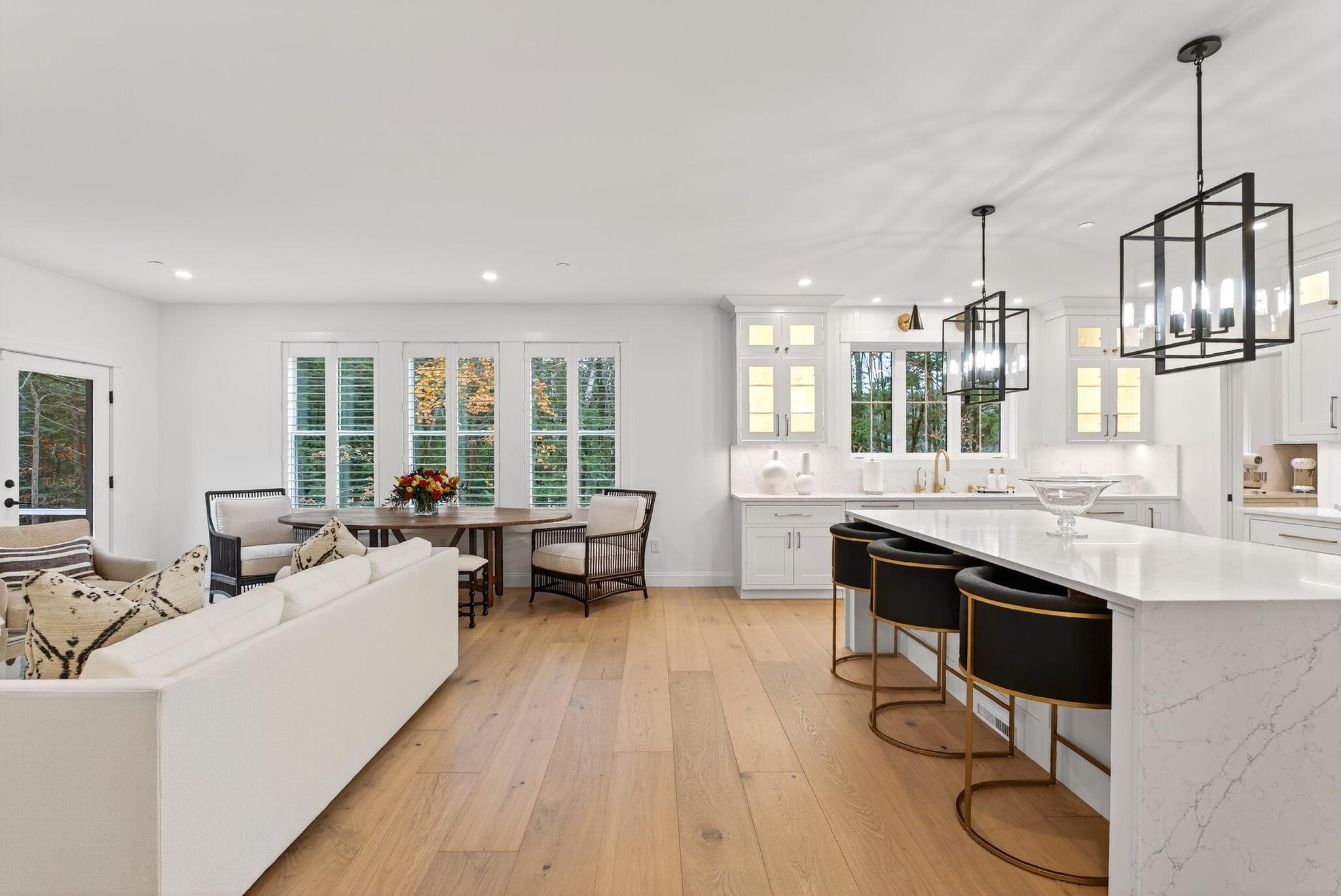 Completed in 2023, this exquisitely maintained home balances thoughtful design and refined finishes in a beautifully private, wooded setting. Located at the end of a quiet cul de sac in Cumberland's sought-after Blanchard Oaks neighborhood, this home sits on a beautifully wooded 1.84 acre lot, providing a serene and private backdrop. From the moment you arrive, the covered front porch welcomes you into a bright, flawlessly designed interior. The open concept main level showcases a gleaming kitchen with custom cabinetry, quartz countertops, a spacious center island, and a large walk-in pantry complete with a wine fridge. The adjoining formal dining room, cozy family room with a gas fireplace and access to the side deck, and a dedicated home office offer flexible and elegant living spaces. A thoughtfully designed mudroom off the attached heated two car garage includes built-in storage to keep the space organized and pristine. Ascend the striking staircase, highlighted by a statement chandelier, to a second floor designed for comfort and convenience. The luxurious primary suite features a walk in closet, double vanity, and a spa like walk in shower. A second bedroom includes a private ensuite bath, while two additional bedrooms, a full hall bath, and a laundry room complete the upper level. The finished daylight basement extends the living space with a stylish family room featuring a wet bar, a home gym, a full bathroom, and walk out access to the backyard. Professionally landscaped with an irrigation system, this home has been meticulously cared for and presents as new. This impeccable home offers modern construction, high end finishes, and peaceful privacy.