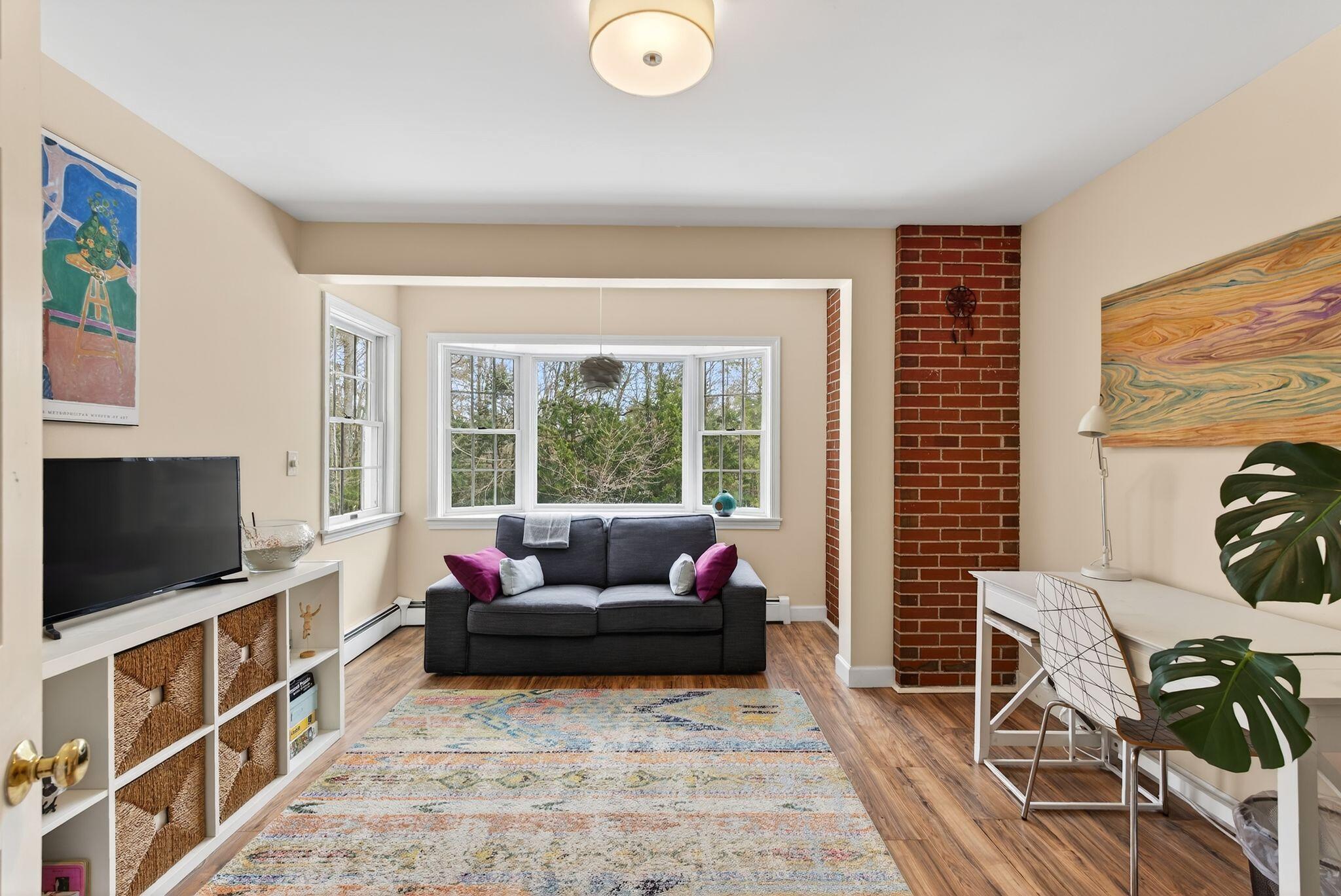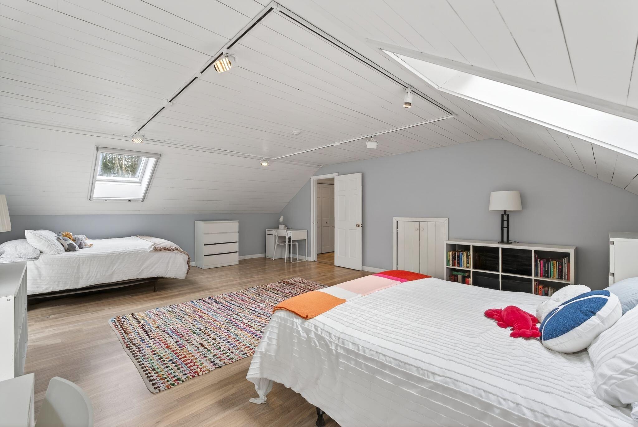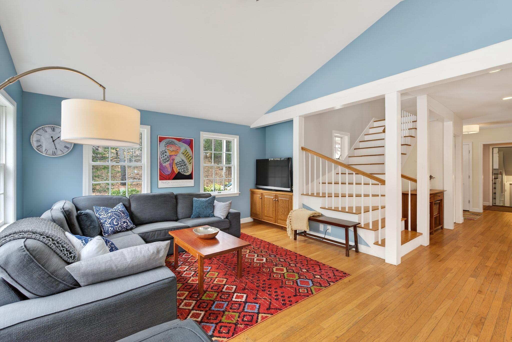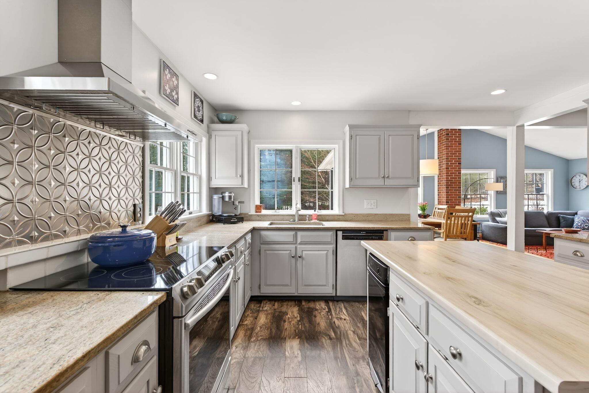 Surrounded by three acres of natural landscape and nearby conservation land, the home provides a sense of seclusion while remaining closely connected to its surroundings. Inside, an expanded layout reveals four bedrooms, two living areas, and dual dining spaces, complemented by three full baths and one half bath, well suited for both everyday enjoyment and memorable annual gatherings. The kitchen anchors the home with granite surfaces, a central island, and two adjoining dining areas on either side. From here, one direction opens to a bright, vaulted living room warmed by a centrally placed wood stove, where sliding doors extend the living space onto a tiered deck overlooking the backyard. A separate family room, centered around a wood-burning fireplace, invites quiet evenings and relaxed gatherings alike with its warm and comforting atmosphere. All bedrooms are thoughtfully arranged in a unique layout on the second level, while additional spaces, including an office and bonus room, offer flexibility for work, creativity, or a quiet space to read. Four garage bays complete the property, an uncommon feature that enhances both practicality and potential. This is a great center point location between Portland's coastline and Sebago Lake, the home offers a refined balance of accessibility and a rural neighborhood to return to.