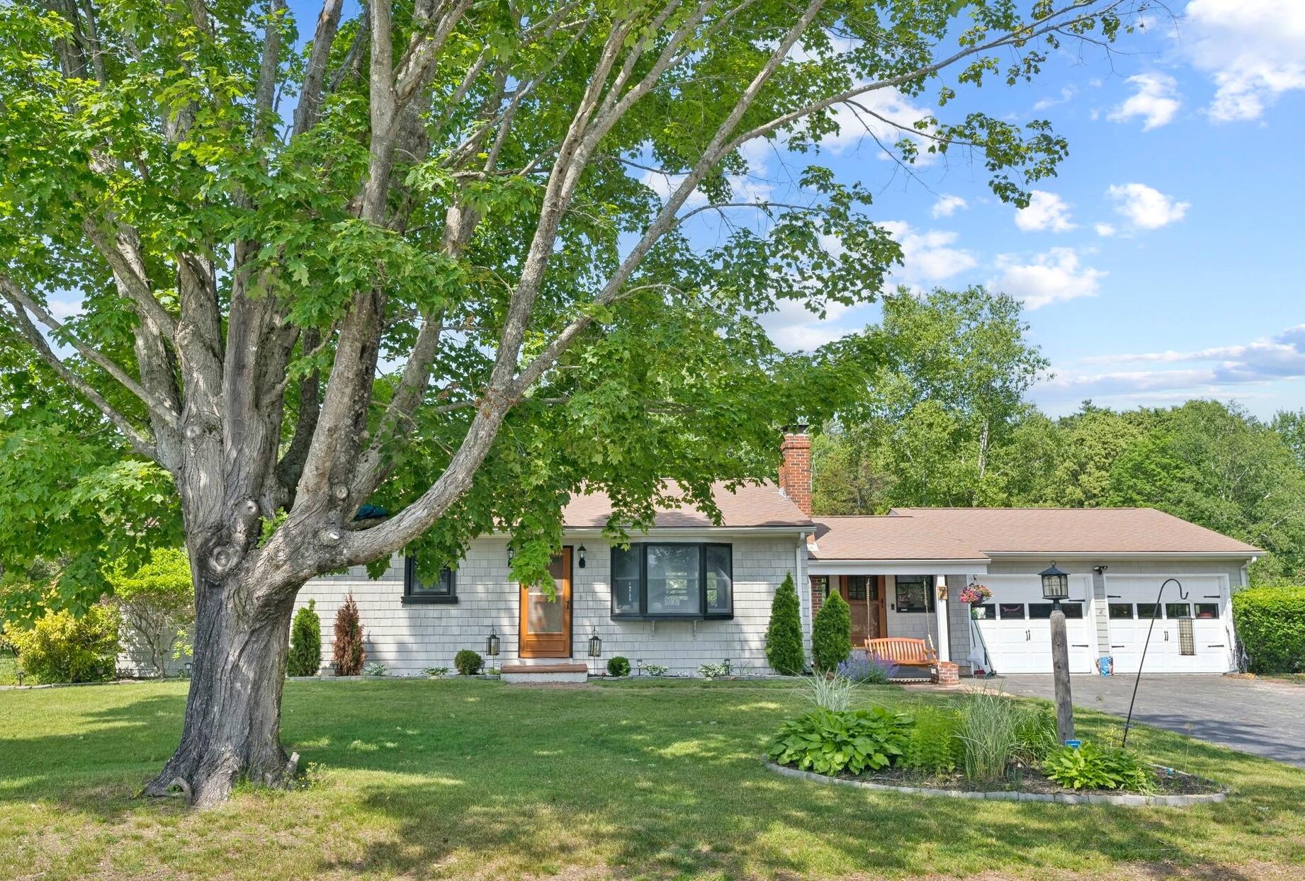 Well maintained ranch style home in Cumberland Center offering 1,380 square feet above grade and 792 square feet of finished space below. The main level includes an open, updated kitchen with dining nook, living room with wood stove, three bedrooms, and one full bath. The finished basement adds potential for a fourth bedroom, a second full bath, and additional living space. Included is an attached two car garage for added convenience, a private backyard, deck, and patio all situated on a .41 acre lot centrally located near schools and local amenities.