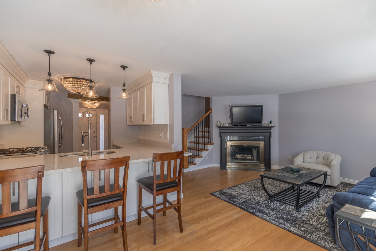 Beautiful 3 level townhouse located in the Fallbrook condo community. Enjoy cooking and entertaining in the updated kitchen featuring white cabinets, quartz counters and stainless steel appliances. With an open floor plan, built-in dining seating and a living room with hardwood floors and a wood burning fireplace, this home provides comfortable living. Sliders to a private back deck offer a serene place to relax as you overlook the landscaped grounds and gardens. The second floor features 2 bedrooms, including the master en suite with full bath, double vanity and 2 large closets. Full of natural light the third level offers another bedroom or office space. Great location! Enjoy easy access to Downtown Portland, Falmouth, North Deering, I-295 and 95!