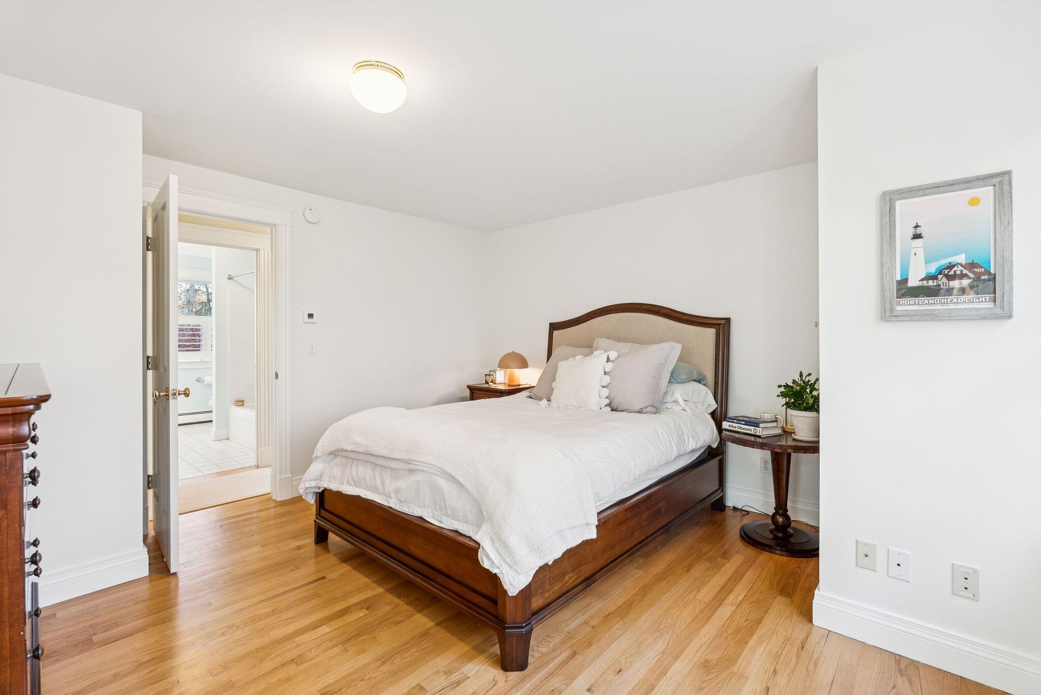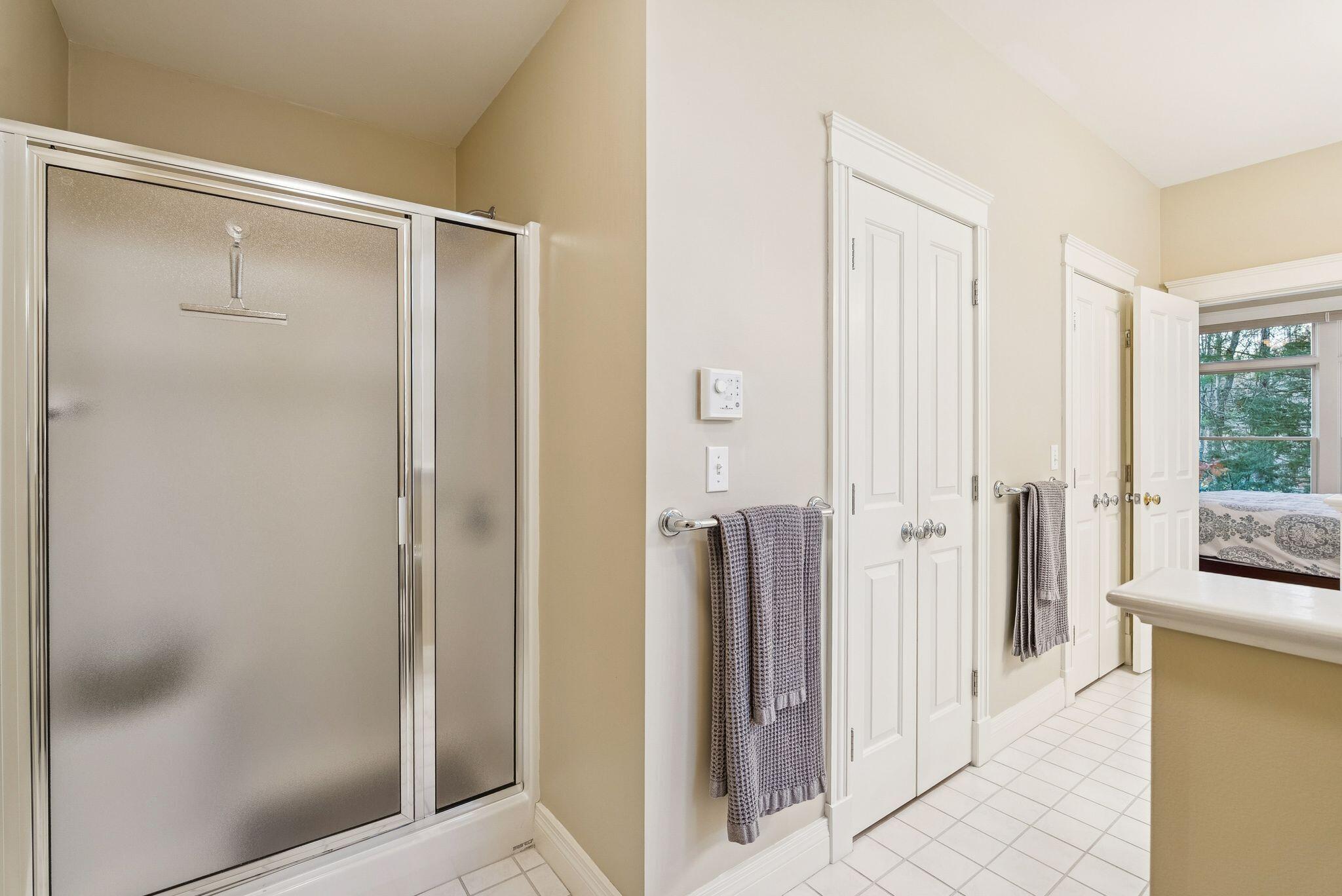Welcome to The Woodlands - one of Greater Portland's premier neighborhoods, cherished for its lifestyle and convenience. 89 Oakmont Drive is privately sited along the 13th green amongst mature plantings and natural rock, while the classic gambrel roofline and shingle siding create timeless curb appeal. A dramatic foyer welcomes you, while high ceilings, wonderful light, and an abundance of windows continue throughout the main floor. The layout flows around the kitchen, which is wrapped in windows and leads to dining room, a living room with gas fireplace and sunny alcove, and the deck for effortless gathering. Step away to a sense of calm in the elegant office or den with grasscloth wallpaper and built-ins. A first floor ensuite bedroom adds flexibility for single-level living, while the mudroom and 3 car garage bring everyday function with style. Upstairs, the primary suite is expansive and refined, with a spa style bath and walk-in closet. The upper landing offers another place to lounge with additional built-ins. Three more spacious bedrooms complete the second floor. The finished lower level features bright windows and natural light offering space for work, play, fitness, or media. Enjoy heat pumps in the living spaces and bedrooms for comfort. Quality construction and pride of ownership are evident. With optional Woodlands Club membership, amenities like golf, tennis, pool, fitness, and dining are moments away. A standout opportunity in a truly exceptional community.