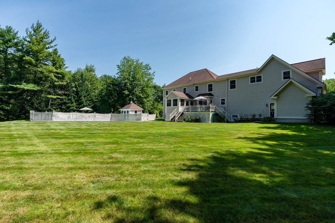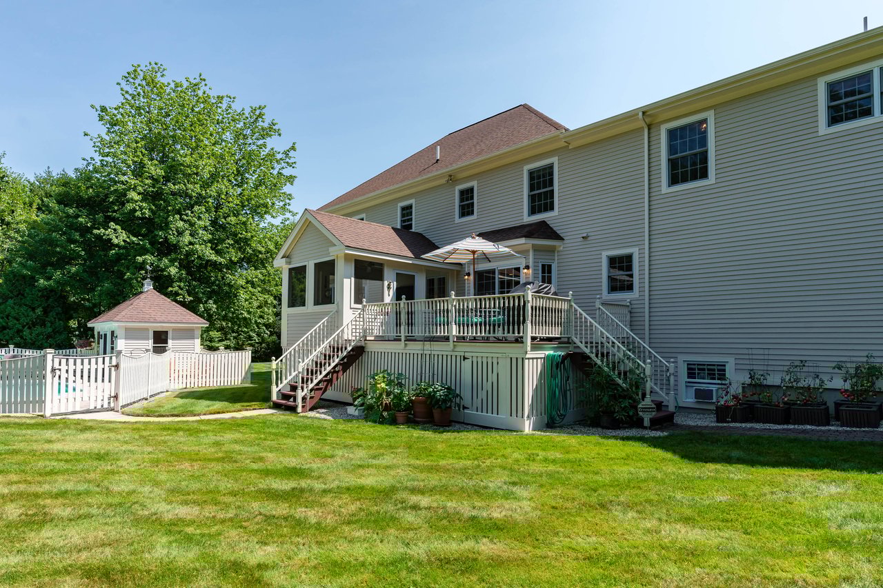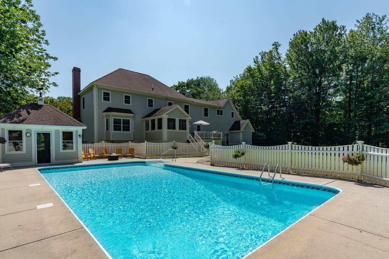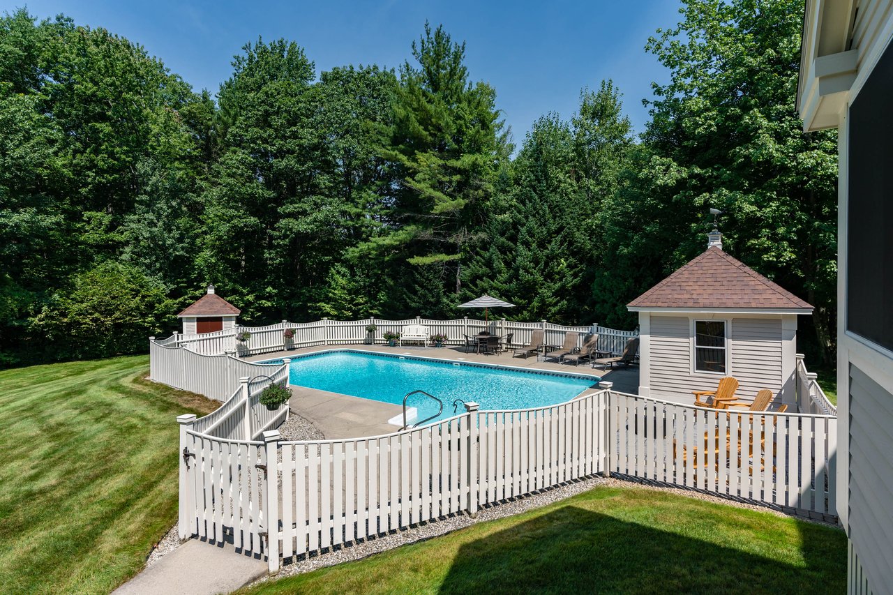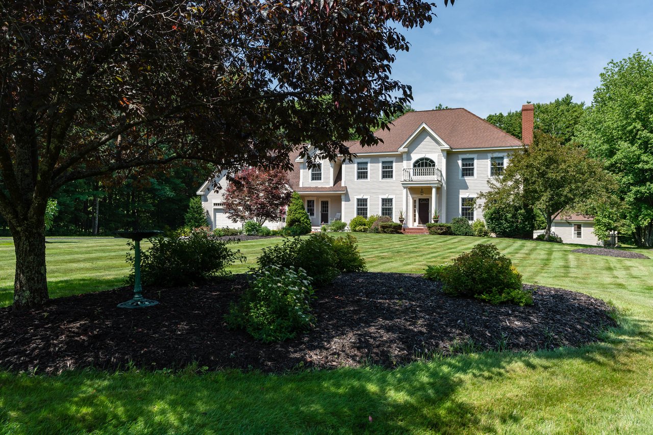 Privately set on nearly 1.5 acres in the desirable Stapleford neighborhood! This home features a timeless floor plan with beautiful woodwork throughout. Hardwood floors sweep through the main living areas of this home. The eat-in kitchen features a spacious island, granite counters, cherry cabinets, a dry bar and sliders to the back yard. Elegant crown molding and wainscoting add decorative detailing in the formal dining and living room. The comfortable family room offers a wall of built-ins. The second level boasts two master suite options and two additional bedrooms. Surrounded by mature trees, the back yard creates a private oasis with an in-ground pool, pool house, deck and screened-in porch. Conveniently located close to many amenities, Falmouth schools, and just minutes from down town Portland, I-295 and I-95!