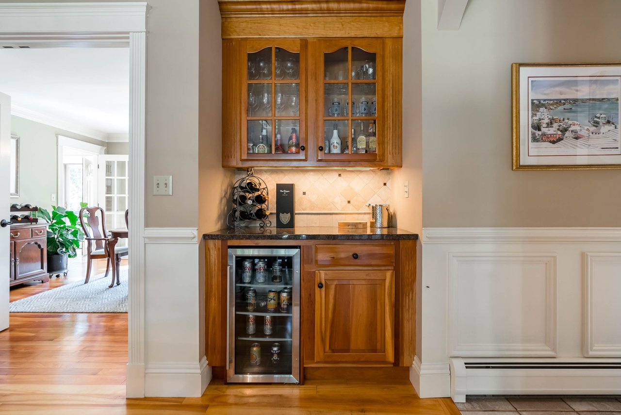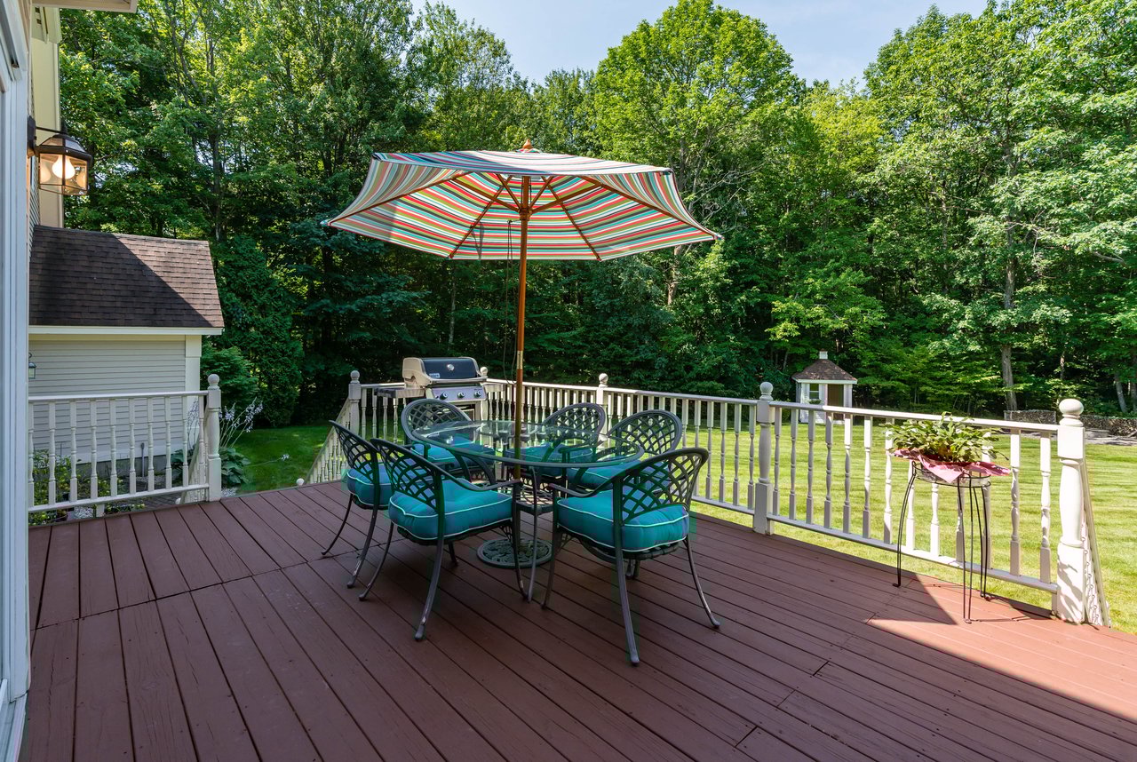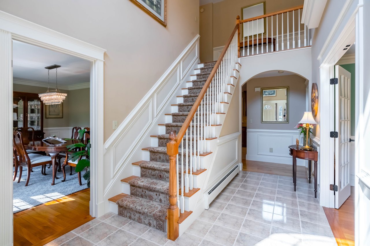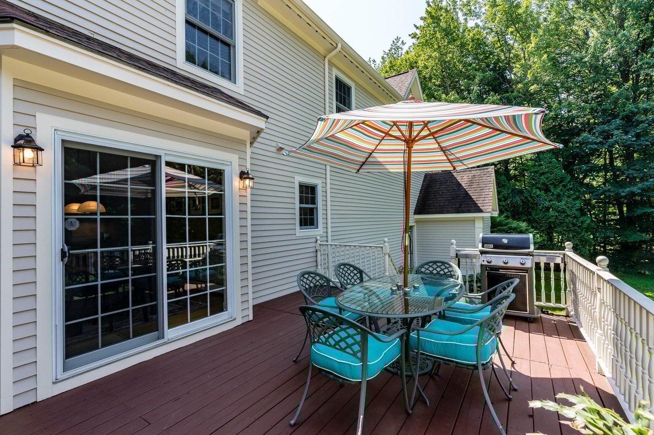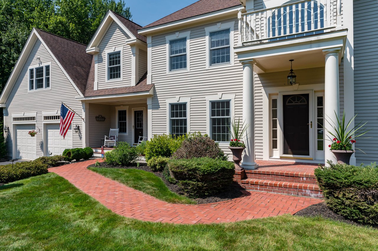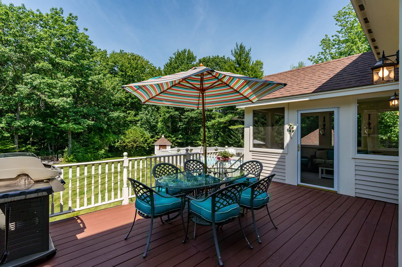 Privately set on nearly 1.5 acres in the desirable Stapleford neighborhood! This home features a timeless floor plan with beautiful woodwork throughout. Hardwood floors sweep through the main living areas of this home. The eat-in kitchen features a spacious island, granite counters, cherry cabinets, a dry bar and sliders to the back yard. Elegant crown molding and wainscoting add decorative detailing in the formal dining and living room. The comfortable family room offers a wall of built-ins. The second level boasts two master suite options and two additional bedrooms. Surrounded by mature trees, the back yard creates a private oasis with an in-ground pool, pool house, deck and screened-in porch. Conveniently located close to many amenities, Falmouth schools, and just minutes from down town Portland, I-295 and I-95!