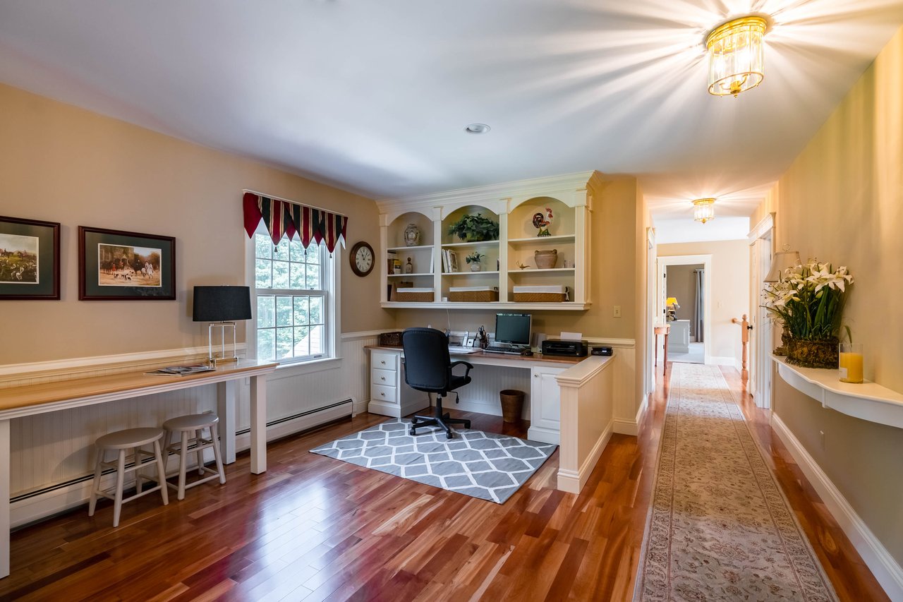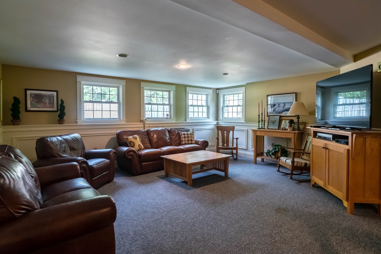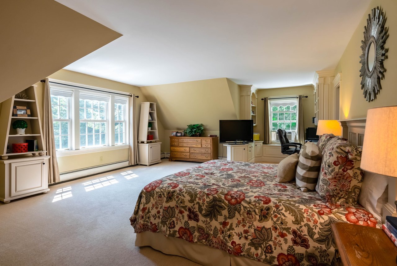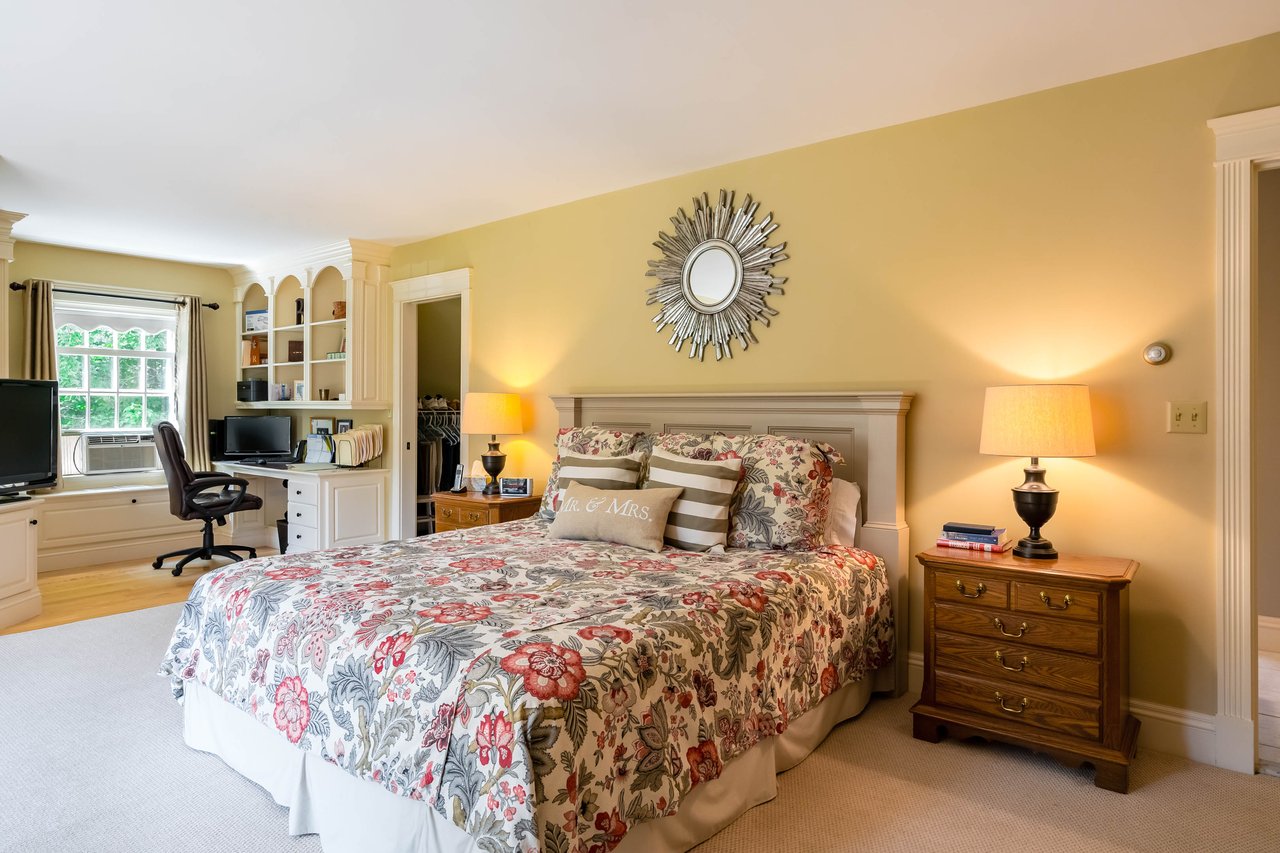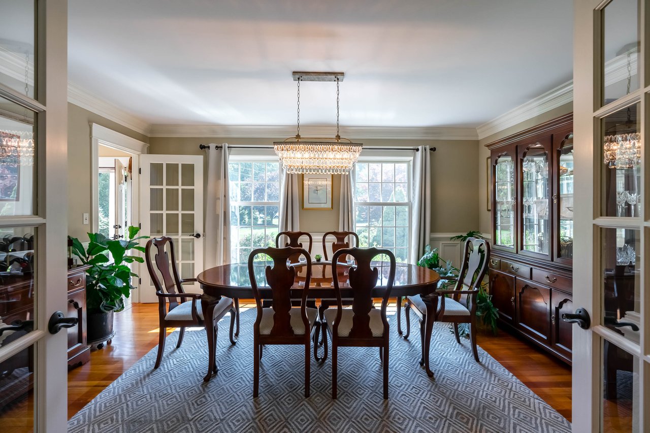 Privately set on nearly 1.5 acres in the desirable Stapleford neighborhood! This home features a timeless floor plan with beautiful woodwork throughout. Hardwood floors sweep through the main living areas of this home. The eat-in kitchen features a spacious island, granite counters, cherry cabinets, a dry bar and sliders to the back yard. Elegant crown molding and wainscoting add decorative detailing in the formal dining and living room. The comfortable family room offers a wall of built-ins. The second level boasts two master suite options and two additional bedrooms. Surrounded by mature trees, the back yard creates a private oasis with an in-ground pool, pool house, deck and screened-in porch. Conveniently located close to many amenities, Falmouth schools, and just minutes from down town Portland, I-295 and I-95!