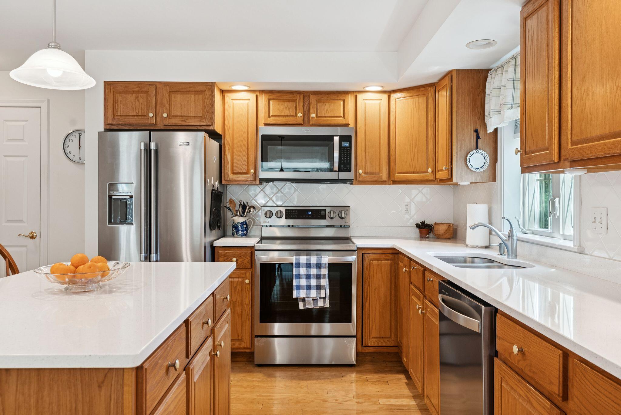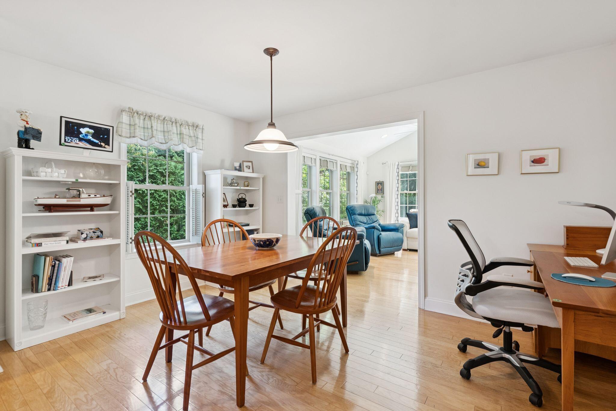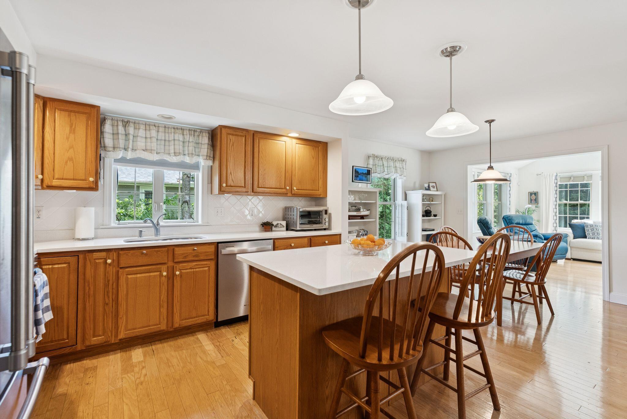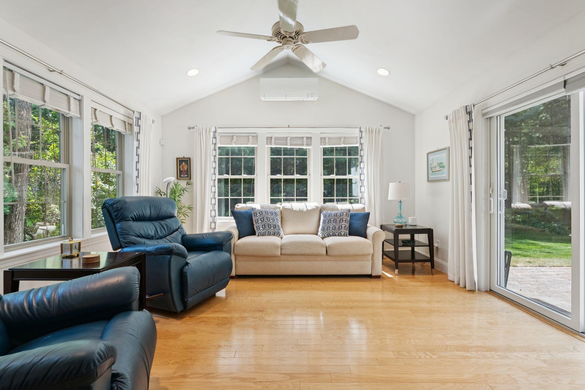 This thoughtfully designed ranch offers comfortable single level living with 2 bedrooms, 2 bathrooms, and a layout ideal for ease and convenience. The home features a spacious eat-in kitchen, dedicated dining area, and an inviting living room with wood burning fireplace. A separate office provides flexible space for hobbies, reading, or remote work. The brightly lit sunroom, complete with a heat pump, opens to a beautifully landscaped yard and back patio, offering a peaceful space to unwind during every season. The primary suite includes a full bath with double vanity and its own heat pump for personalized comfort. An attached two car garage with additional storage above adds extra convenience during Maine's winter months. The modest HOA fee covers landscaping, helping to maintain the pristine appearance of the neighborhood without the hassle. Enjoy leisurely outings in this quiet, well maintained community, or explore nearby beaches, local dining, and shopping just a short drive away. Whether you're looking to downsize, simplify, or settle into a vibrant coastal lifestyle, this home offers a wonderful balance of comfort and community.