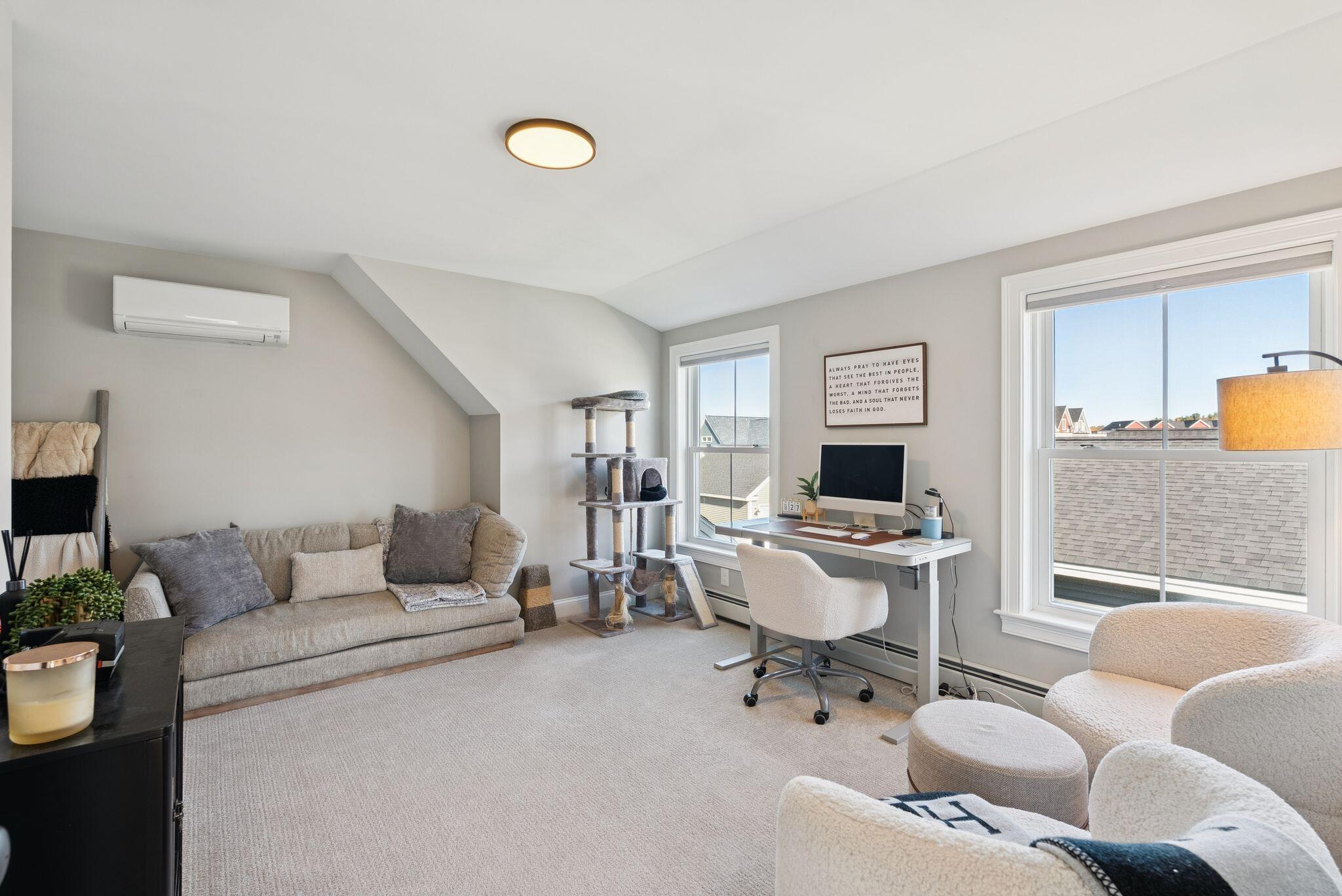 Welcome to 9 Pacer Way -- a stylish 3-bedroom single-family residence conveniently located in The Downs. Clean contemporary design and abundant natural light create a sense of modern comfort throughout the open floor plan. Set on a private lot, the home offers outdoor spaces for every mood, with a charming front porch perfect for quiet mornings and a larger-than-average patio ideal for relaxed gatherings. The first-floor primary suite provides sought-after convenience and flexibility, perfectly suited for single-level living or guest accommodations. Additional highlights include a dedicated office area, an oversized two-car garage, and efficient wall-hung heat pumps for year-round comfort. A generator hook-up adds extra peace of mind. Surrounded by nature trails, a local brewery, and a welcoming neighborhood spirit, this home blends style, comfort, and connection with effortless grace.