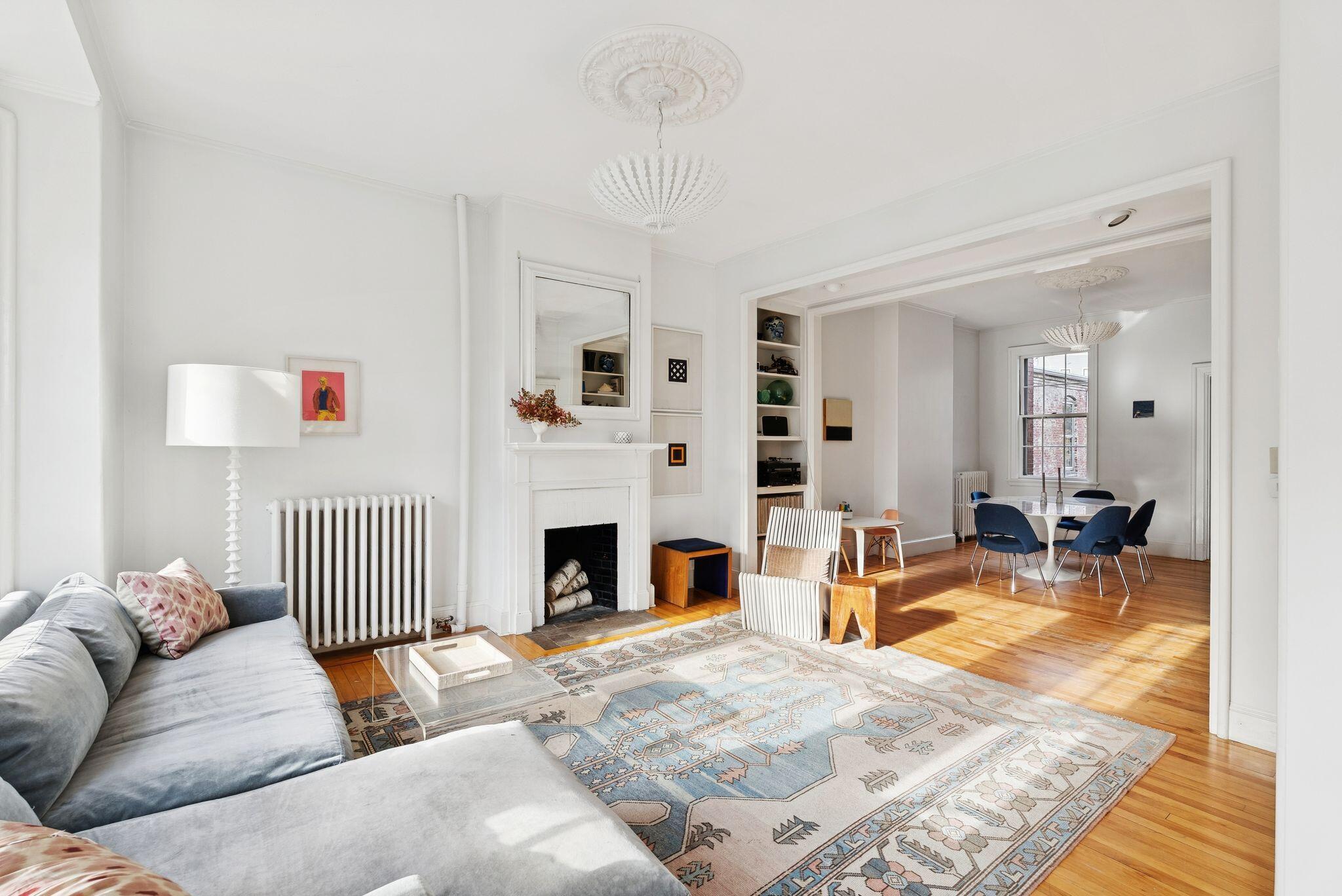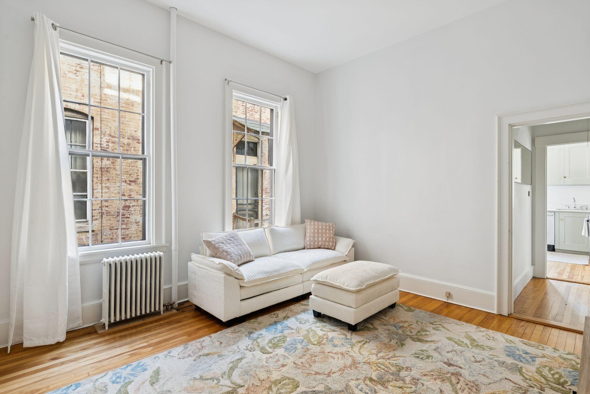 Enter into timeless charm with this four-story 1865 brick townhouse located in Portland's historic West End. Period details abound, from the Greek Revival front stoop and sweeping staircase, to 11-foot ceilings, original hardwood floors, refined architectural moulding, and sunlit bay windows-all artfully combining 19th-century craftsmanship with the comforts of modern living. The home lives like a single-family residence, with an airy owner's unit spanning the top two floors, while also offering rental income via a charming one-bedroom apartment with its own private entrance on the parlor level. In the owner's unit, the second floor features an open-concept living and dining area anchored by floor-to-ceiling built-ins, as well as a full bath with a cast iron clawfoot tub, laundry area, and a corner bedroom perfect for a guest room, office, or media lounge. The classic kitchen is appointed with a marble-topped island, unlacquered brass hardware, traditional bridge faucet, and Thermador and Bosch appliances. On the top floor, enjoy a sun-drenched south-facing primary bedroom, an additional bedroom, full bath, and access to a walk-up attic--ideal for extra storage or potential expansion. Off the gracious entry foyer, a bonus room--currently a home office for the owner's unit--offers flexible use and could serve either unit in the future. Modern upgrades include a high-efficiency Viessmann heating system and new Marvin windows in the rear ell, ensuring year-round comfort. Outside, a herringbone-patterned brick patio provides a private space to relax or entertain, and the property includes two dedicated off-street parking spaces plus shared guest parking. All of this, tucked into the heart of Portland's West End, surrounded by neighborhood favorites and only a short stroll to the vibrant Old Port waterfront.