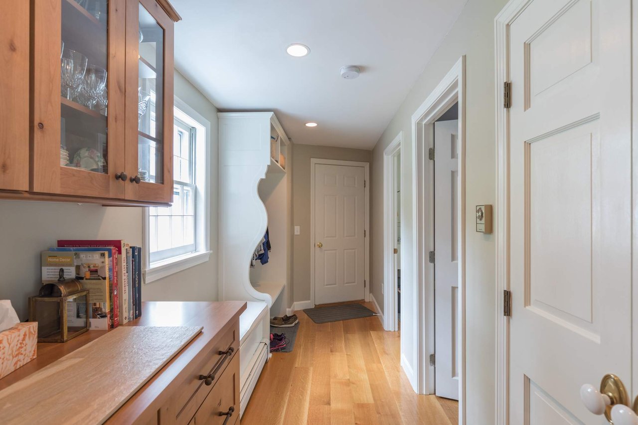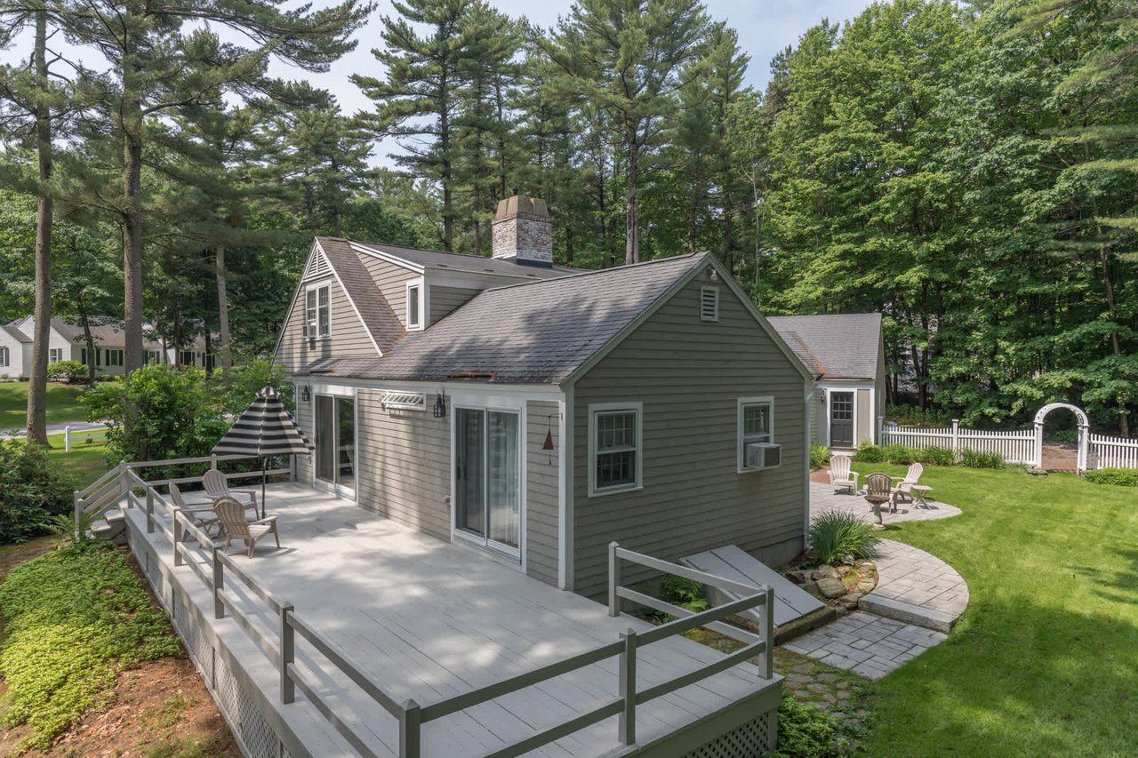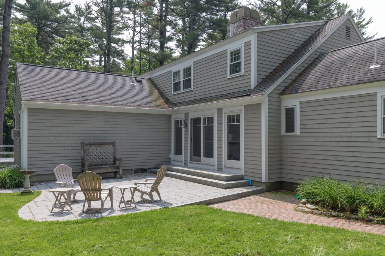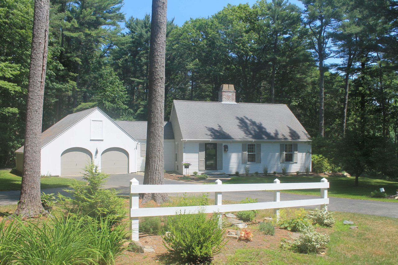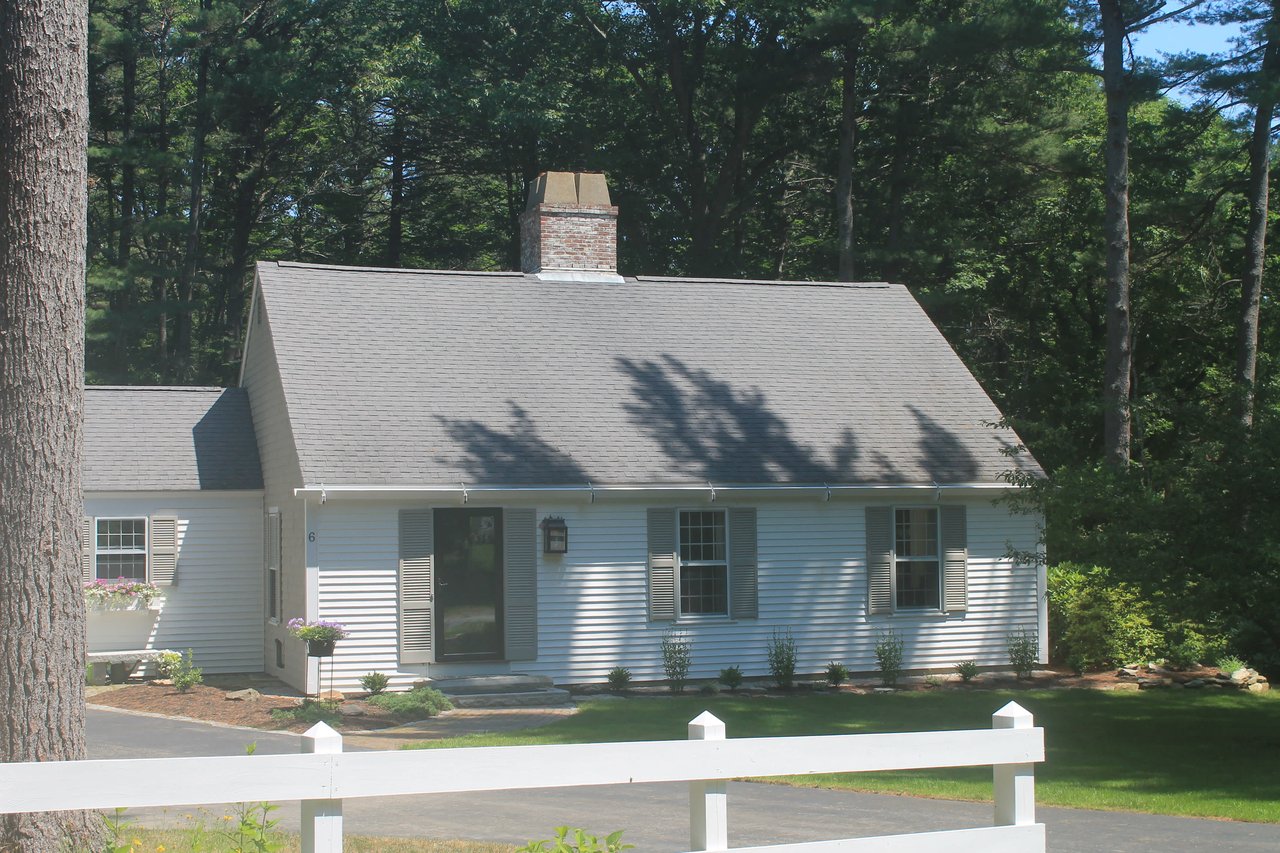 Tucked beneath the tall pines on Cumberland Foreside this timeless Cape Cod style home offers deeded access to Casco Bay and open concept living with hardwood floors throughout. Inside you will find a beautifully renovated eat-in kitchen by M.R. Brewer featuring a spacious island, charming exposed brick and French doors to the stone patio, a living room with built-ins and gas fireplace. This home offers easy one level living with a lovely master suite with custom built-ins and a full bath.